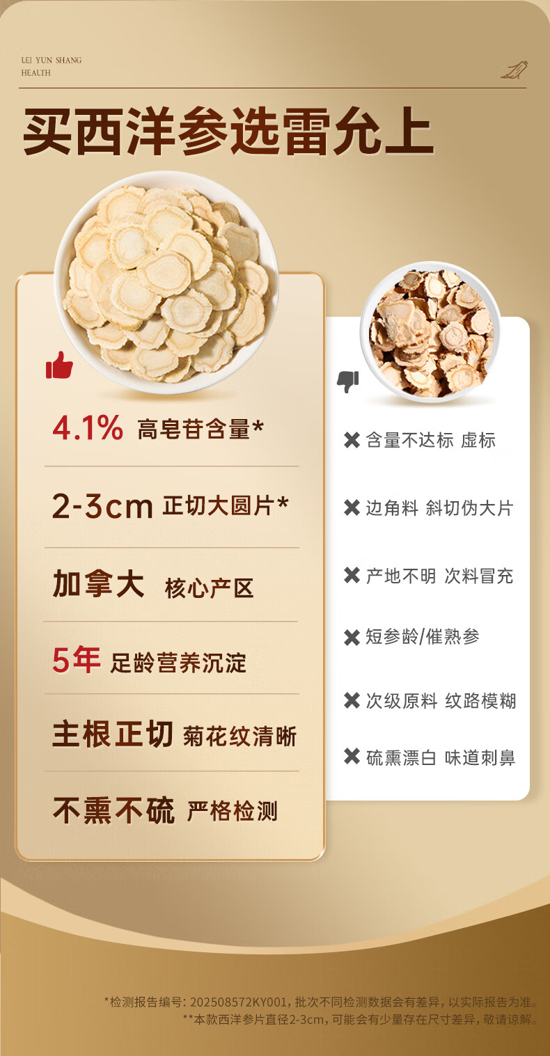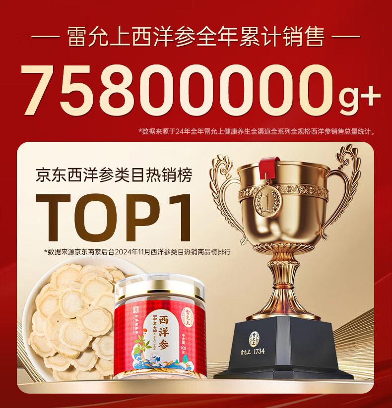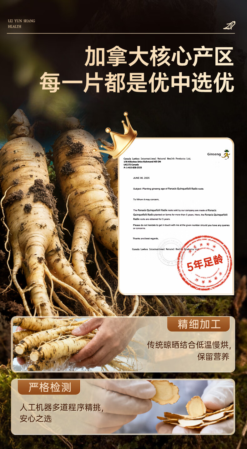 雷允上【官方】加拿大进口西洋参片特级花旗参送长辈父母礼盒 【店铺爆款】 100g*1罐 (2-3cm超大片)