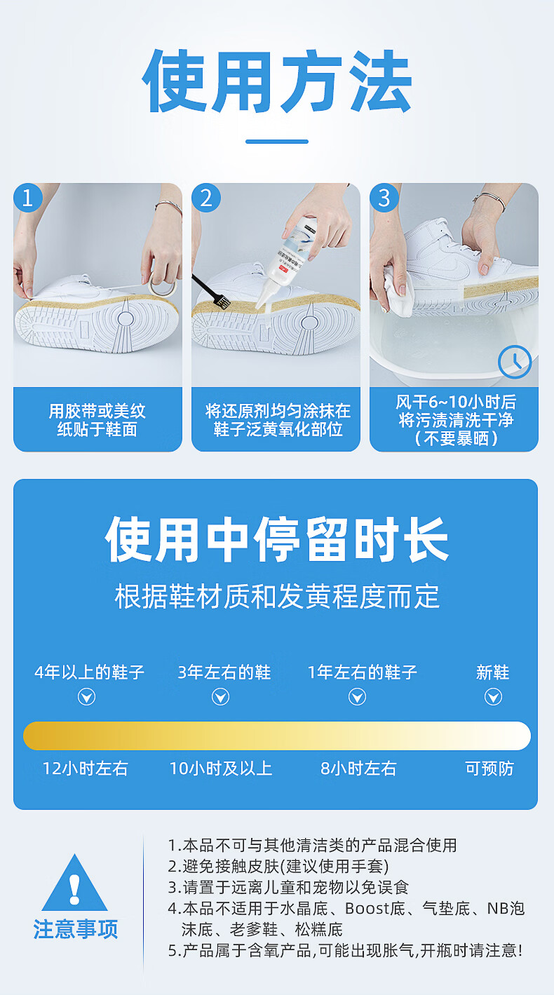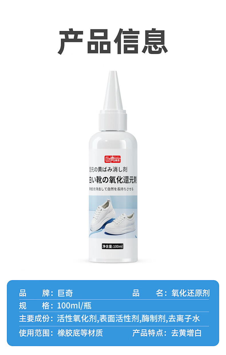 巨奇小白鞋清洁剂去黄去污增白氧化还原剂100ml洗球鞋网面刷鞋边神器