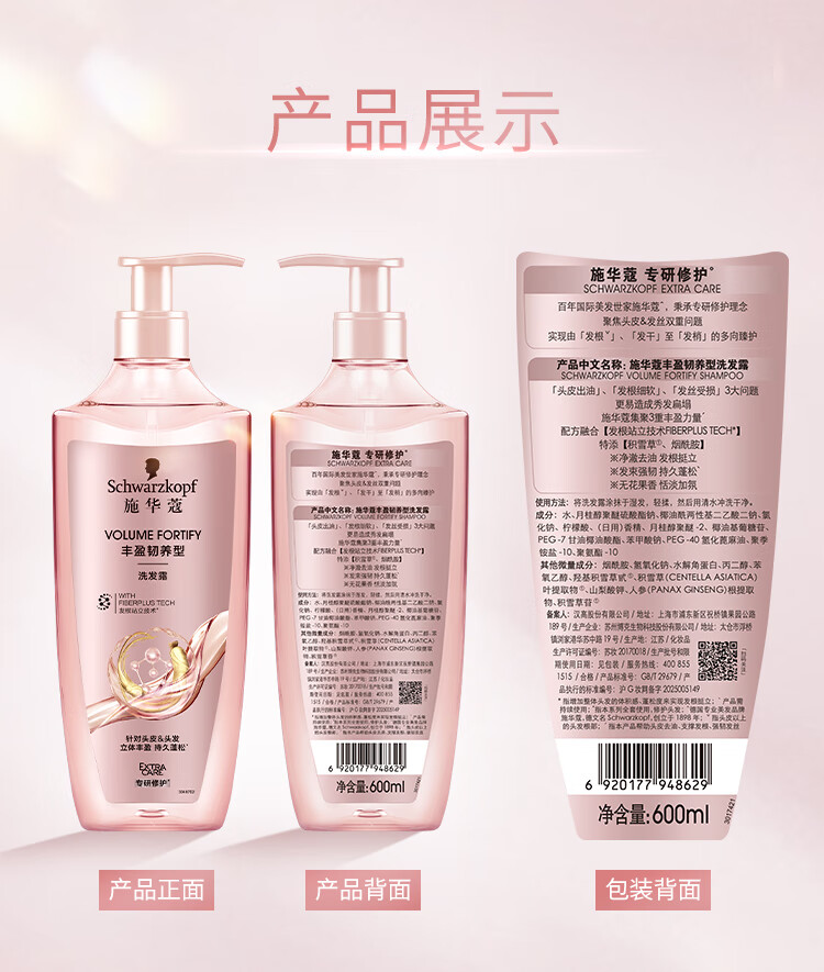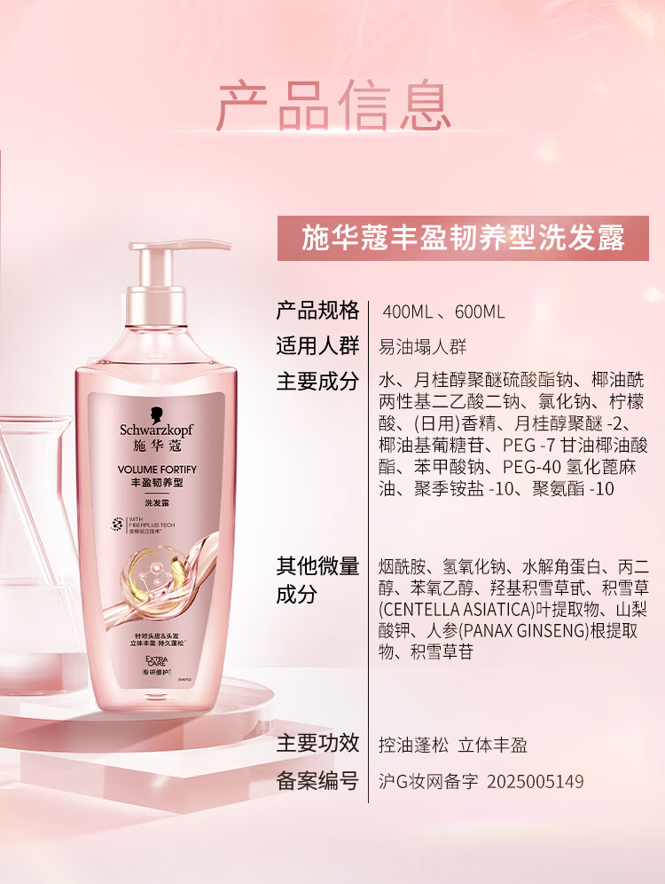 施华蔻(Schwarzkopf)丰盈韧养洗发露400ml 去油洗发水 发根蓬松无硅油洗头膏 新老包装