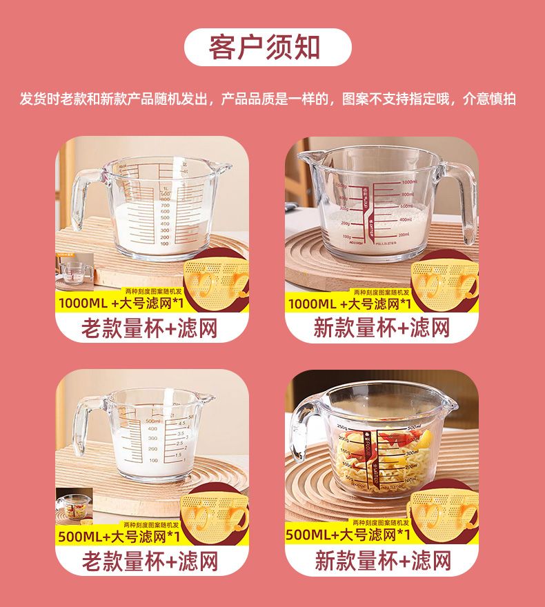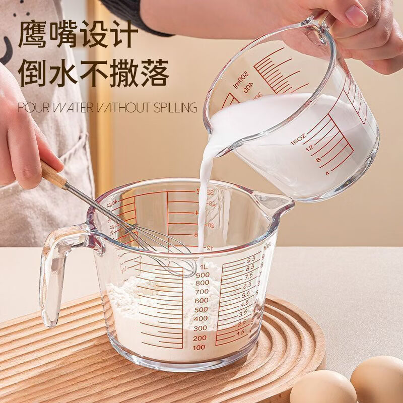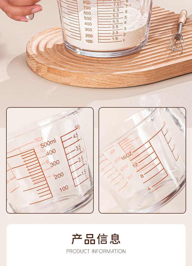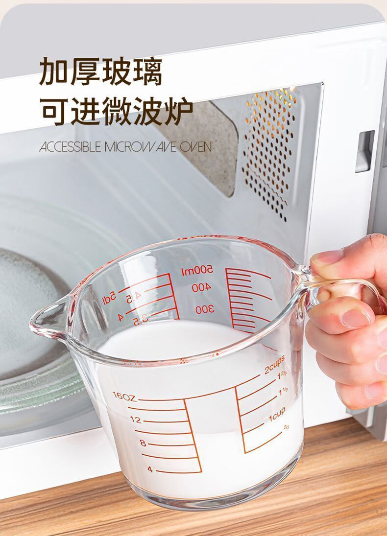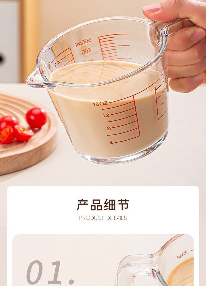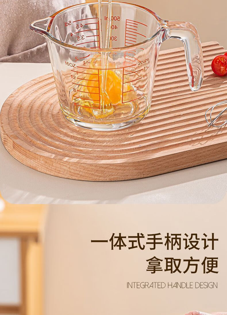 简漾玻璃量杯带刻度耐高温家用牛奶刻度杯食品级烘焙打蛋杯子计量水杯 500ml量杯 微波炉可用