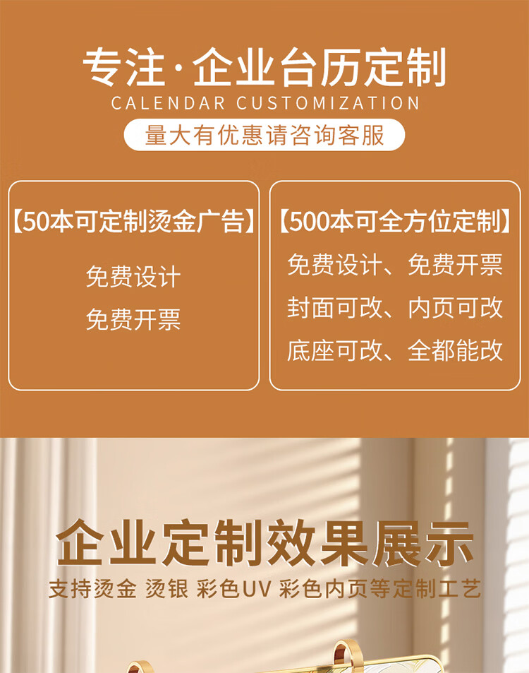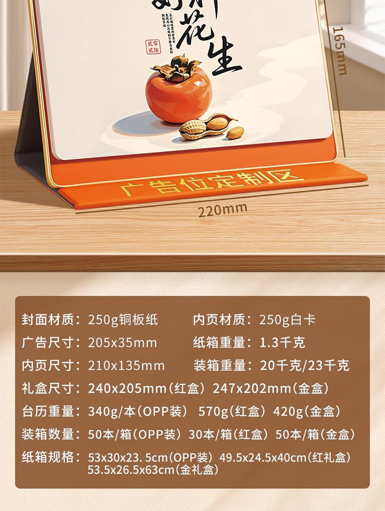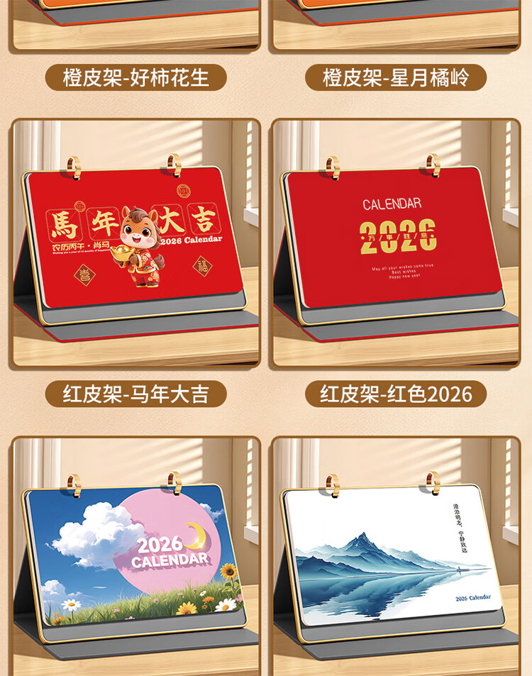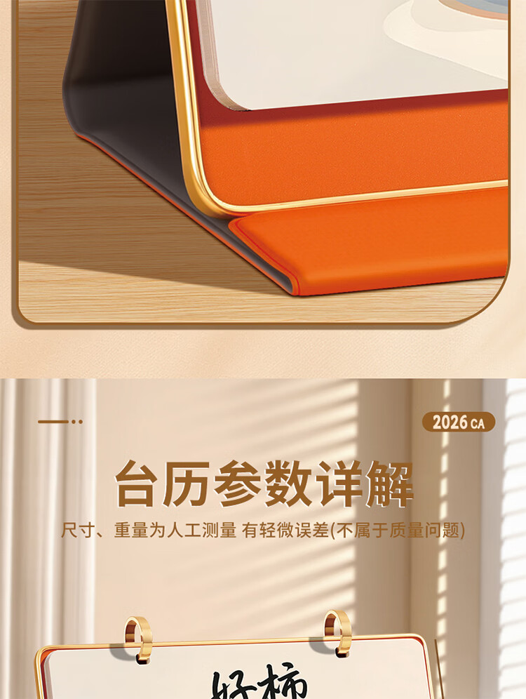 筏芯日历2026年新款办公室高档马年台历金边三角架翻页工作记事本月历定制日历公司企业 星月橘岭(橙底)礼盒装 送笔JZ089