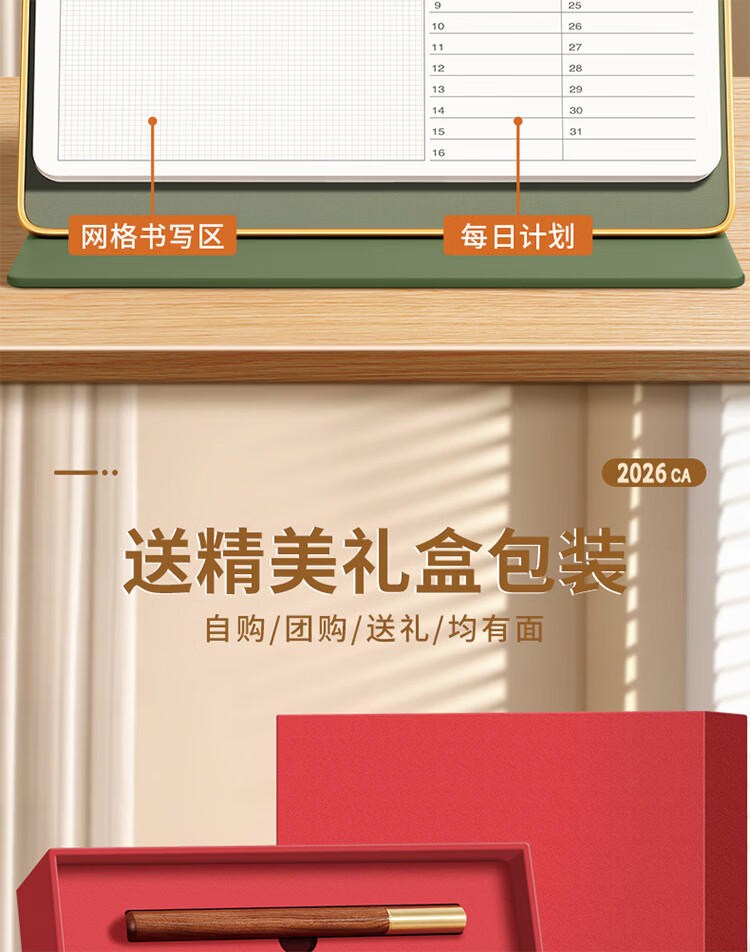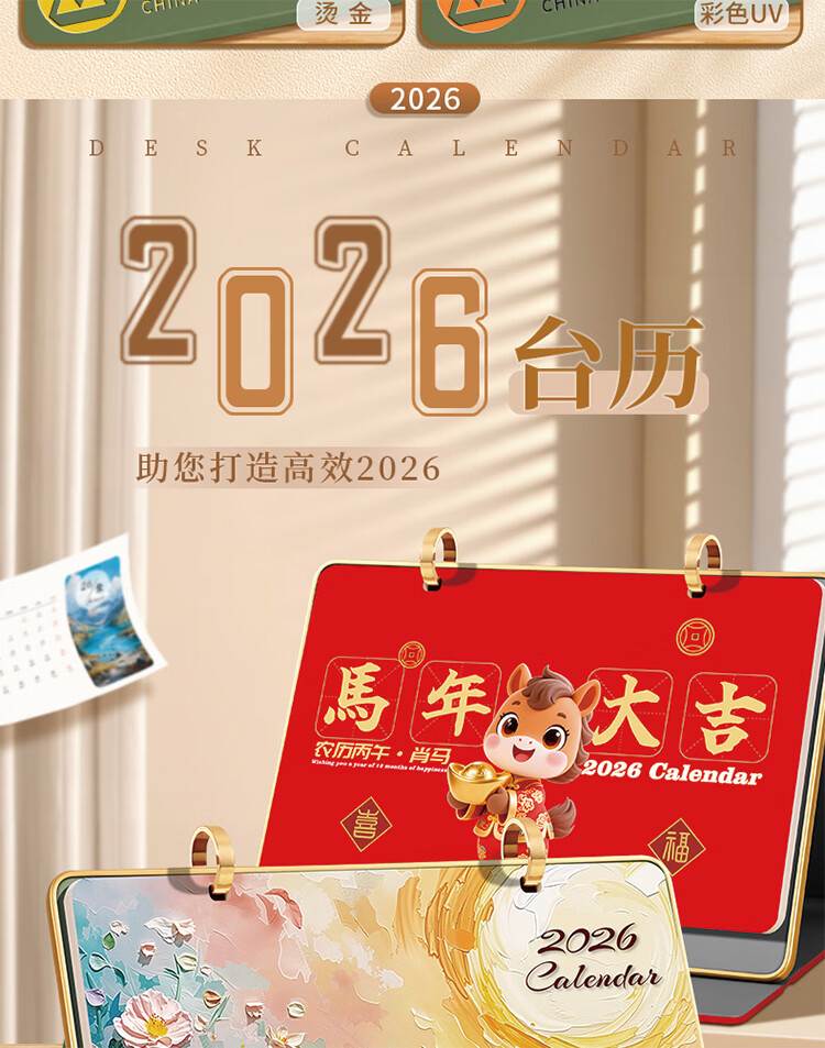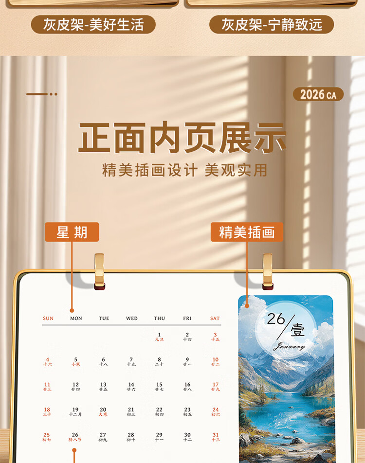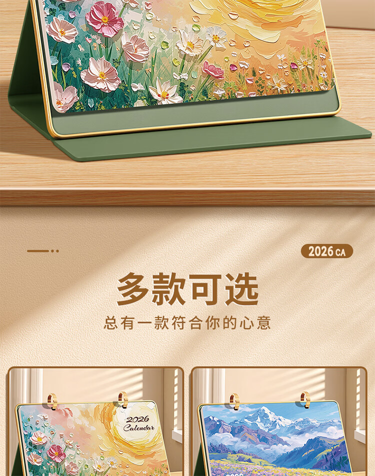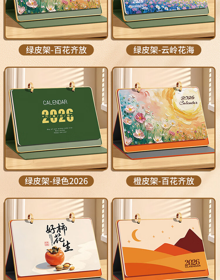 筏芯日历2026年新款办公室高档马年台历金边三角架翻页工作记事本月历定制日历公司企业 星月橘岭(橙底)礼盒装 送笔JZ089