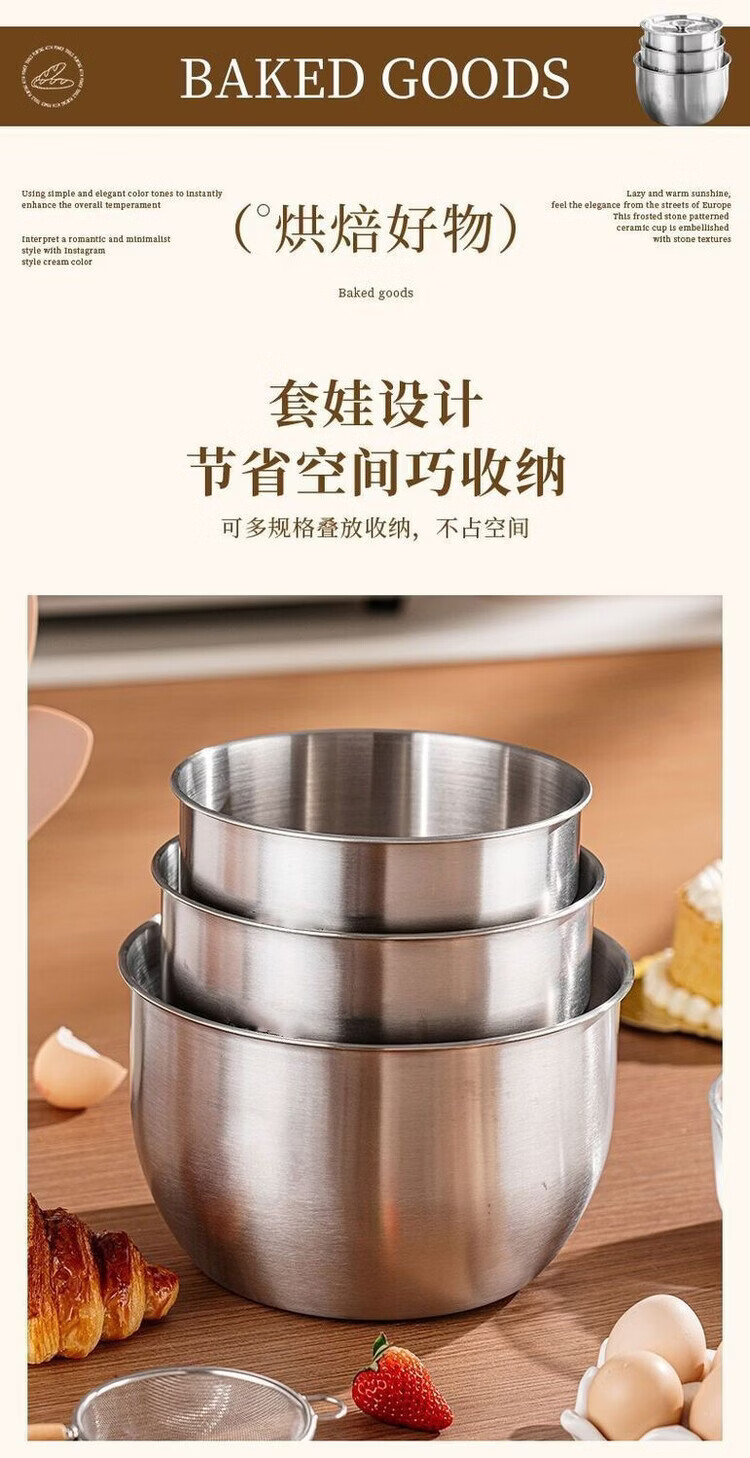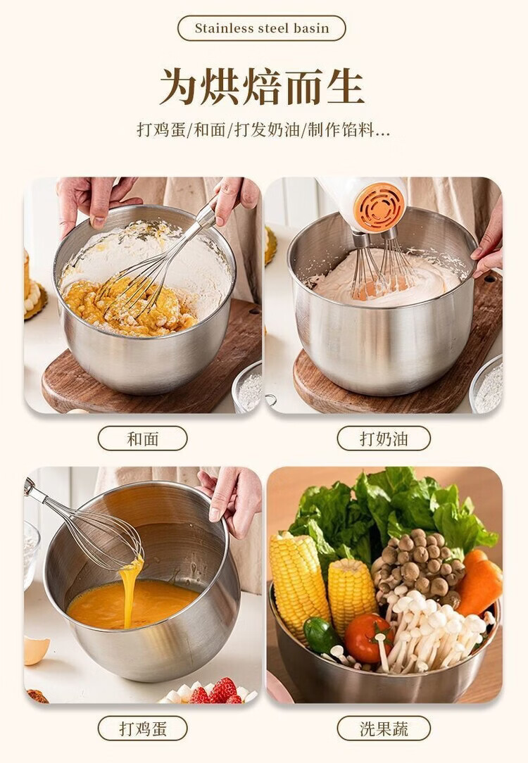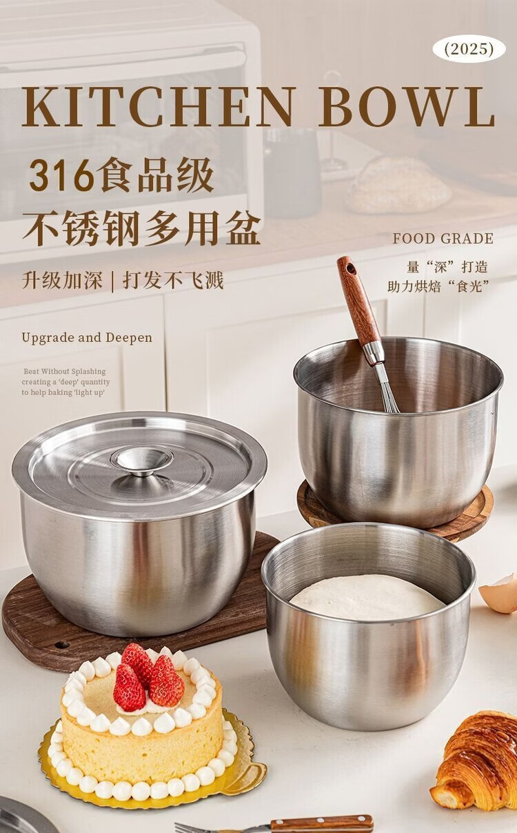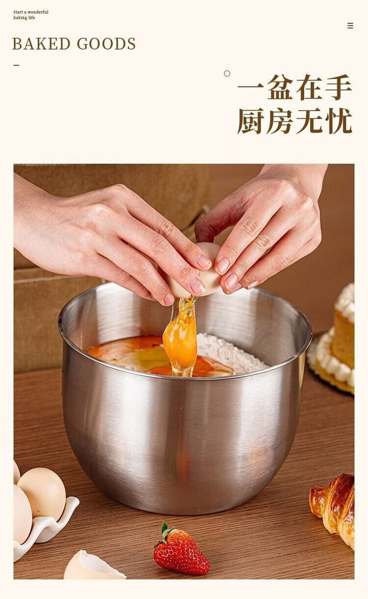 咏夏316不锈钢食品级蛋糕磨具空气炸锅烤箱打蛋盆专用耐高温烘焙专用. 【小号】无盖 .