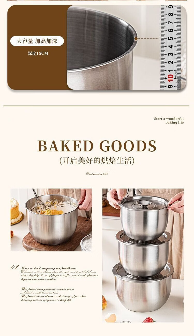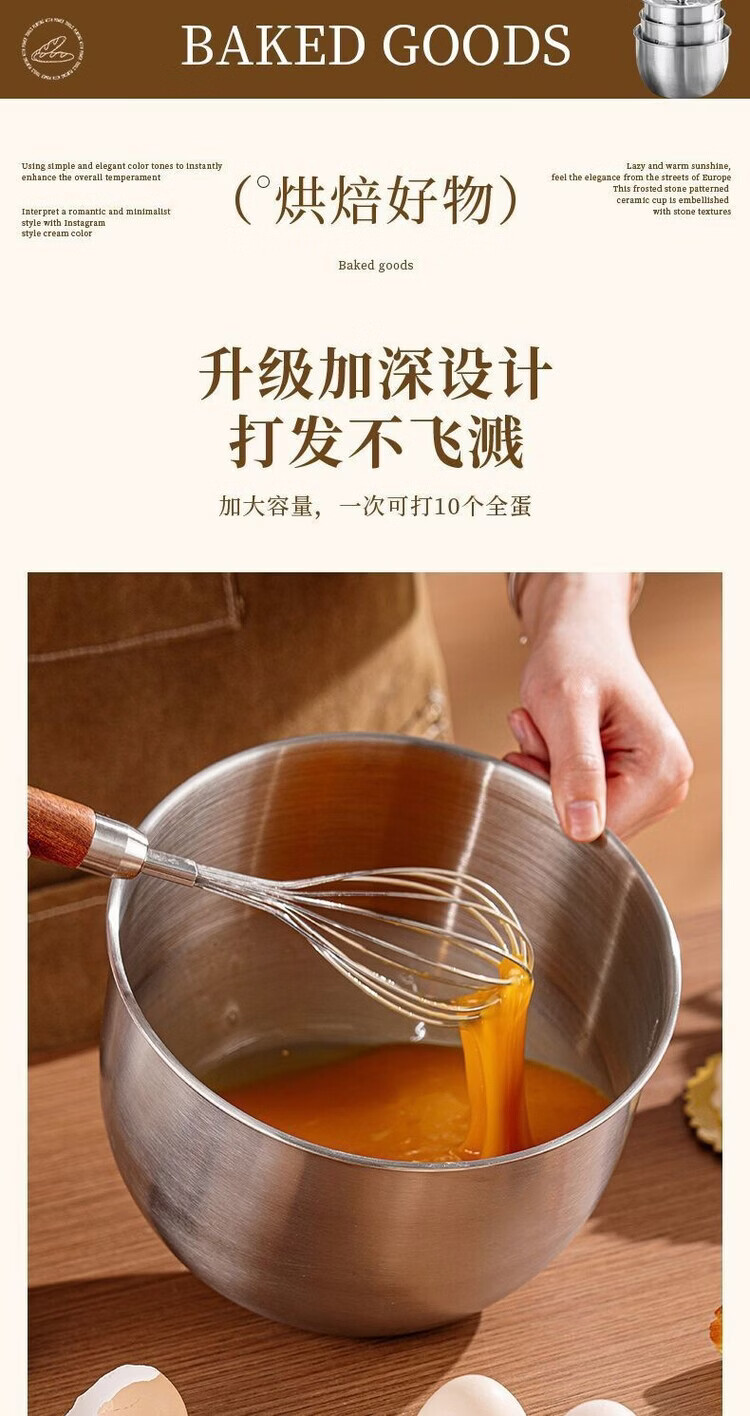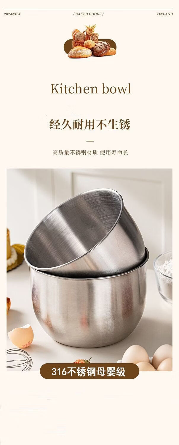 咏夏316不锈钢食品级蛋糕磨具空气炸锅烤箱打蛋盆专用耐高温烘焙专用. 【小号】无盖 .