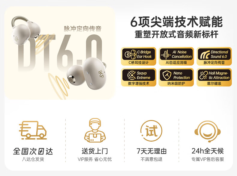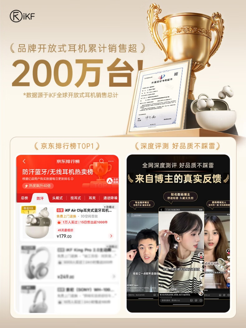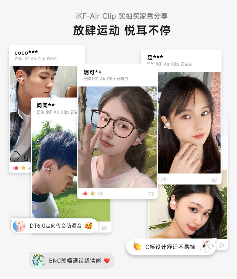iKF Air Clip【国家补贴】耳机耳夹式真无线蓝牙耳机开放式气传导不入耳运动耳机跑步通话降噪 云岩白