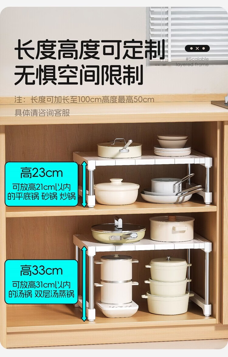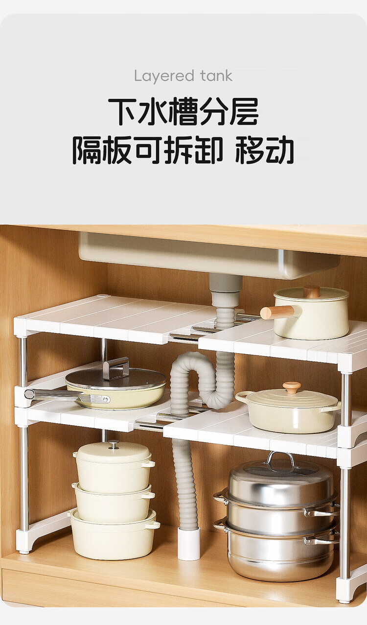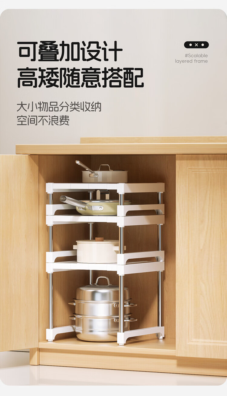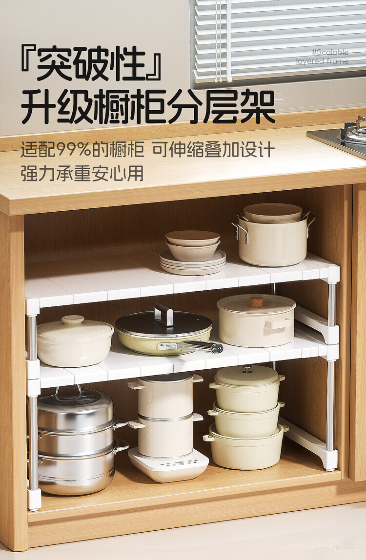 简漾厨房橱柜内分层置物架多功能可伸缩叠加锅具整理隔板水槽下收纳架 32宽(深)长28.5-36高18cm 【请测量后再下单】