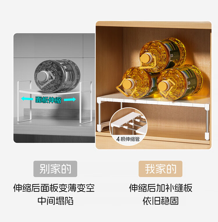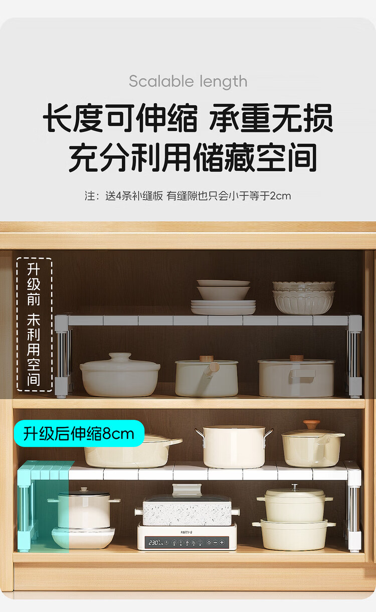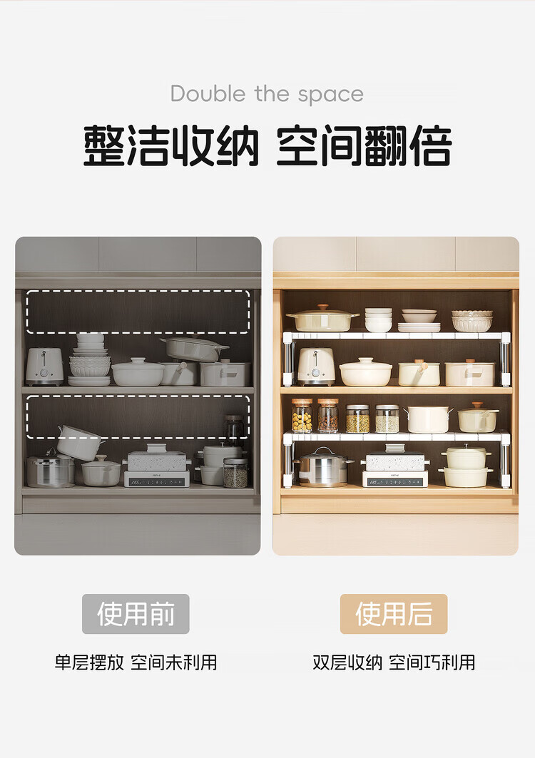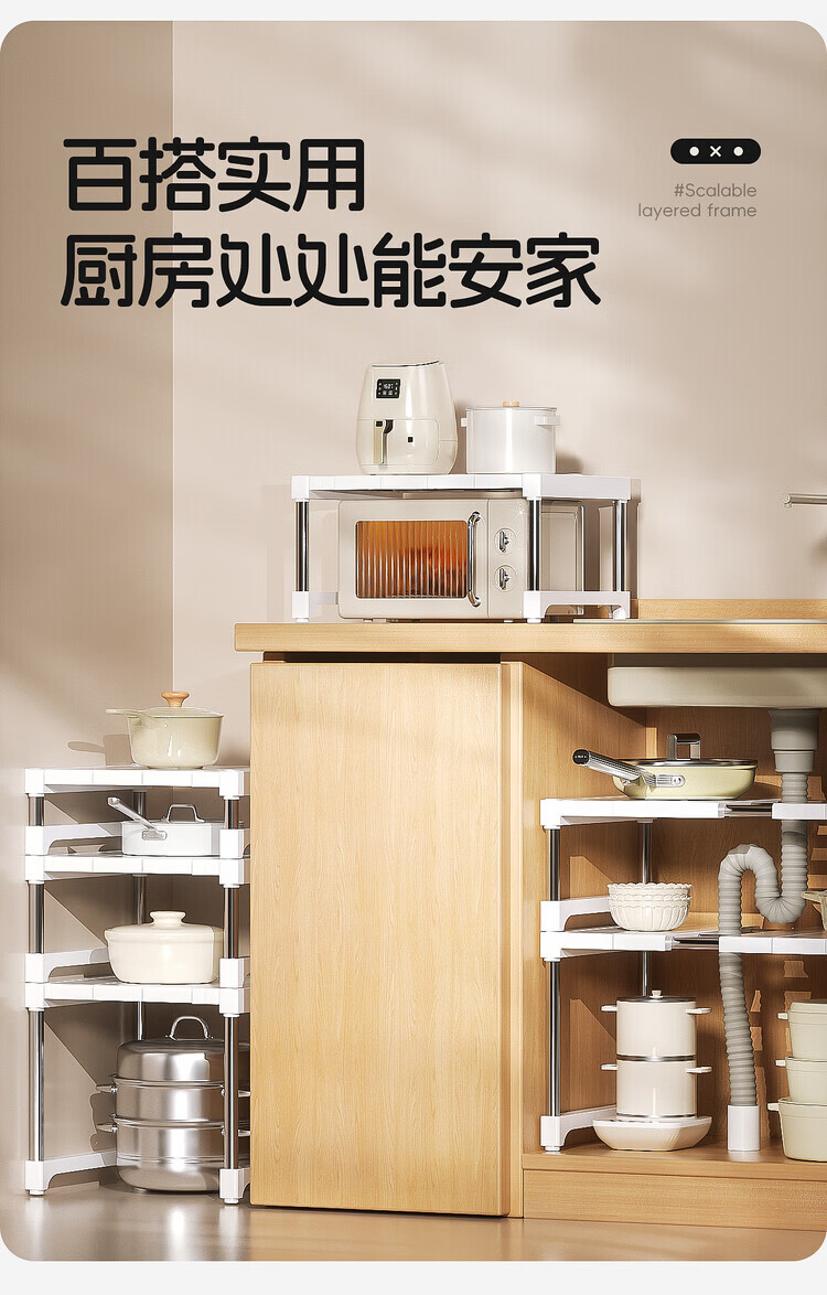 简漾厨房橱柜内分层置物架多功能可伸缩叠加锅具整理隔板水槽下收纳架 32宽(深)长28.5-36高18cm 【请测量后再下单】
