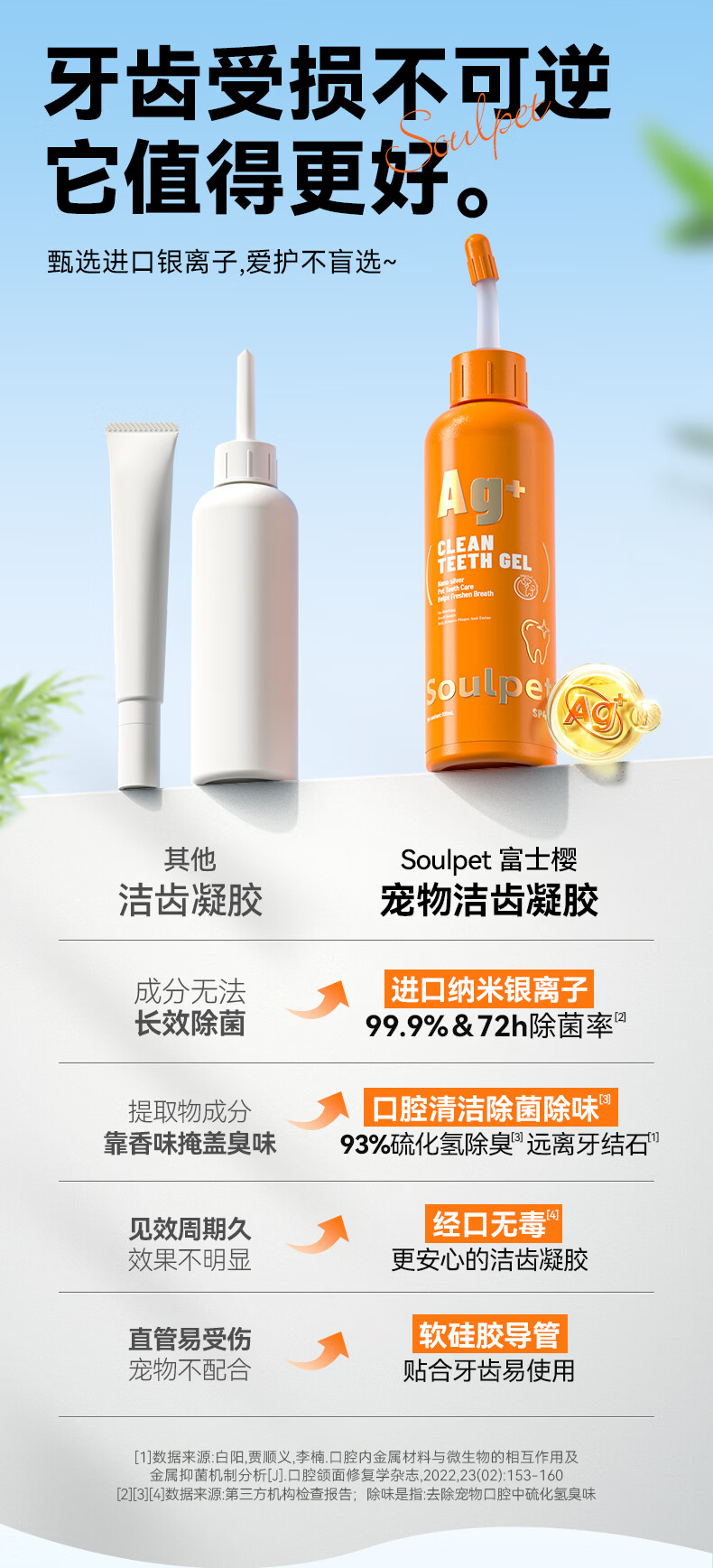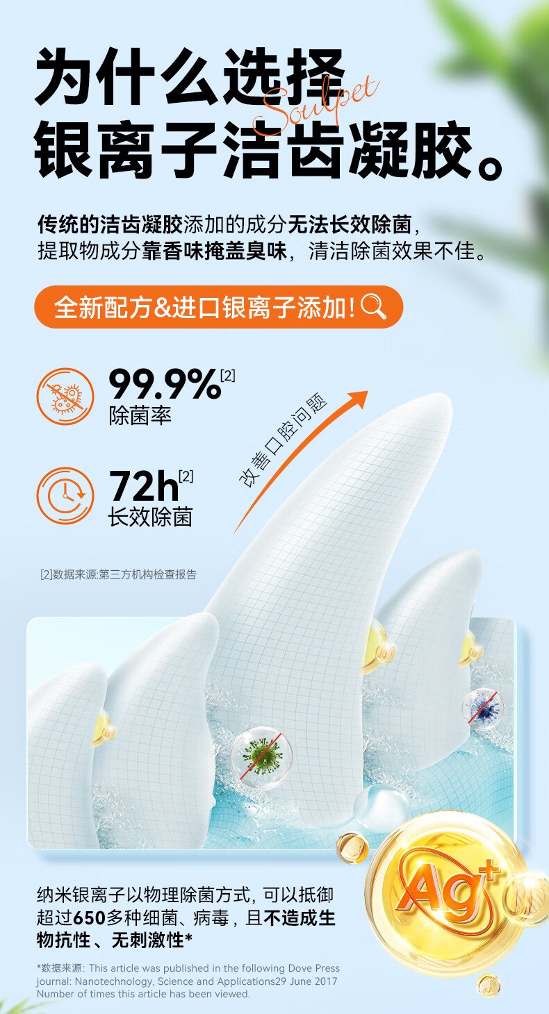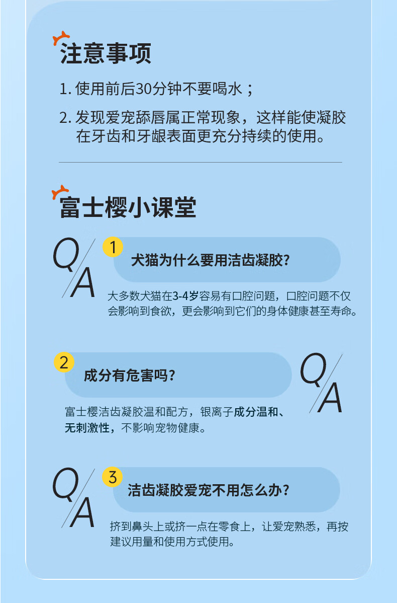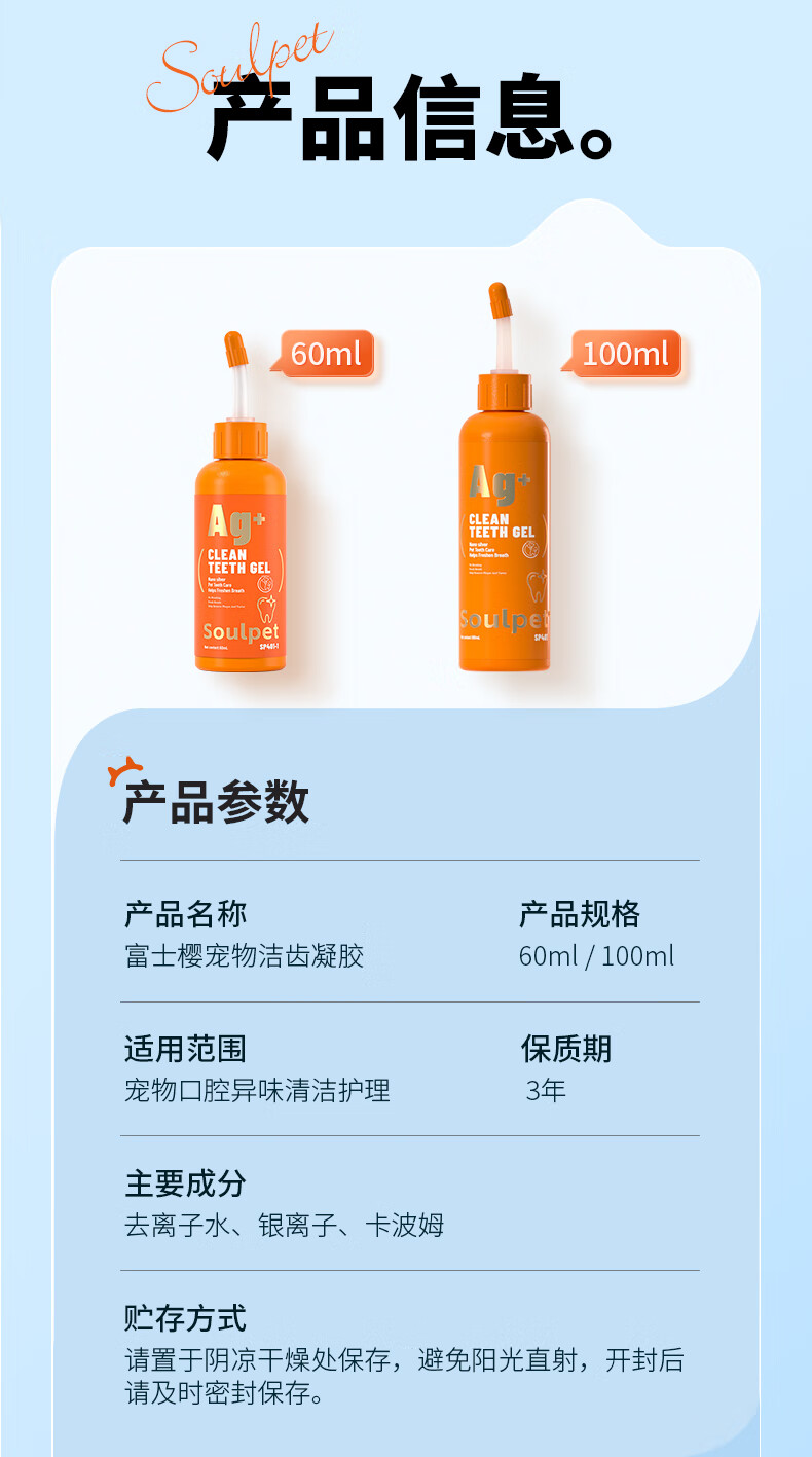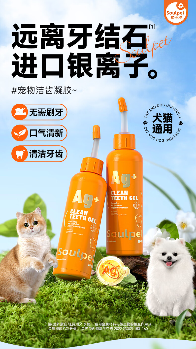 富士樱宠物狗狗猫咪洁齿凝胶凝露牙膏祛除口臭无需牙刷远离牙菌斑牙结石 银离子洁齿凝胶100ml【犬猫通用