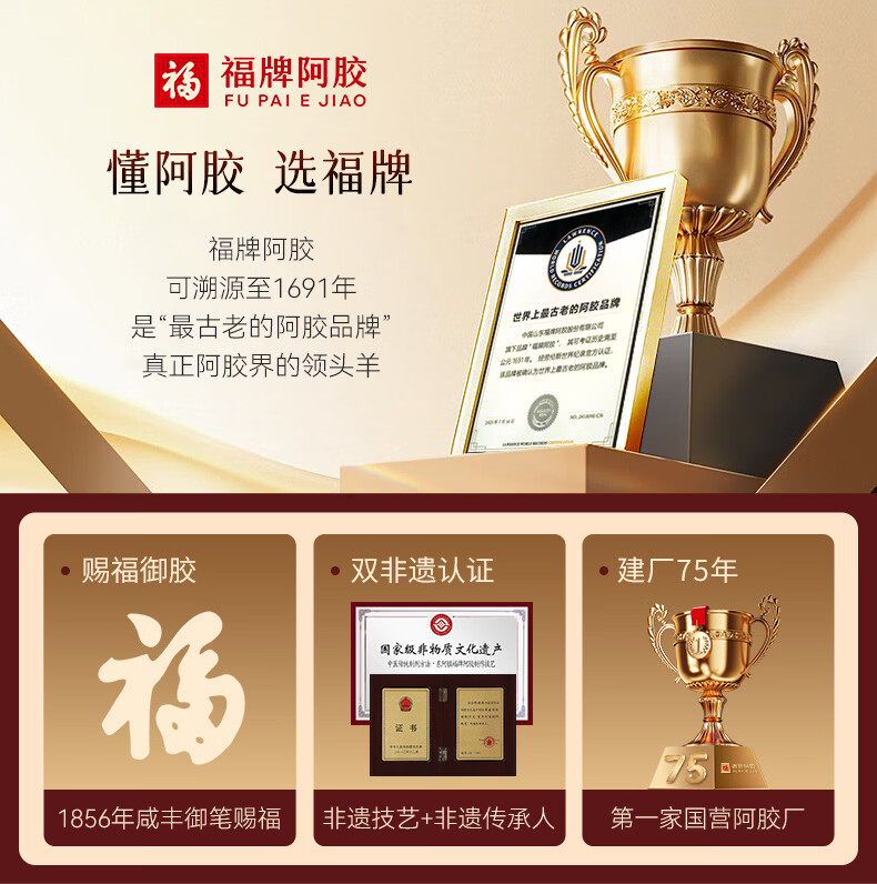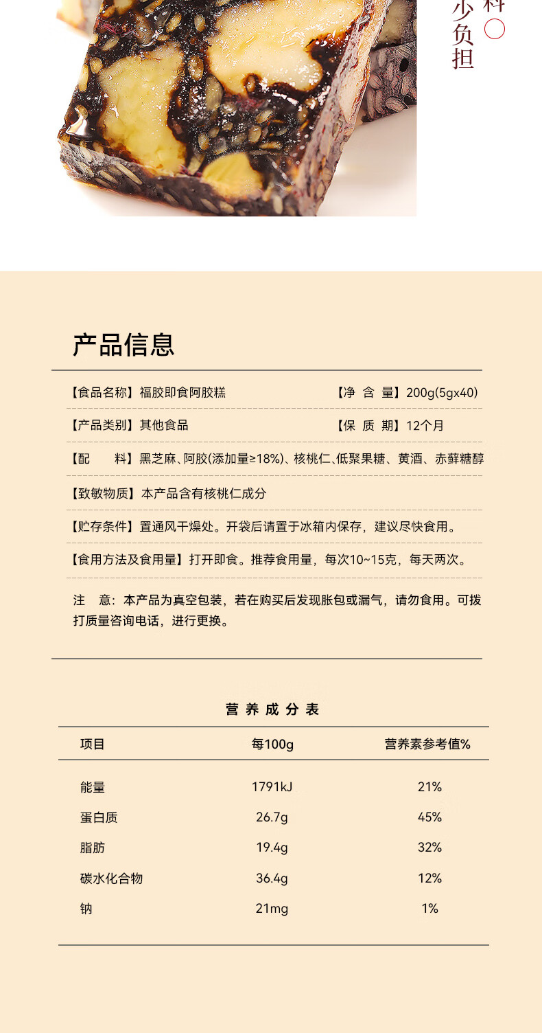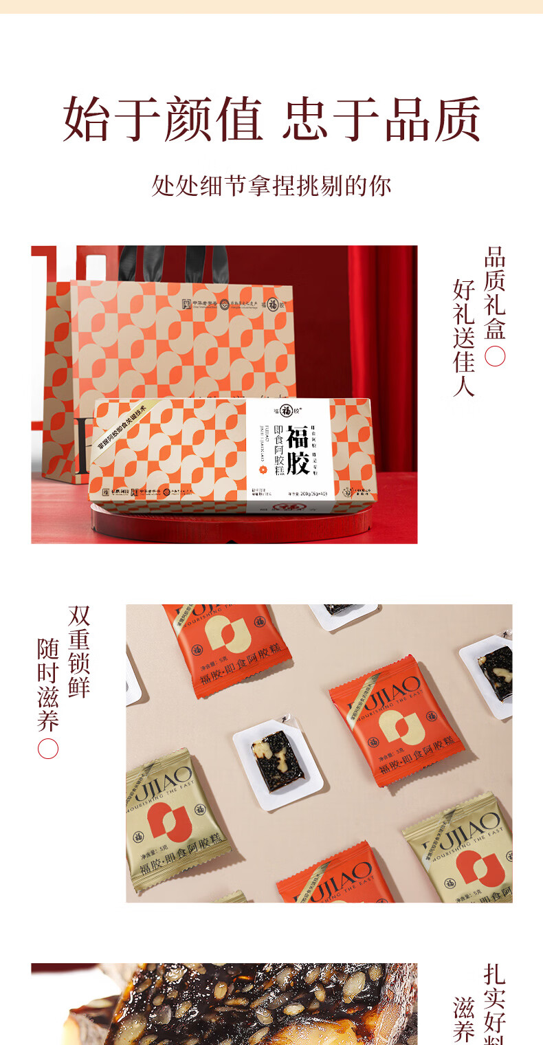 福牌阿胶即食阿胶糕礼盒装200g 东阿镇礼物送女友母亲节礼物送礼送长辈 200g*2盒 (减糖款阿胶18%送礼袋)
