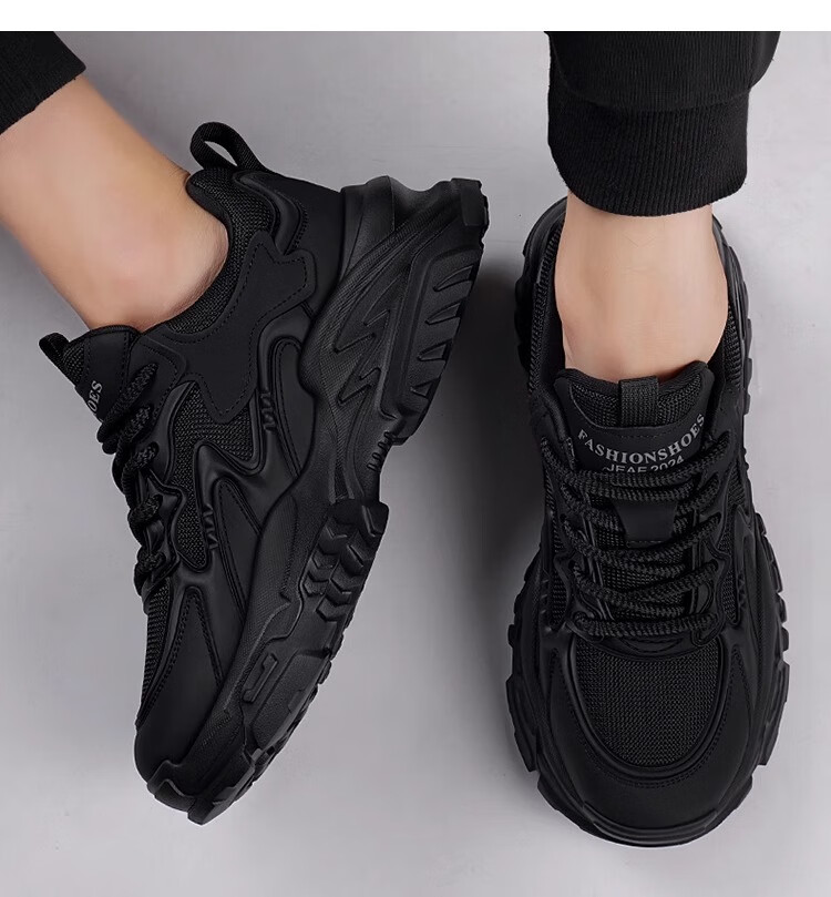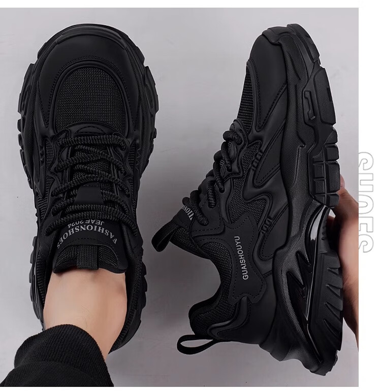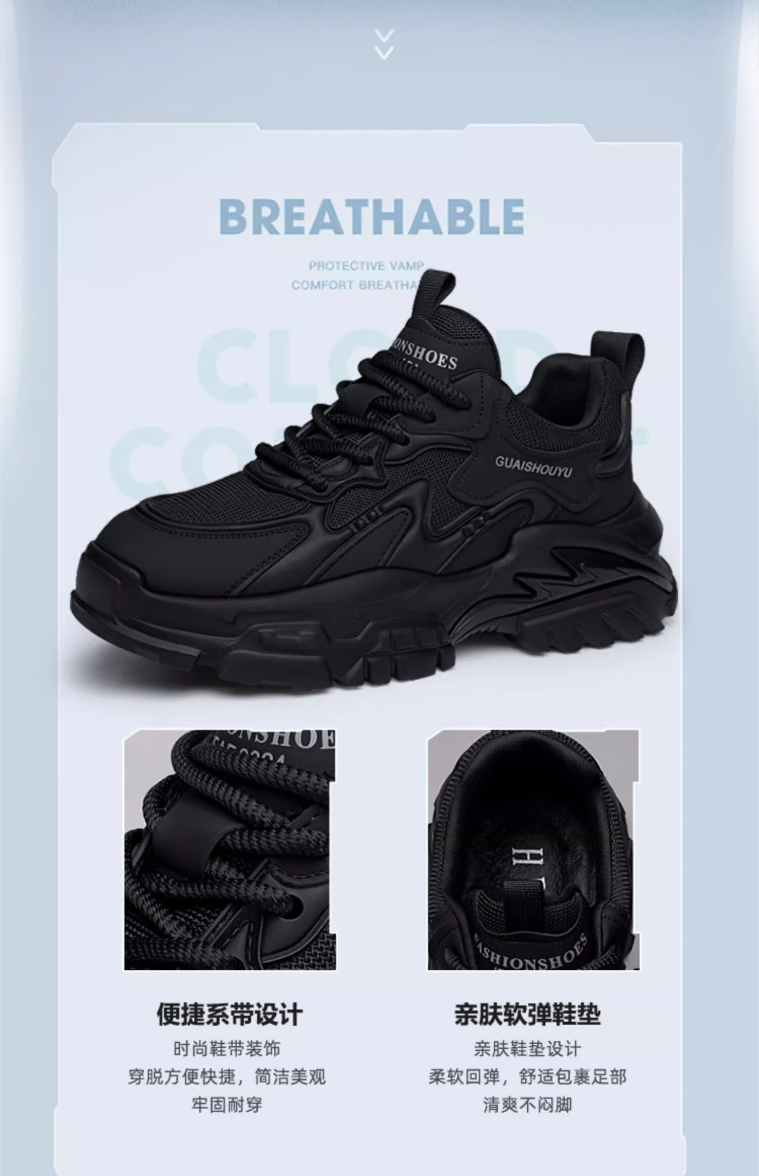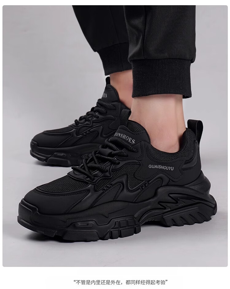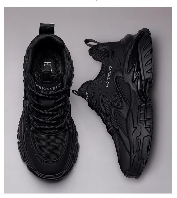 罗宾赐轻奢男鞋2025秋冬新款透气网面运动休闲鞋子男士软底增高老爹鞋男 黑色【加绒保暖】-高端男鞋 43