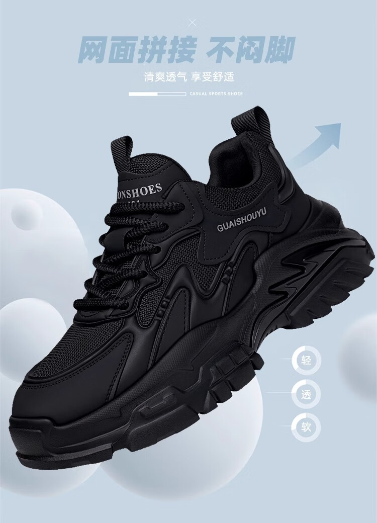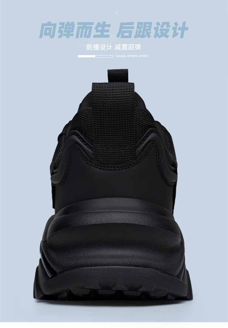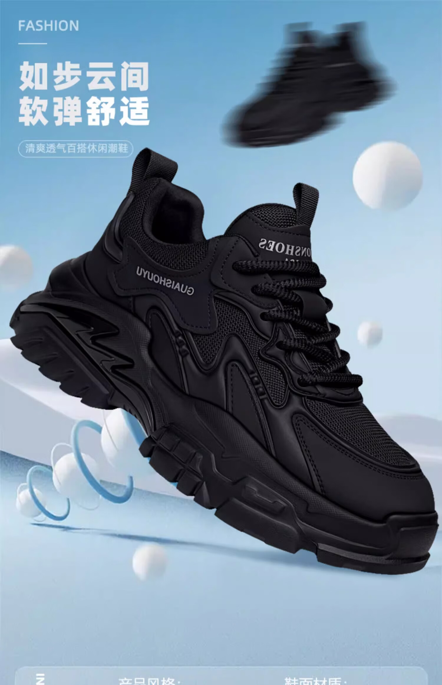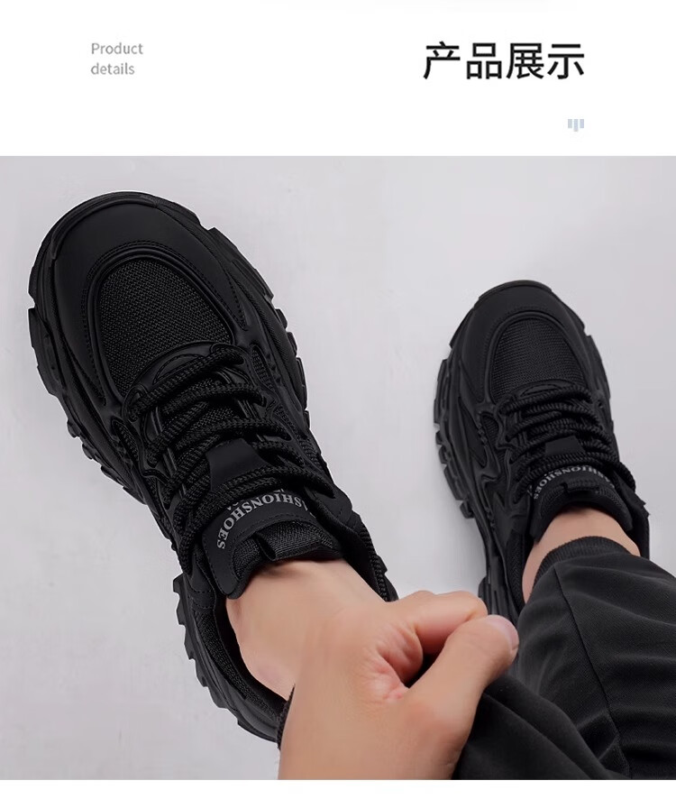 罗宾赐轻奢男鞋2025秋冬新款透气网面运动休闲鞋子男士软底增高老爹鞋男 黑色【加绒保暖】-高端男鞋 43