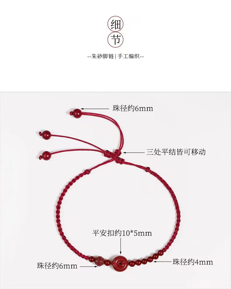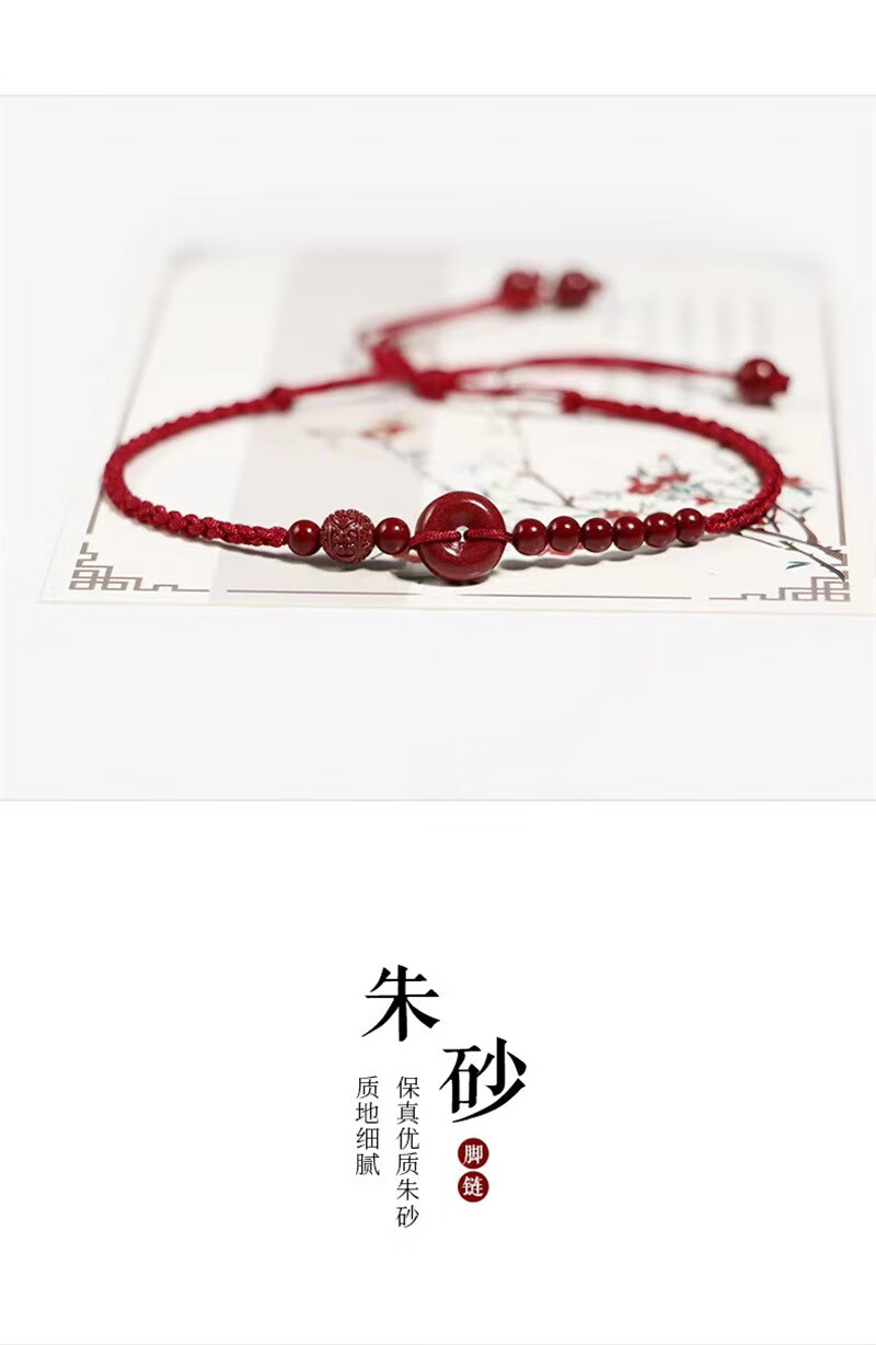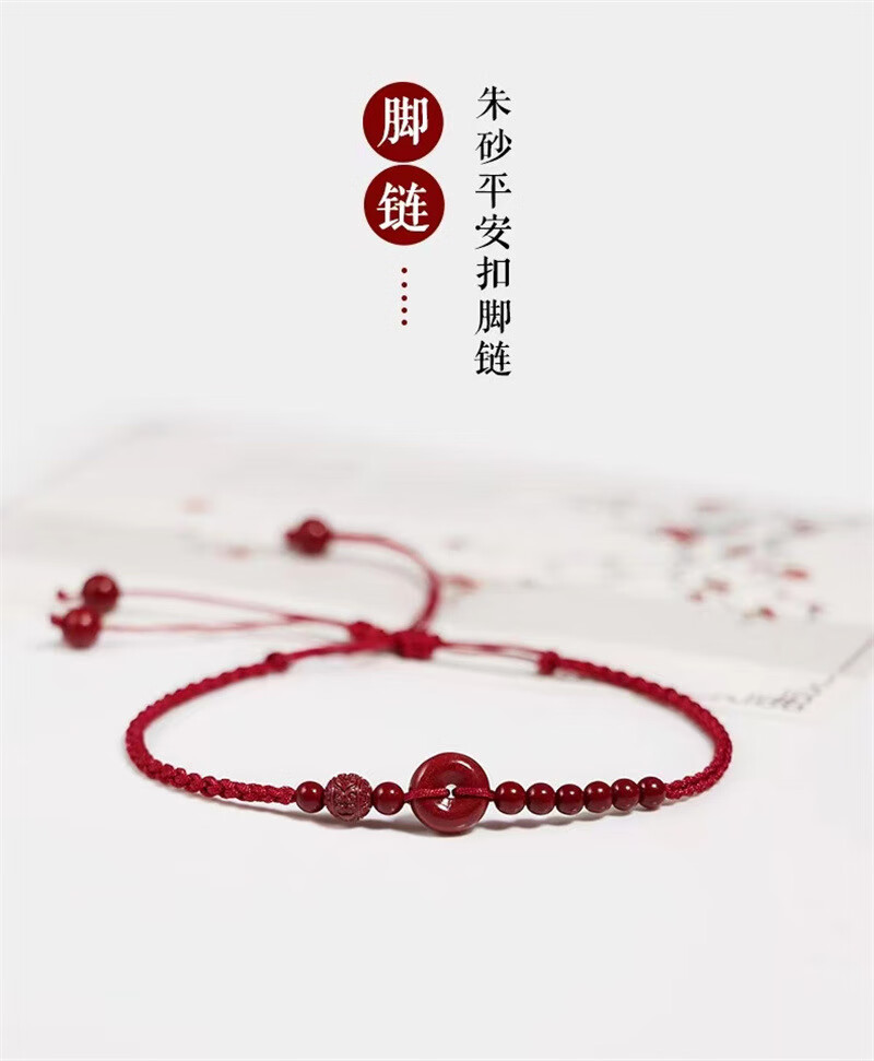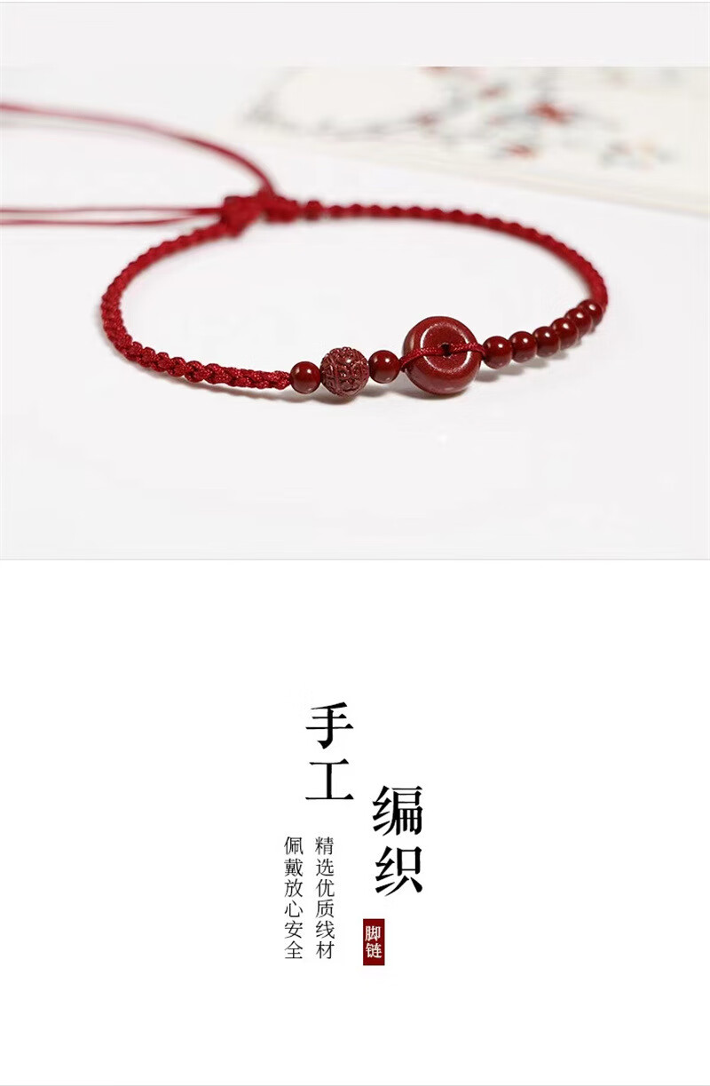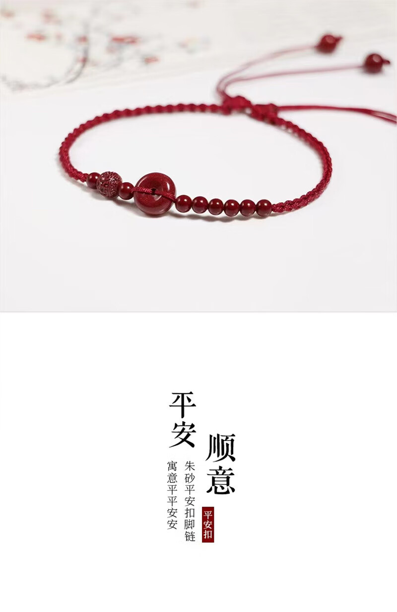 GJXBP朱砂红绳脚链女款本命年朱砂脚链女平安扣珠红绳保平安泰岁化解礼 平安扣-脚链