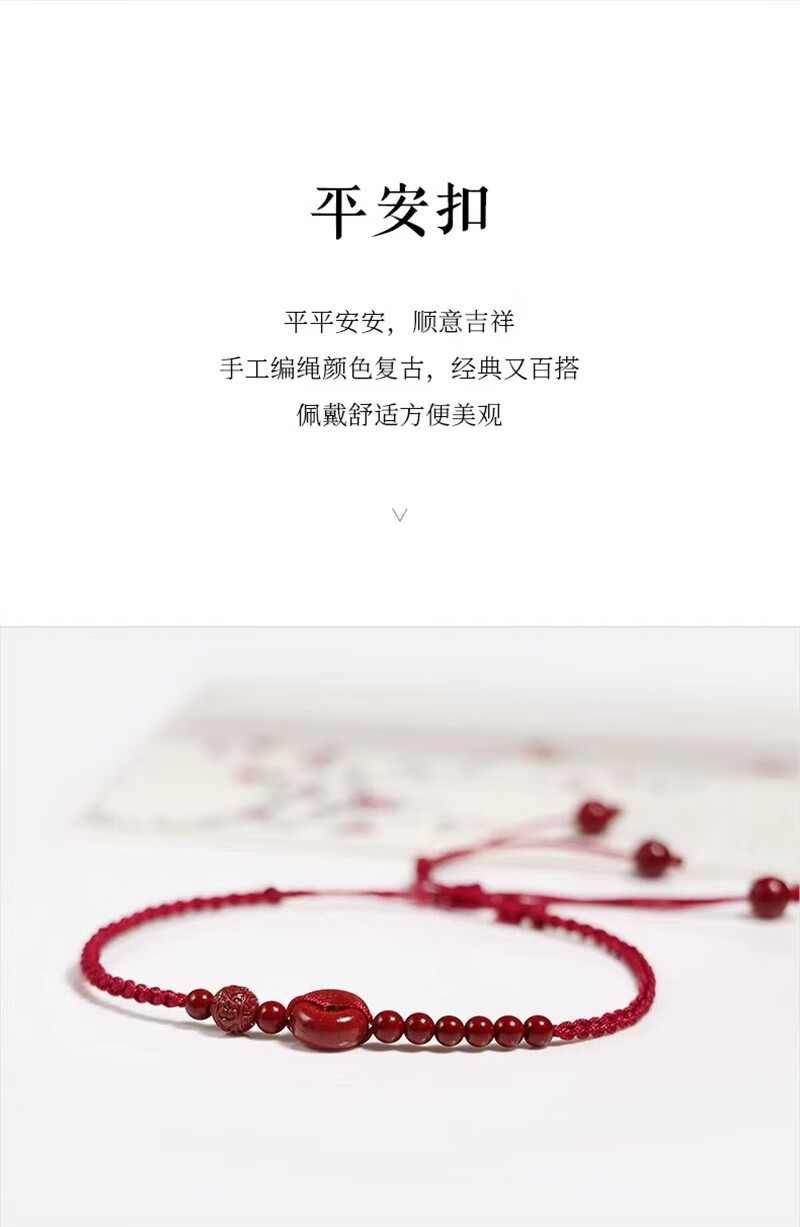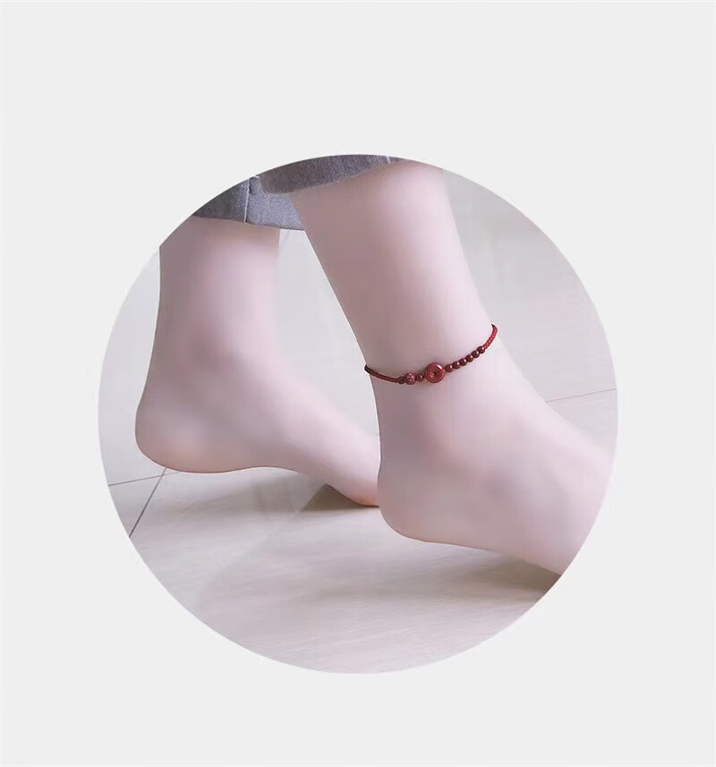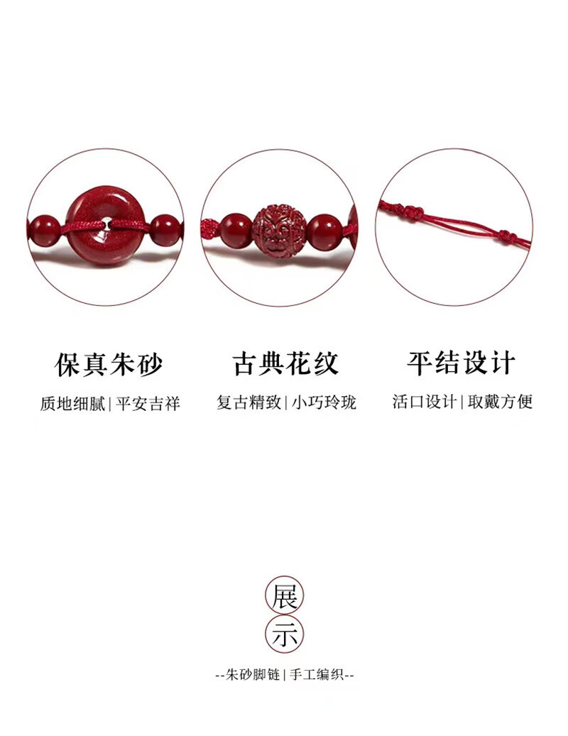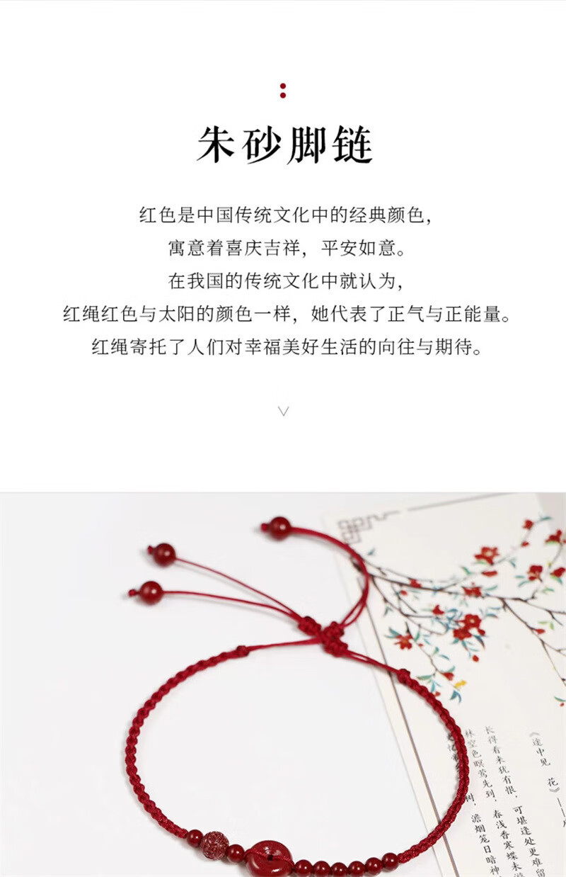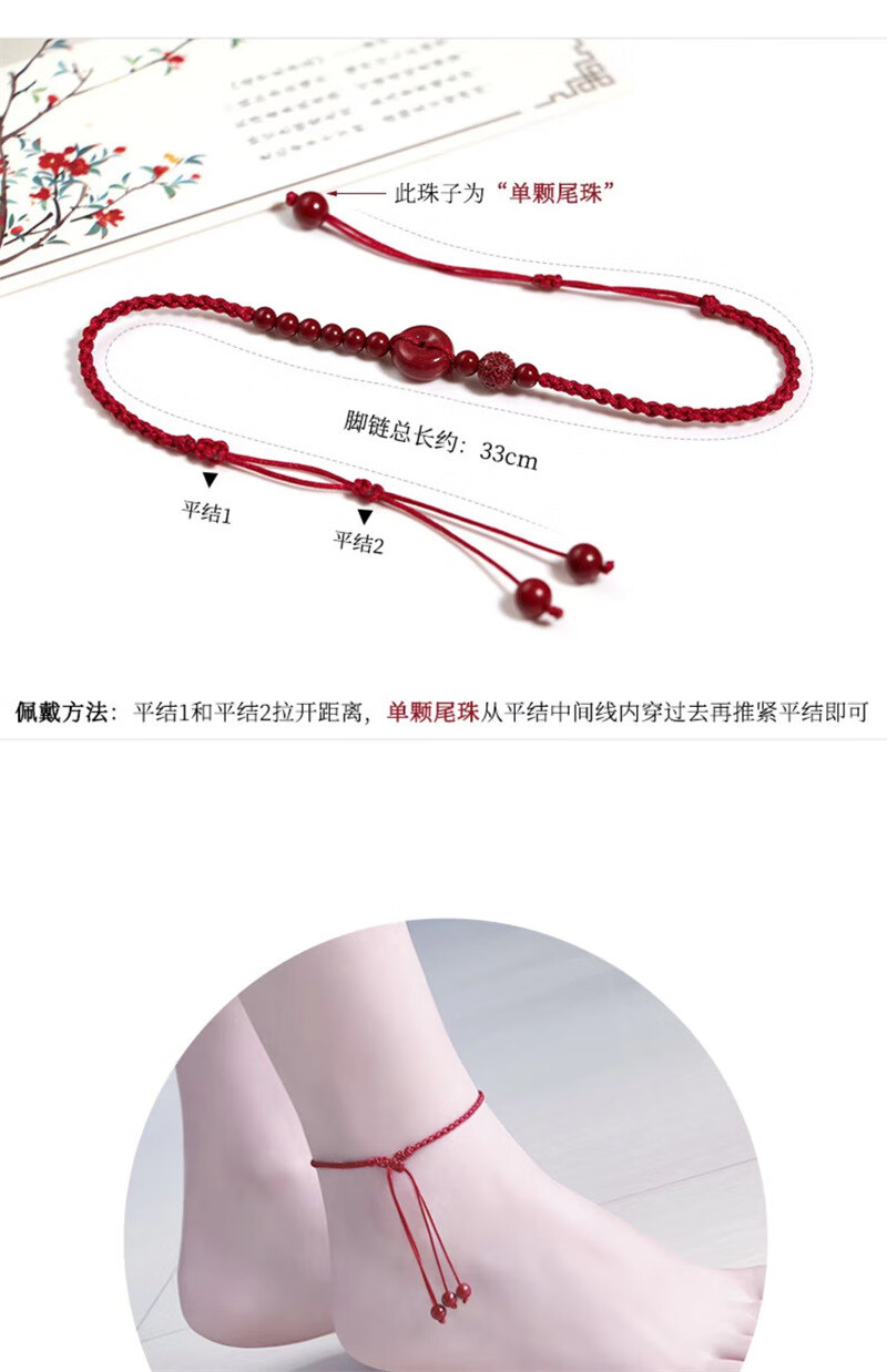 GJXBP朱砂红绳脚链女款本命年朱砂脚链女平安扣珠红绳保平安泰岁化解礼 平安扣-脚链