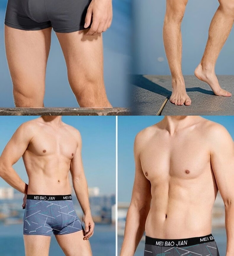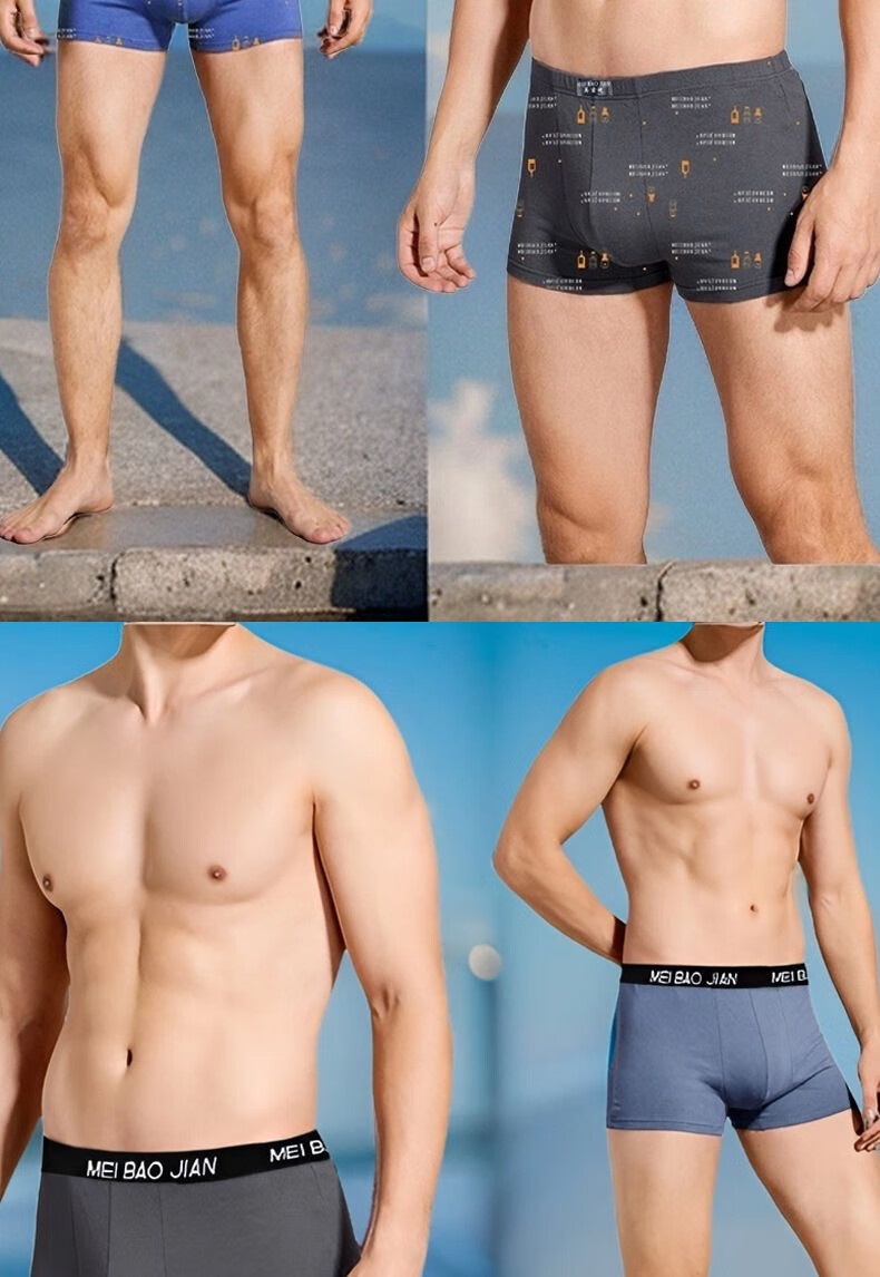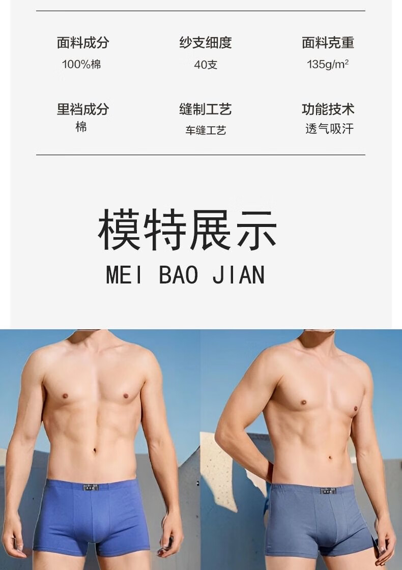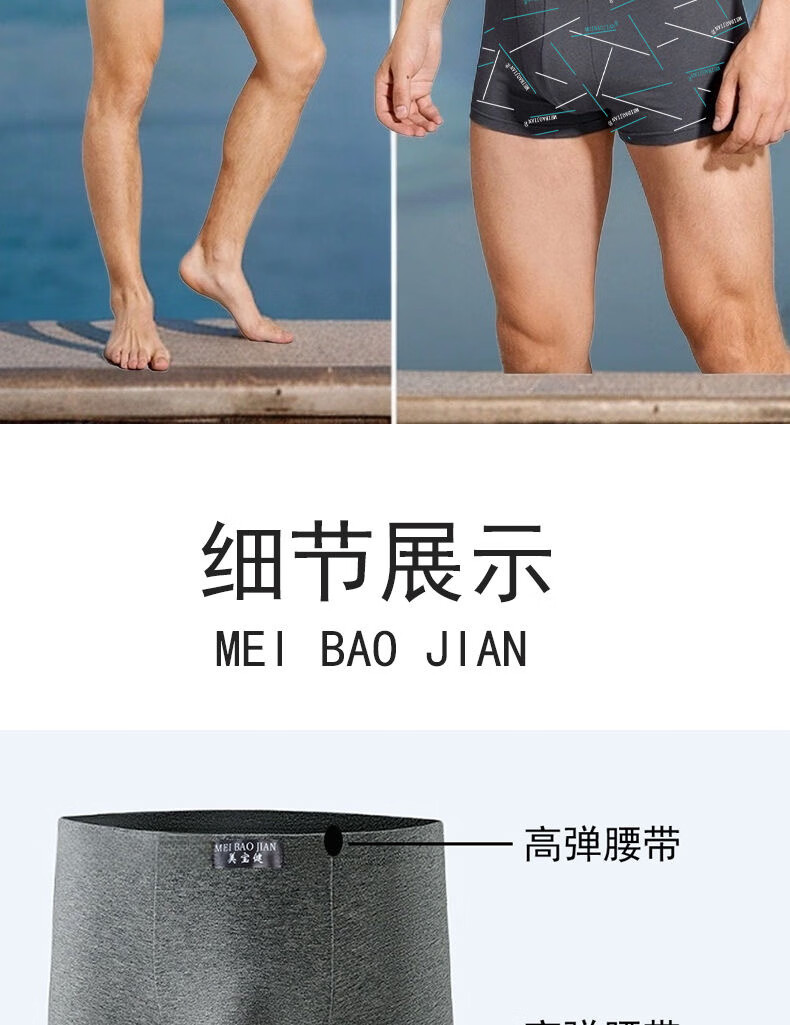 美宝健100%纯棉男士内裤平角印花青中年裤头加肥大码四角透气宽松裤衩 (5条装)条形四(高级雪山棉 5条 XL (体重90-110斤)100%纯棉