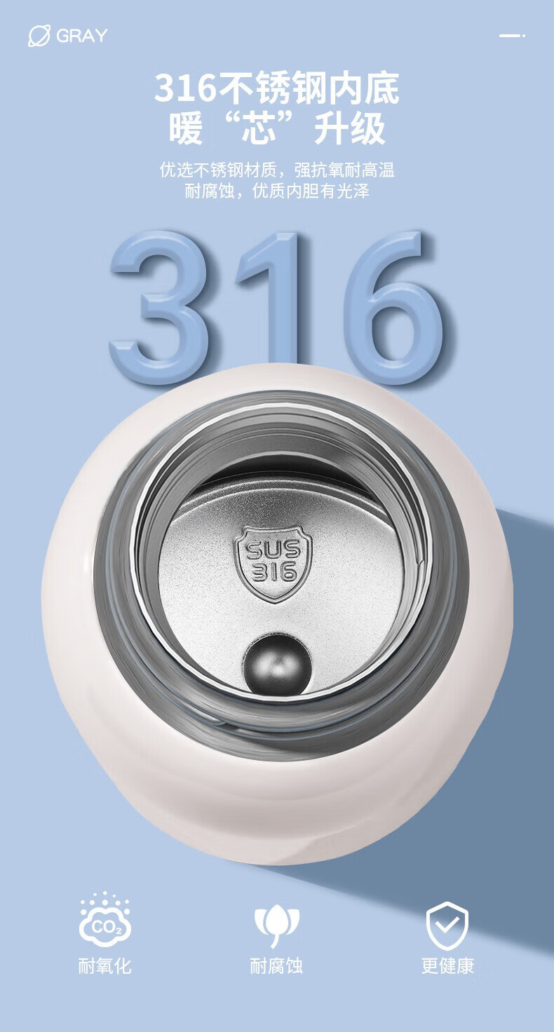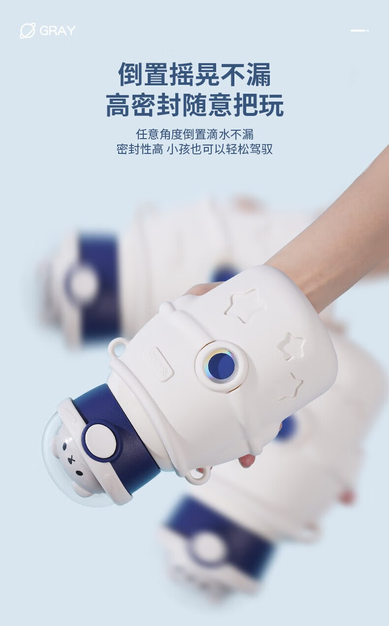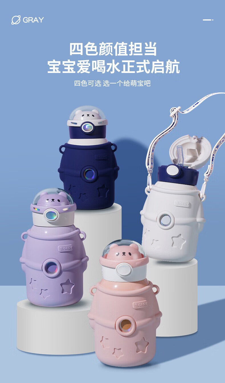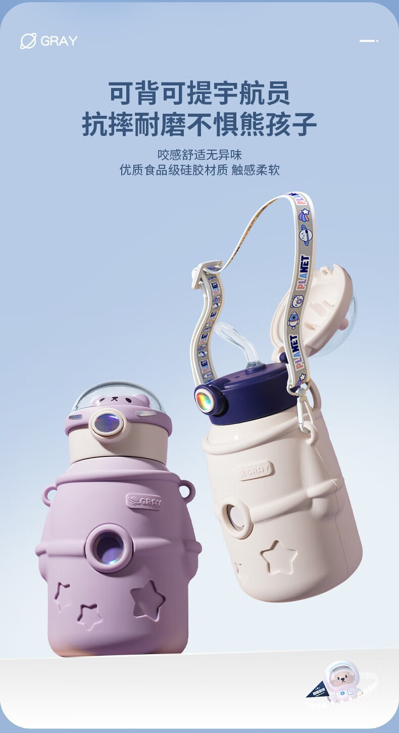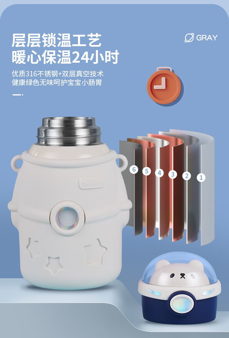 小茶日记抱抱星球316不锈钢儿童保温杯学生吸管水杯子大容量高颜值大肚杯 500ML星际蓝【宇航员保温杯】
