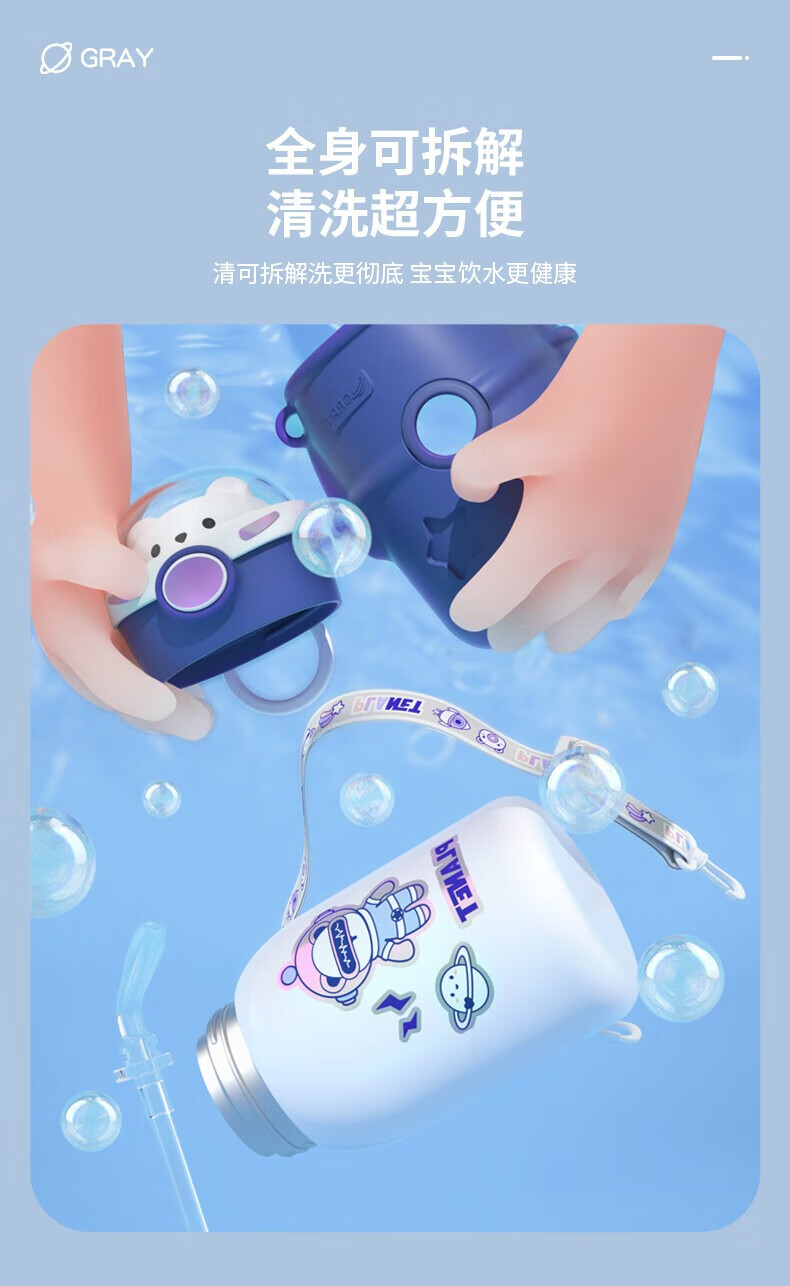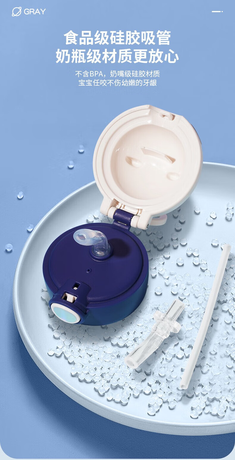 富光儿童保温杯双饮大容量316L不锈钢吸管水杯子上学男女生高颜值礼物 小蒂蓝(一杯双饮)500ml