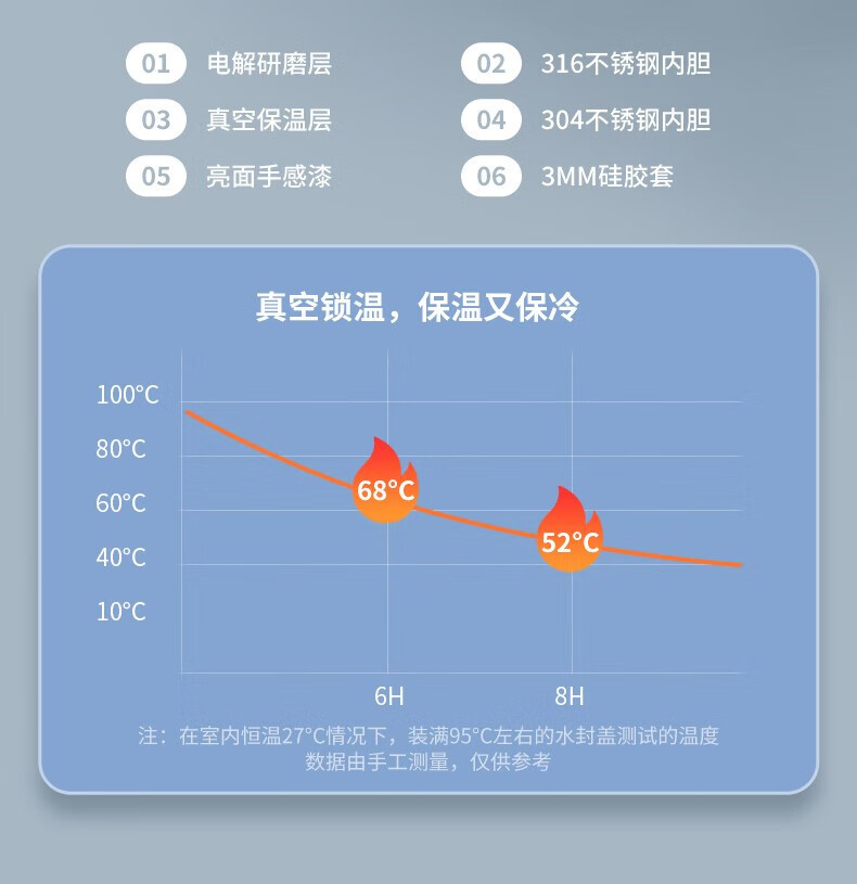 富光 男女士真空不锈钢保温杯 旅行运动水杯子 便携式车载办公茶杯 幽冥黑 500ml