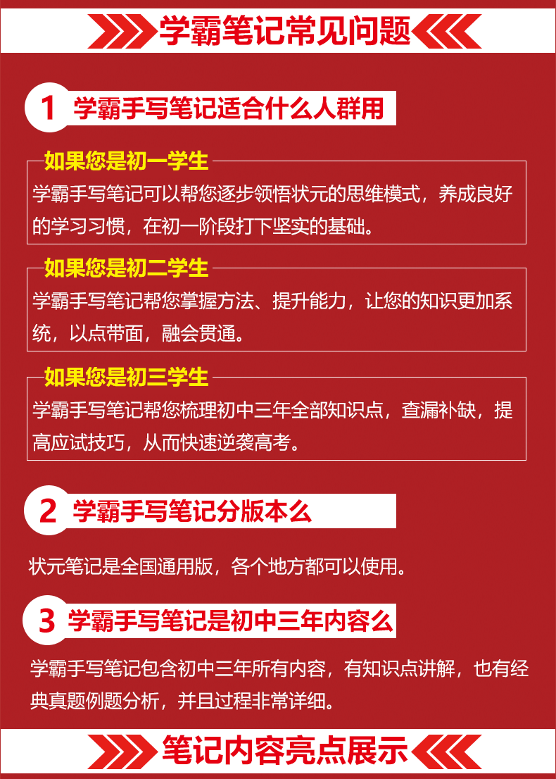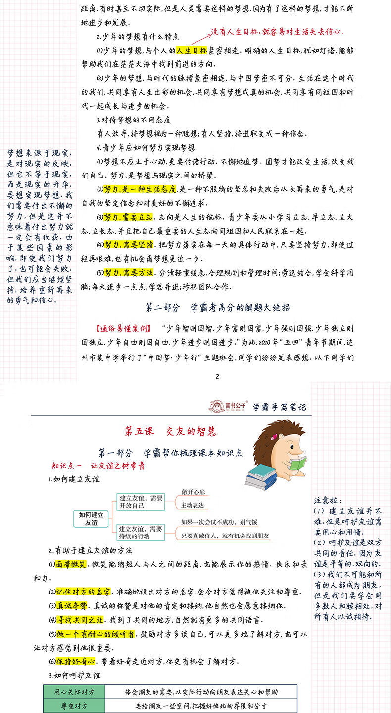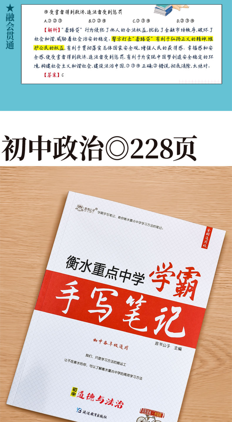 衡水重点中学状元手写笔记初中全套9科初一二三中考语文数学英语物理化学历史政治复习资料学霸笔记知识大全