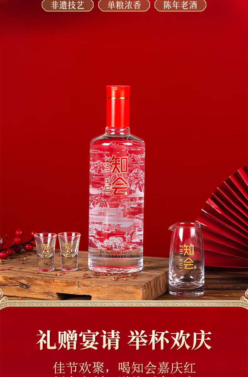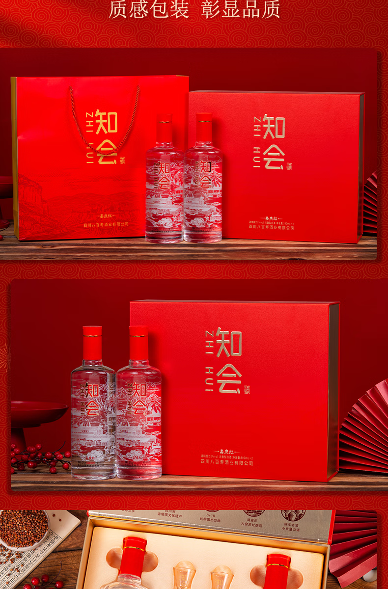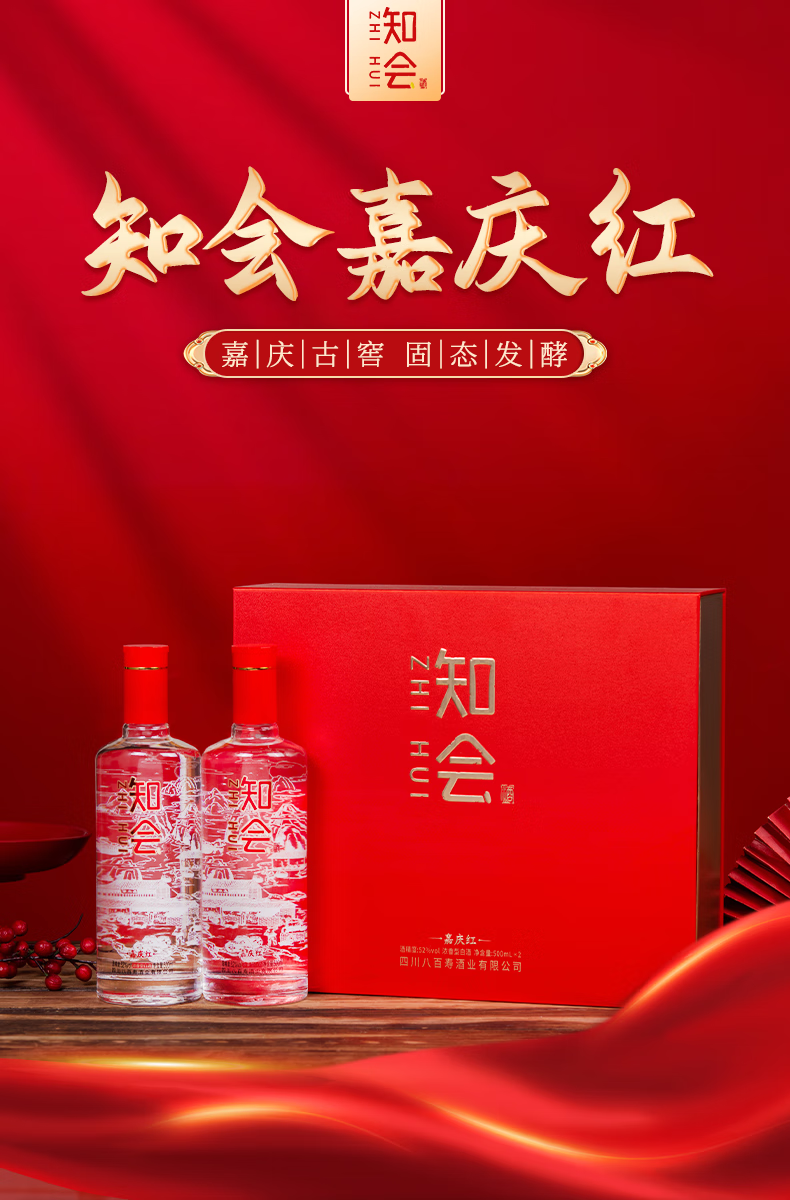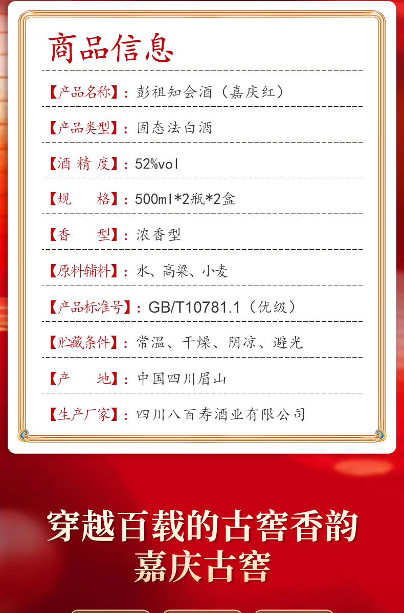 彭祖知会嘉庆红52度浓香型白酒500ml*2瓶*2盒礼盒装宴请送礼酒水 52%vol 500mL 4瓶 整箱