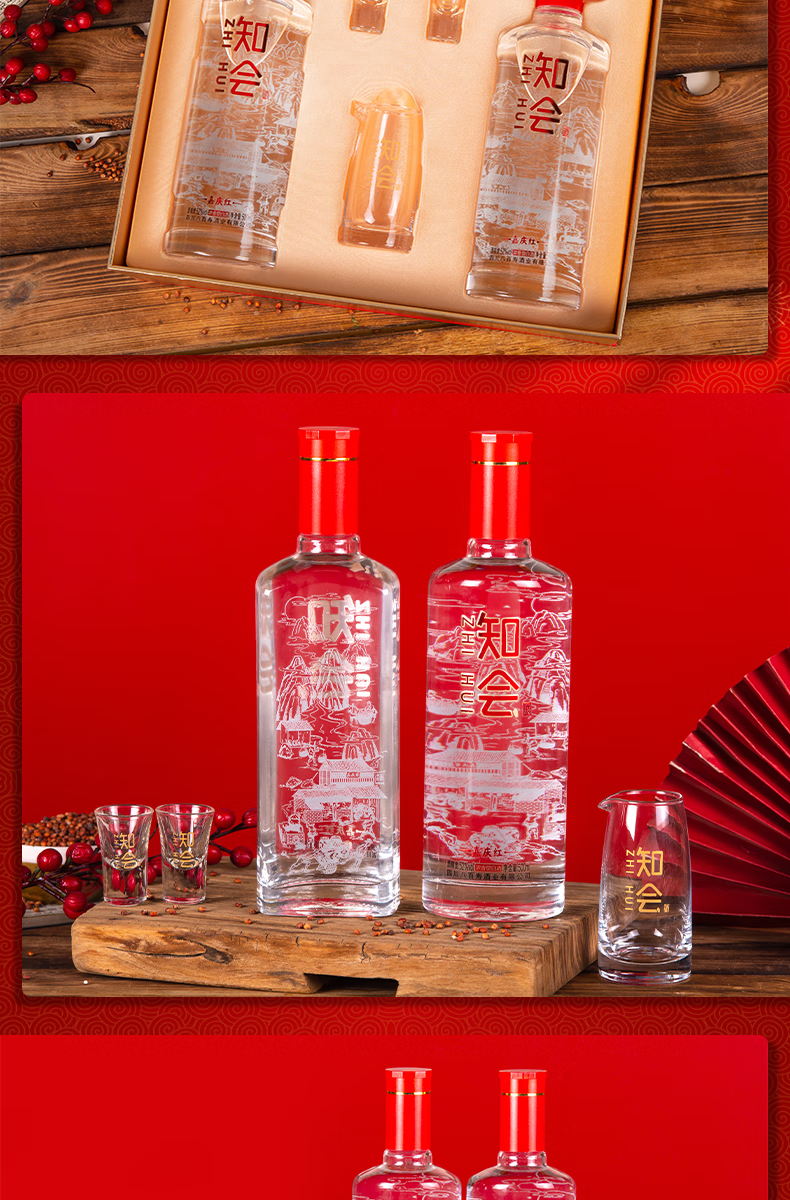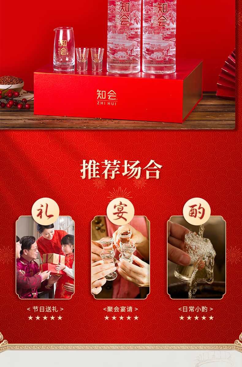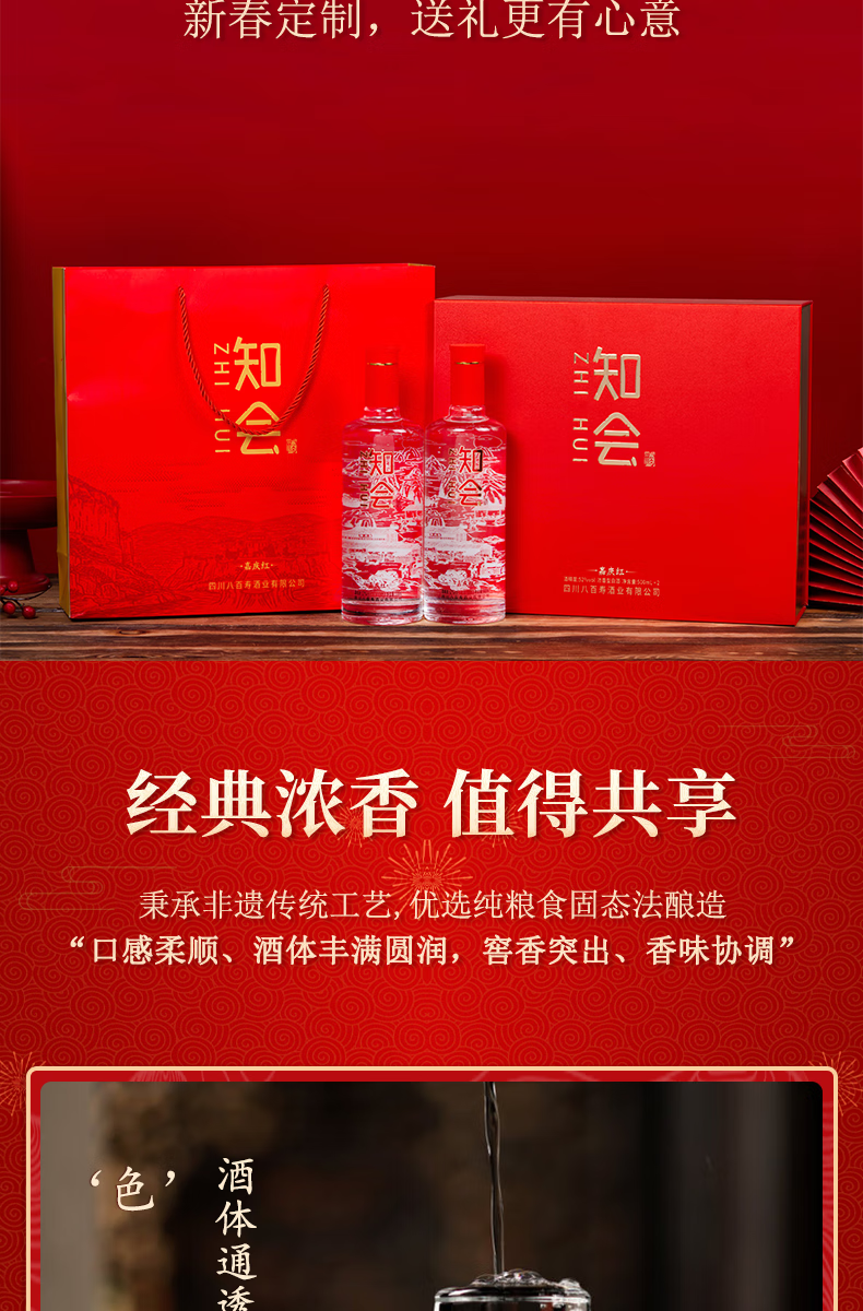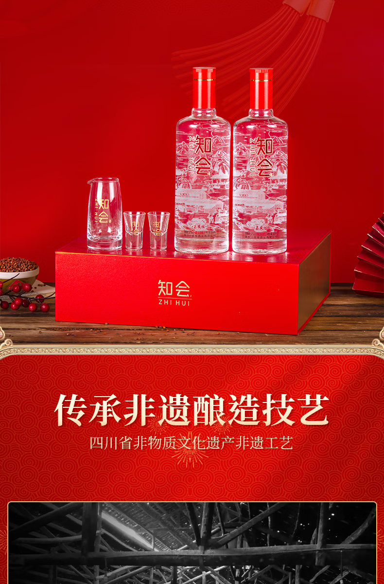 彭祖知会嘉庆红52度浓香型白酒500ml*2瓶*2盒礼盒装宴请送礼酒水 52%vol 500mL 4瓶 整箱