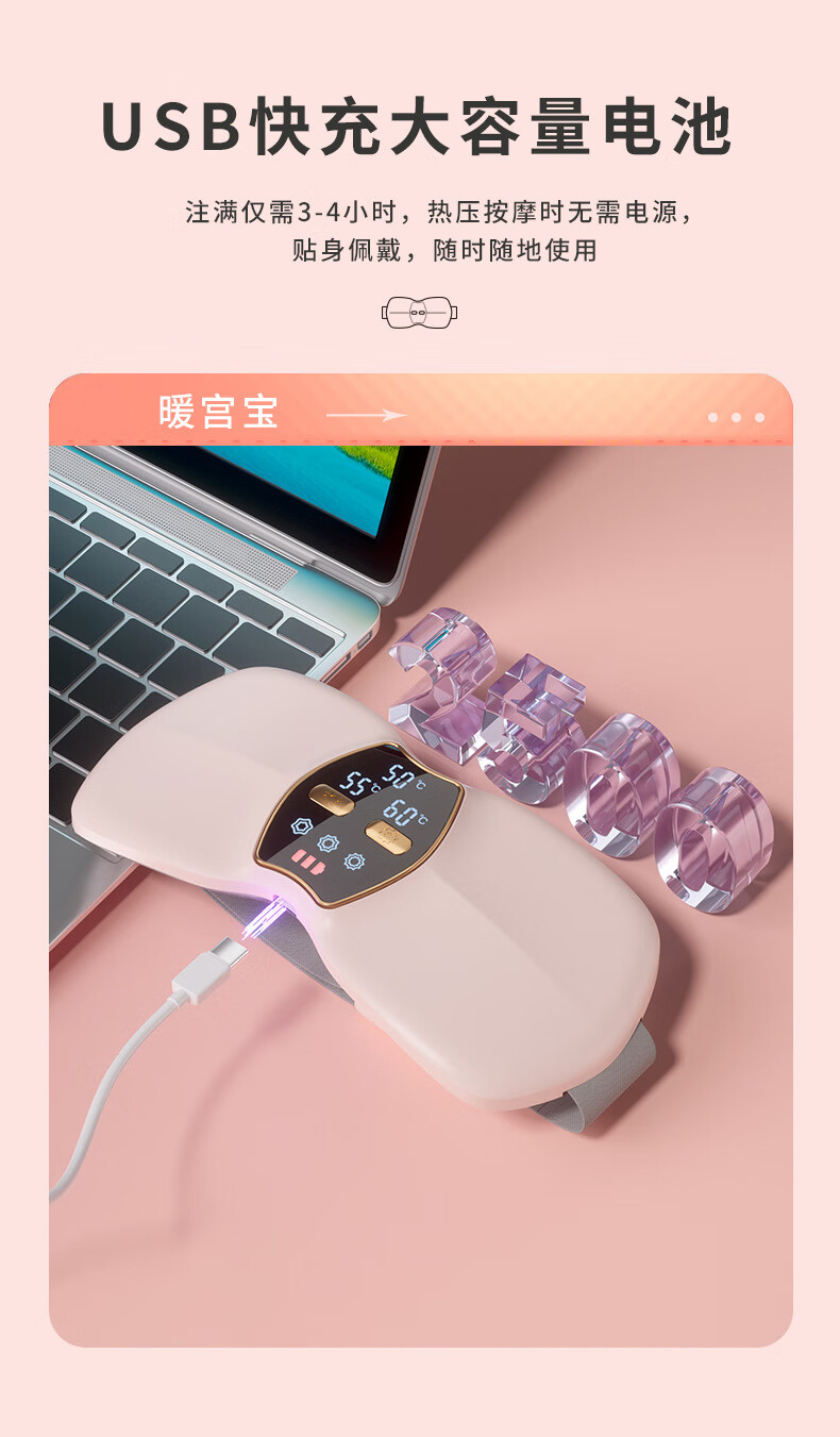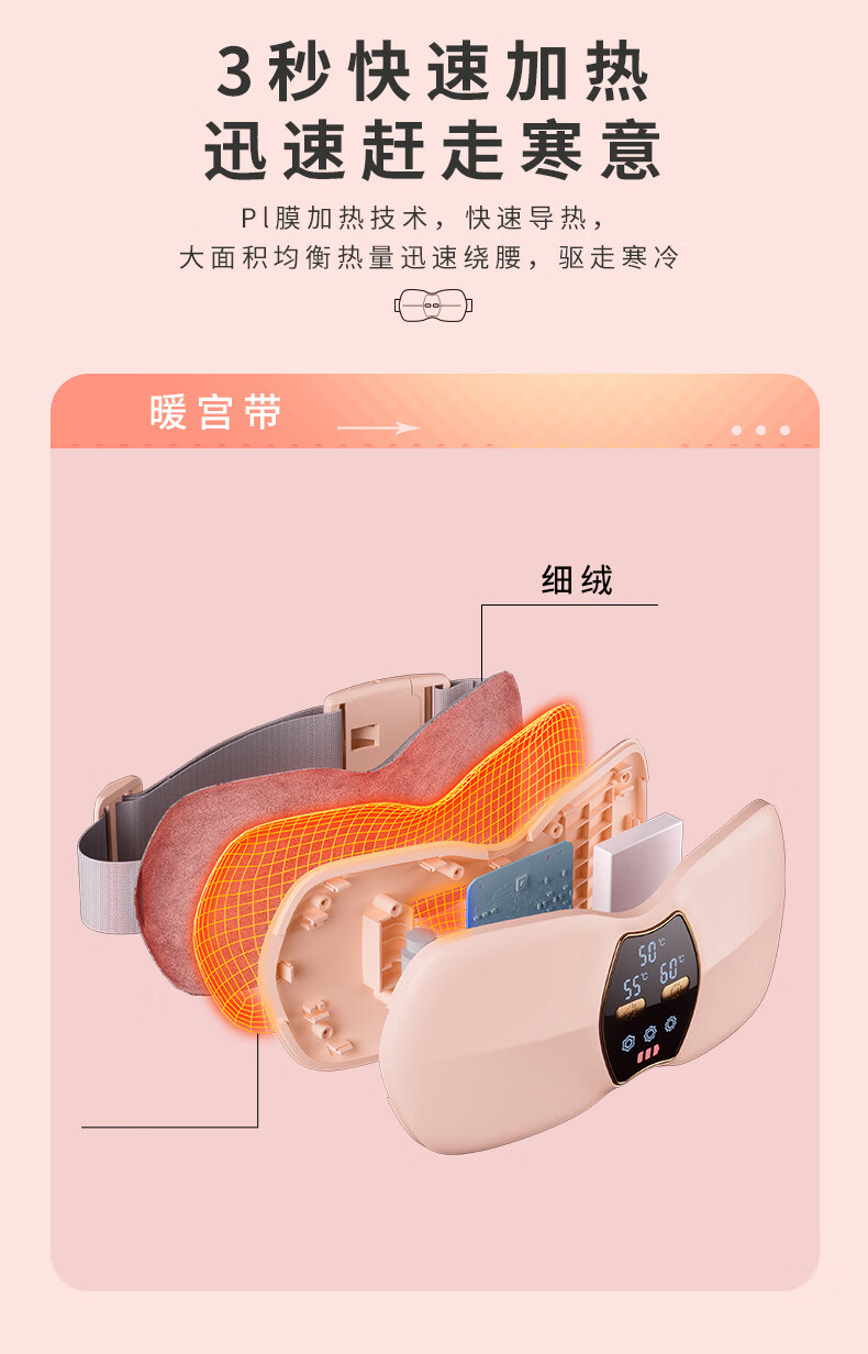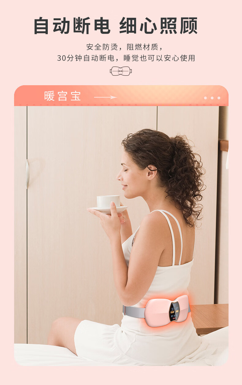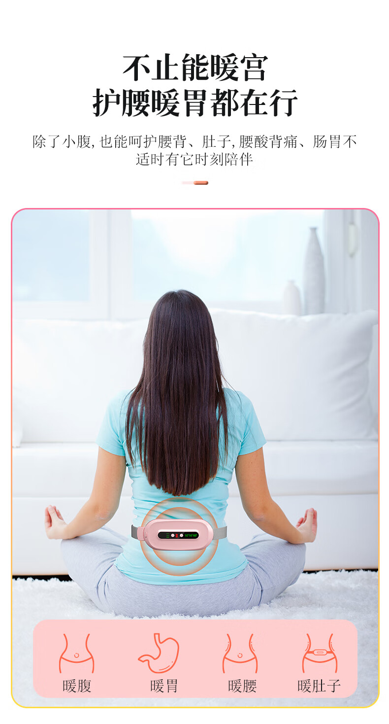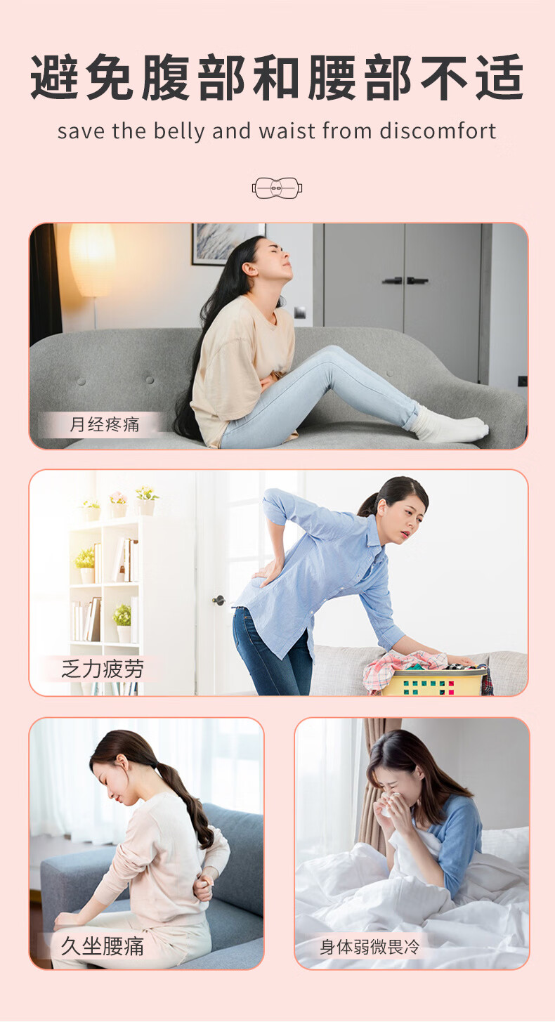 把卡把咔便携式多功能加热护腰腰痛理疗暖腰暖宫带发热保暖 按摩保健塑型身材 送女神亲友礼品代写贺卡 粉色网红款+礼盒代写贺卡