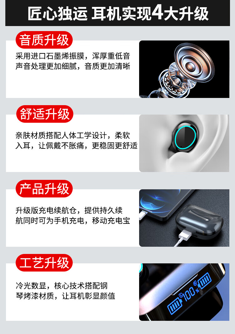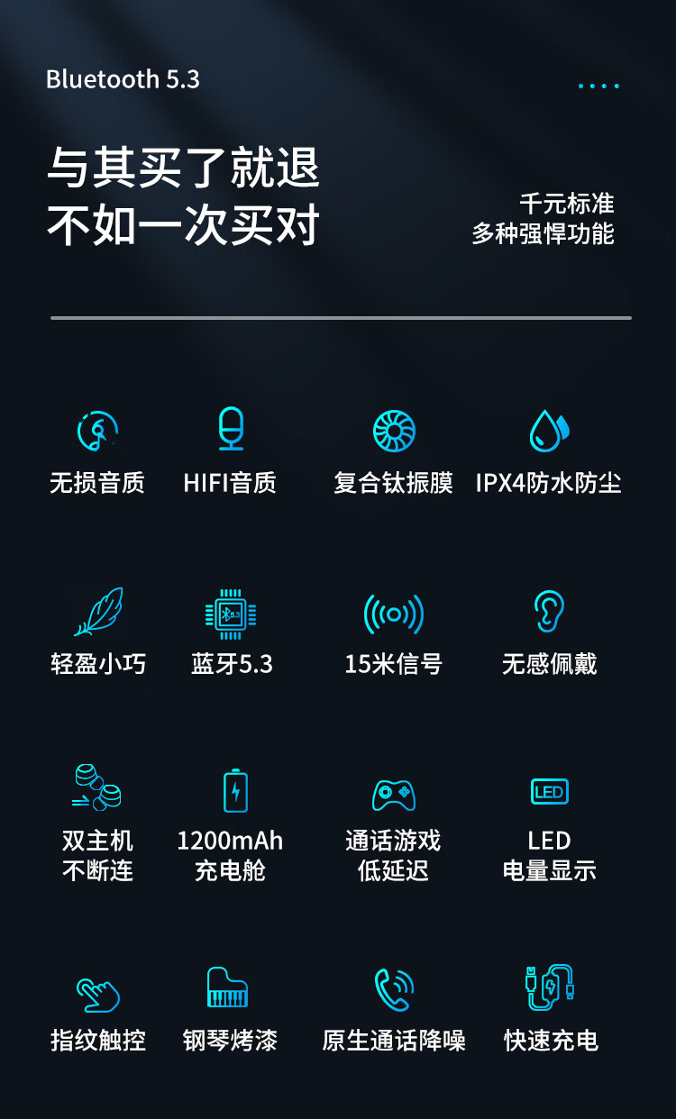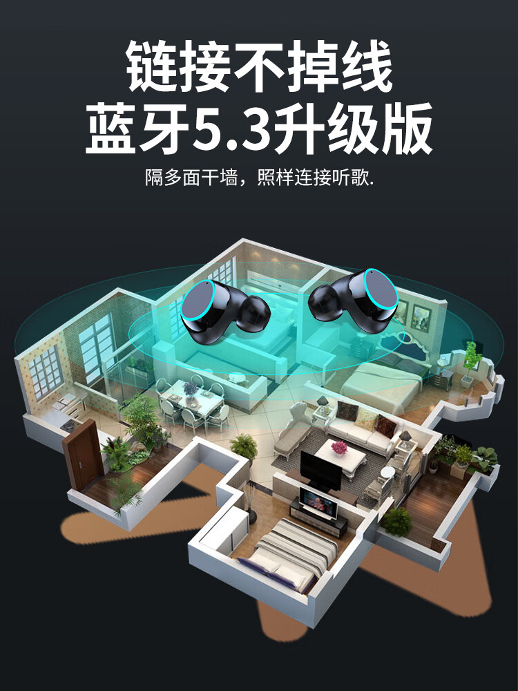 萨勒芬妮 蓝牙耳机真无线华强北AirPods3超长续航运动适用苹果安卓手机双耳降噪iphone17不入耳式排行前十 超长续航-HIFi音效
