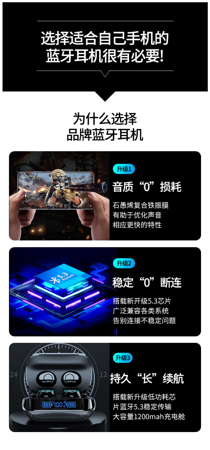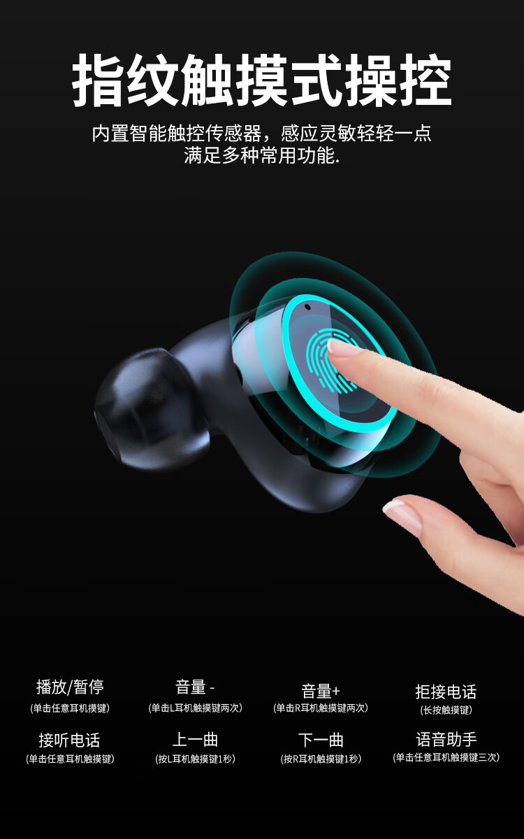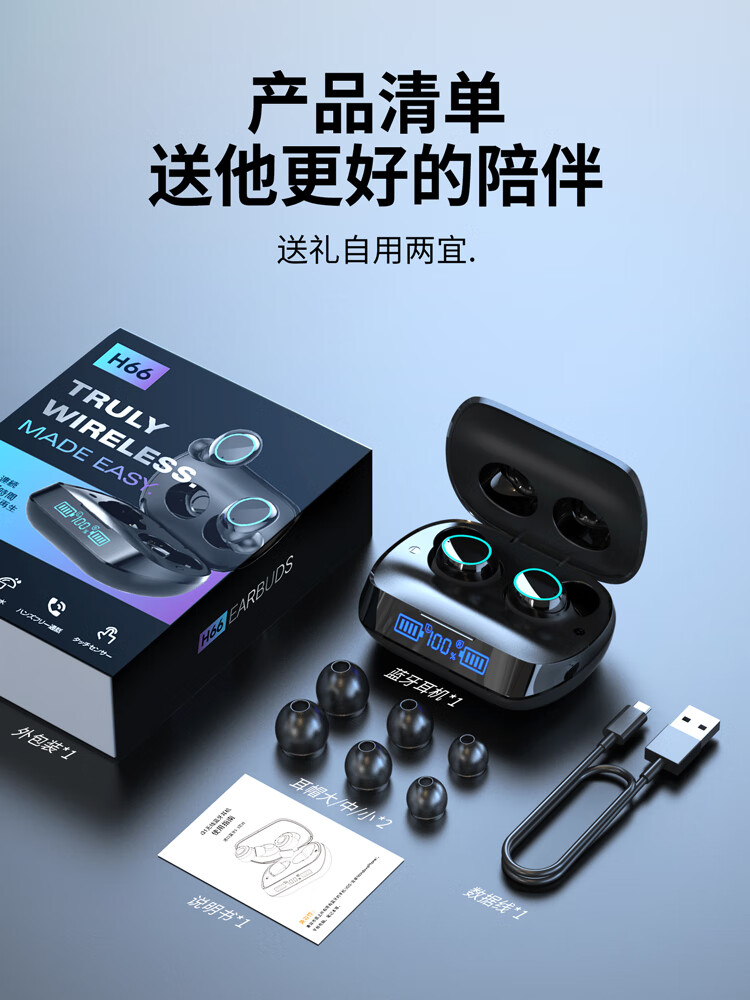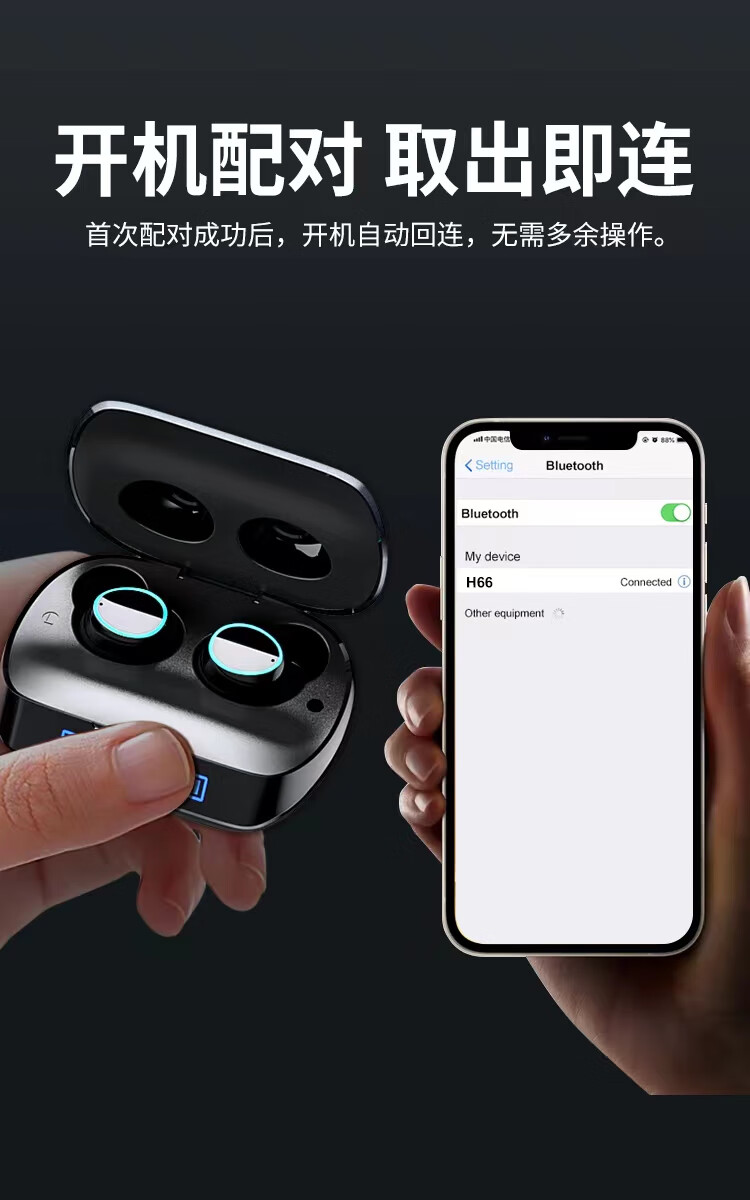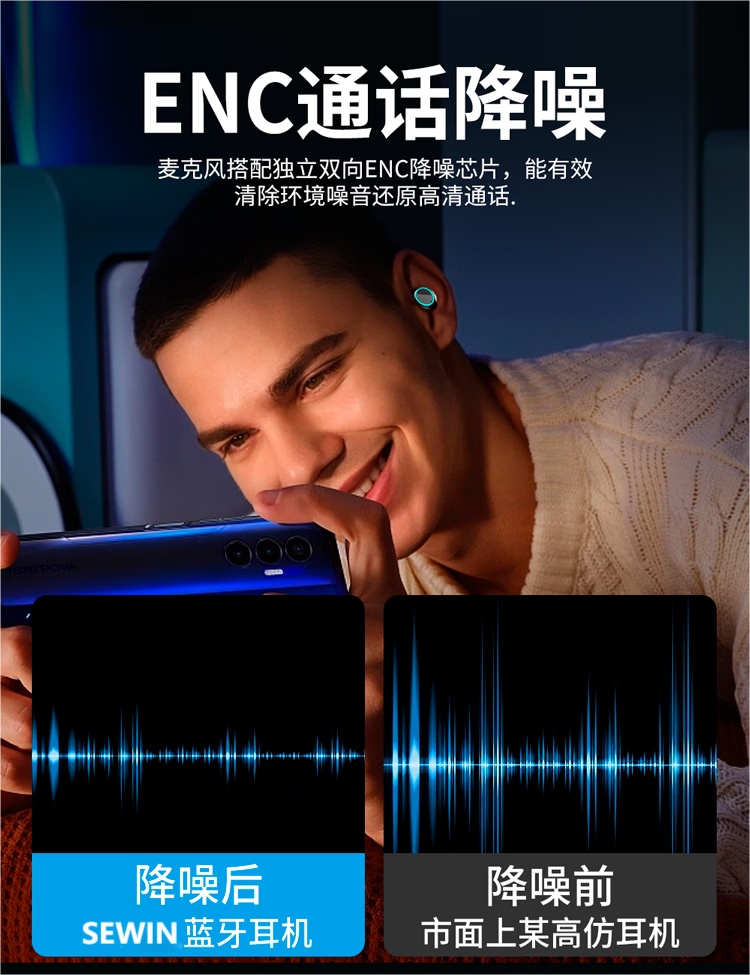 SEWIN蓝牙耳机无线HIFI高保真音质低延迟智能降噪长续航入耳式触摸控制轻盈小巧佩戴舒适 黑色 H66