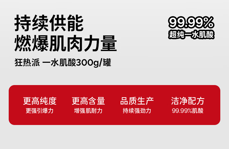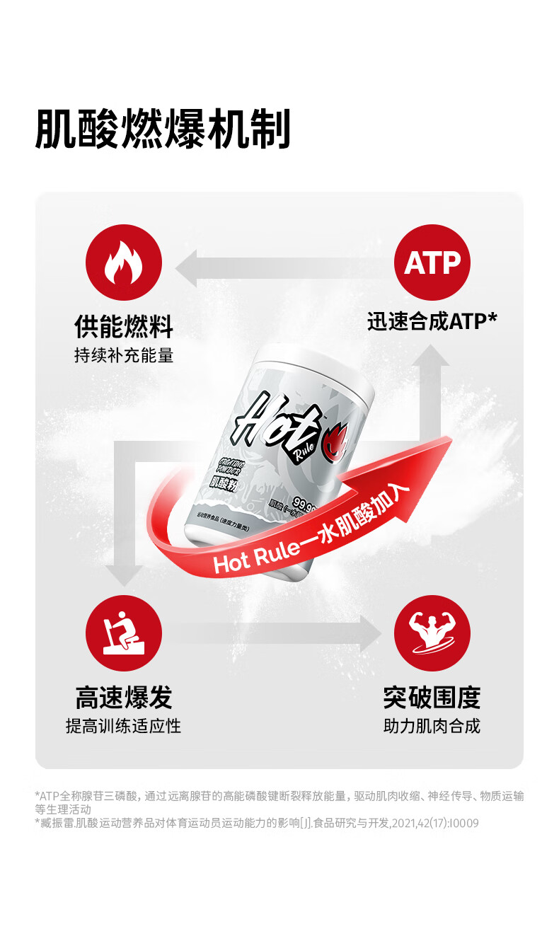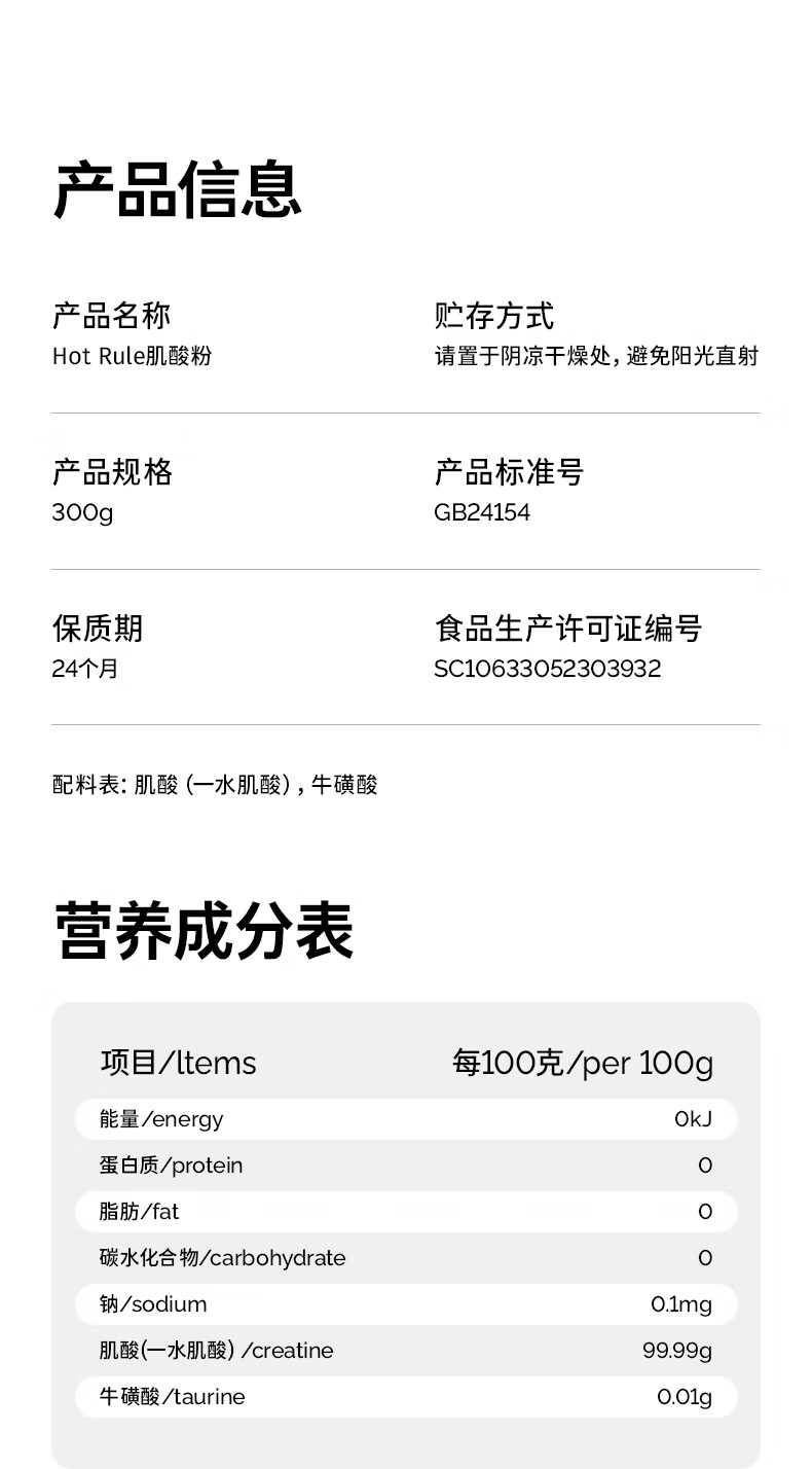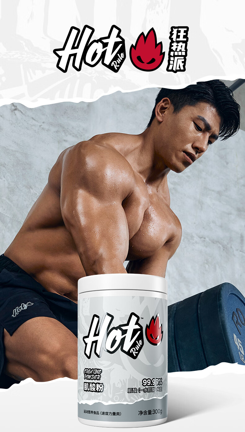 Hot Rule一水肌酸99.99%高纯度肌酸粉马拉松爆发耐力健身营养补剂非氮泵 【99.99%一水肌酸】引爆肌力 300g*1瓶