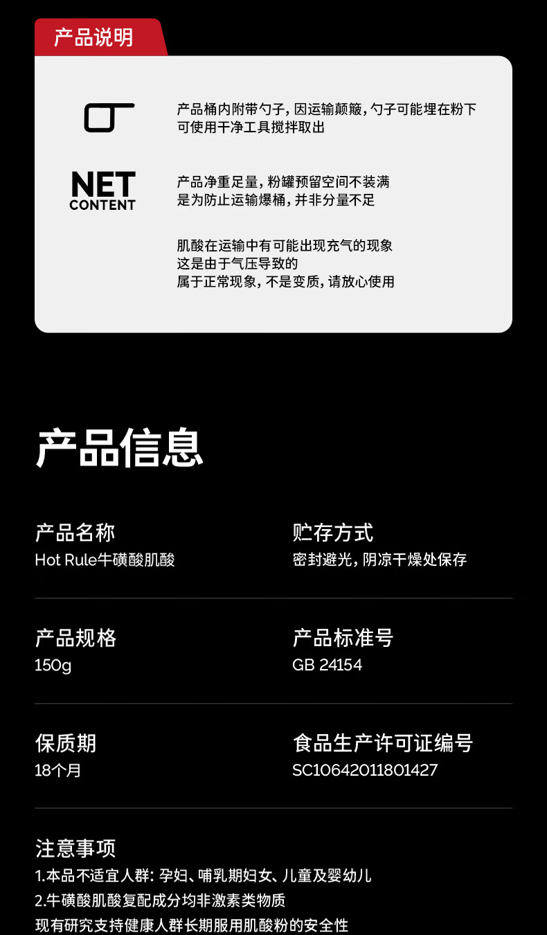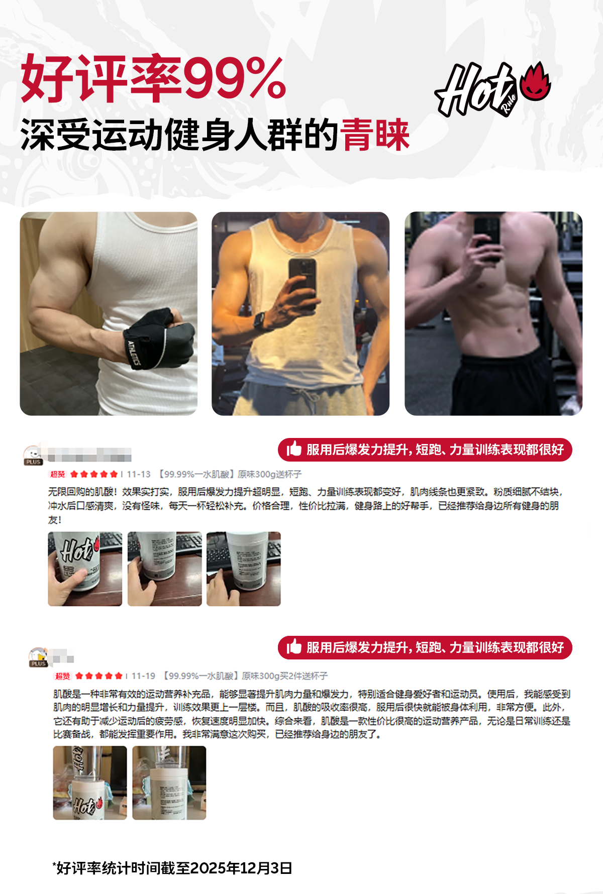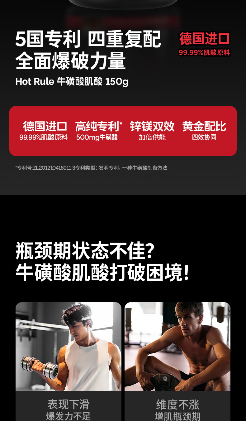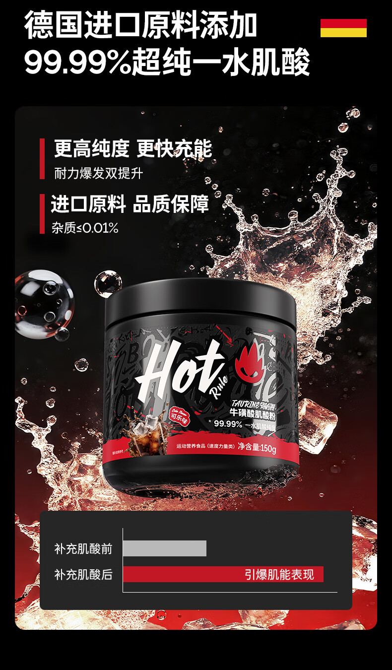 Hot Rule一水肌酸99.99%高纯度肌酸粉马拉松爆发耐力健身营养补剂非氮泵 【99.99%一水肌酸】引爆肌力 300g*1瓶