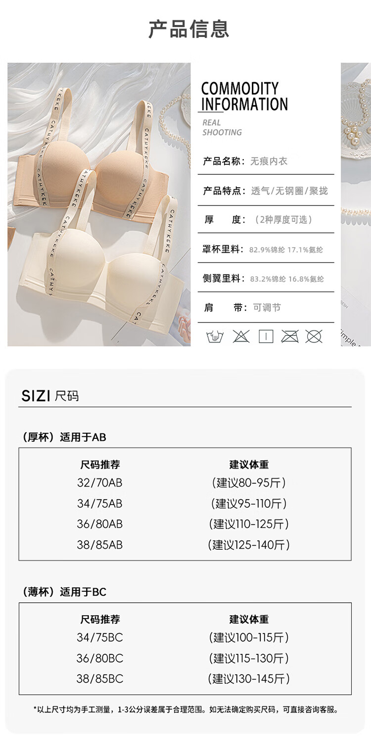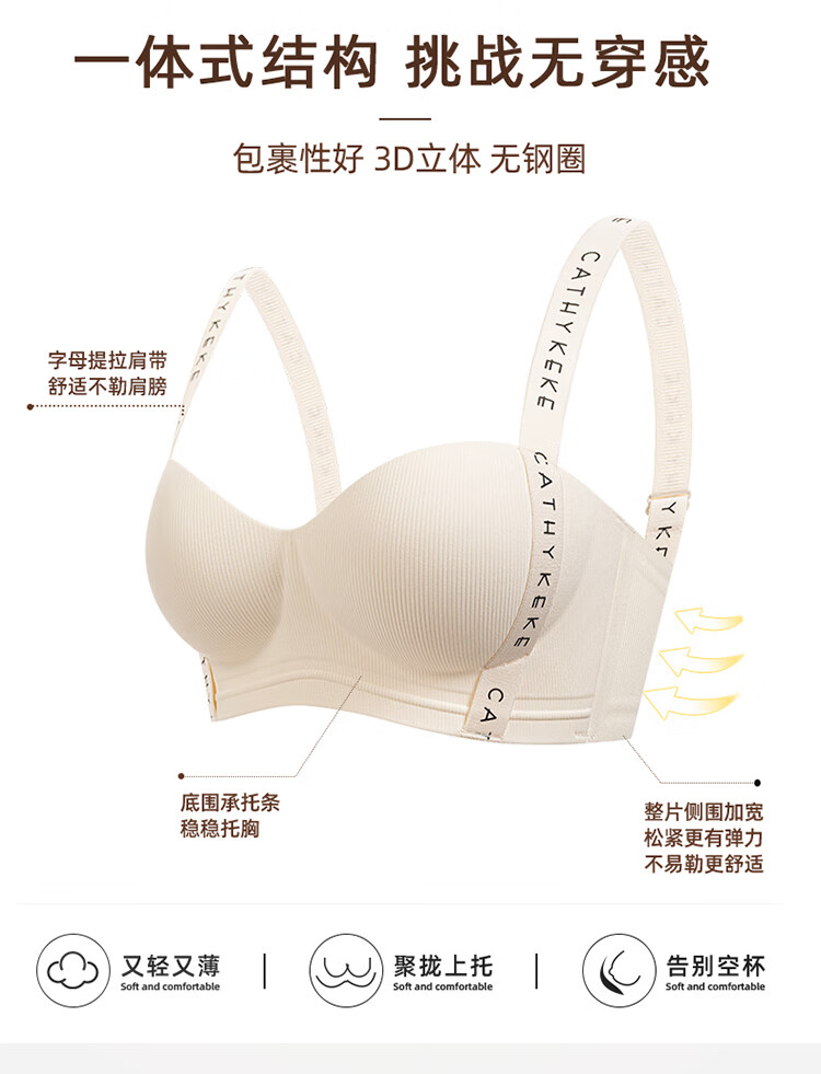 都市丽人女士内衣女无痕内衣小胸聚拢防下垂防外扩收副乳文胸罩聚拢内衣 粉底液内衣女士文胸-裸肤色 M -34/75AB(建议95-110斤)