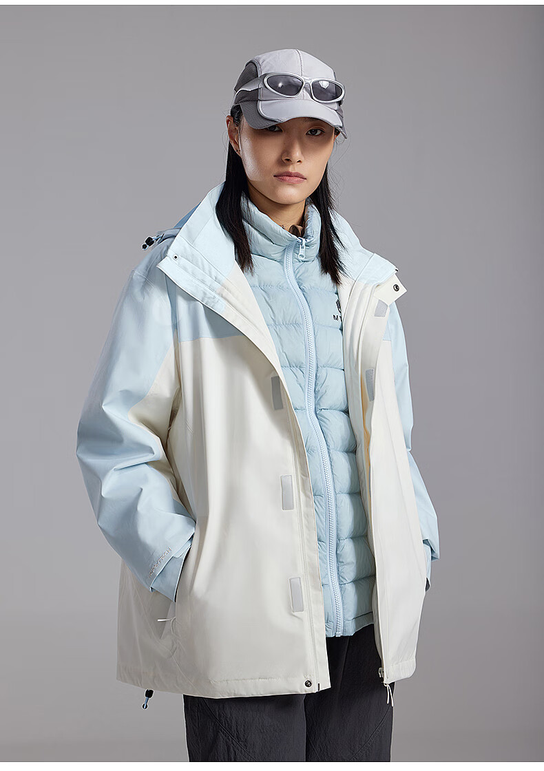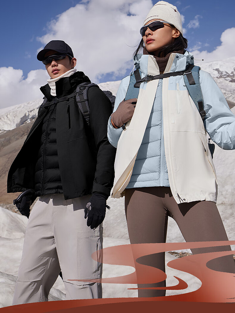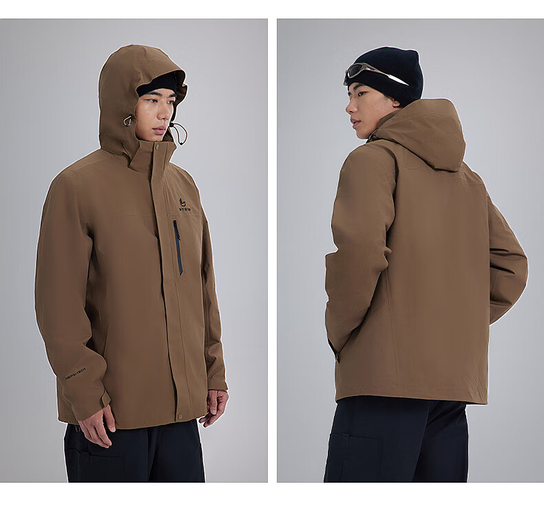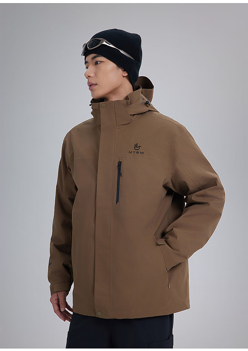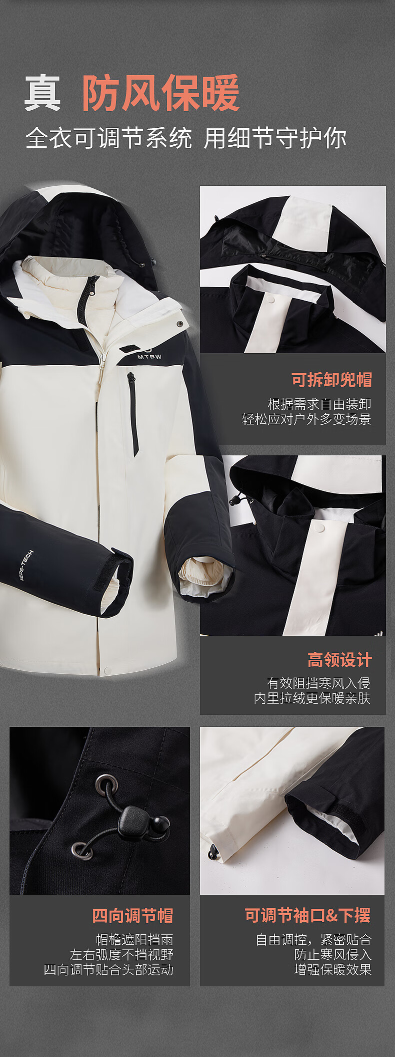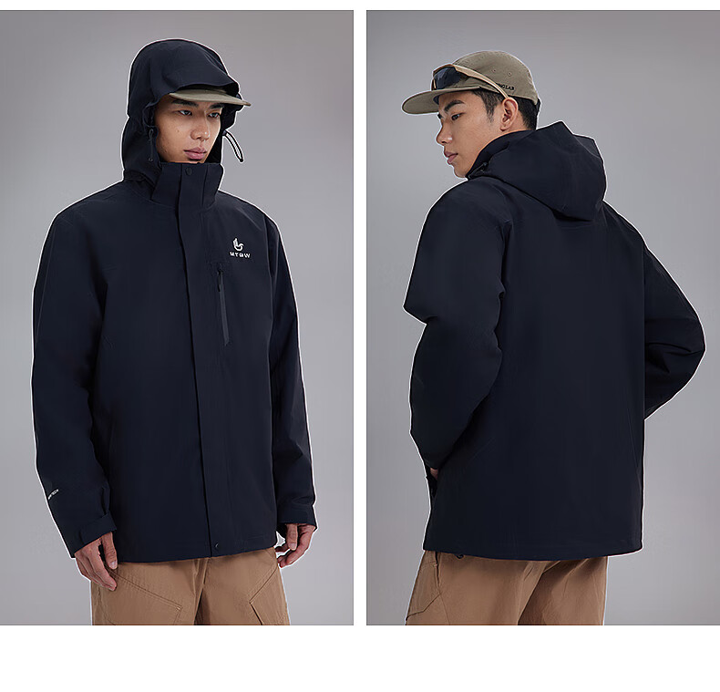 美特斯邦威男女同款三合一冲锋衣冬季新款羽绒内胆防水防风外套 鱼子酱黑 L 175 96A