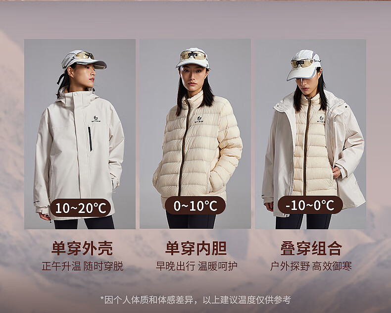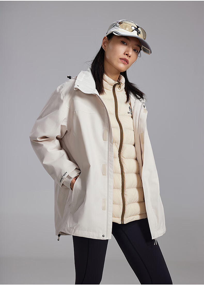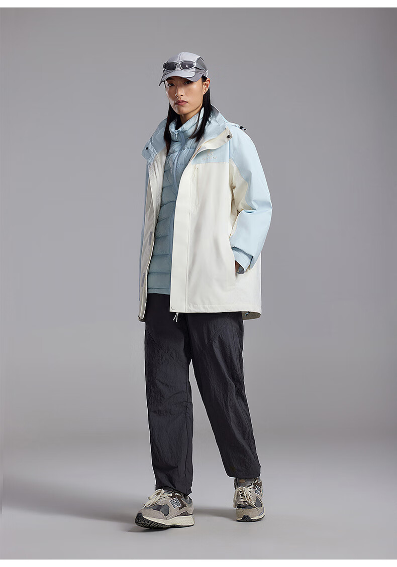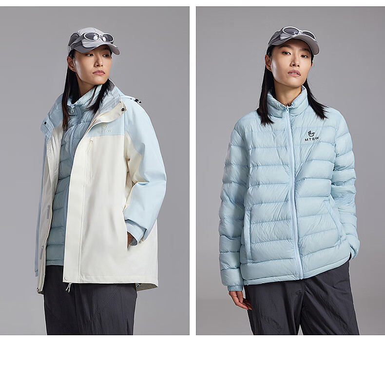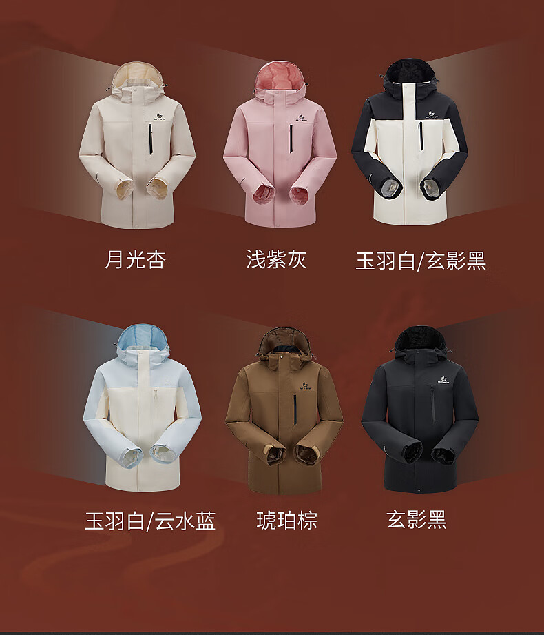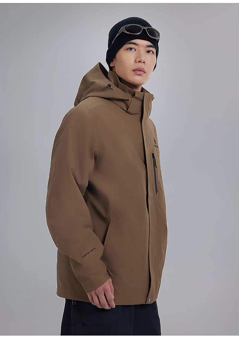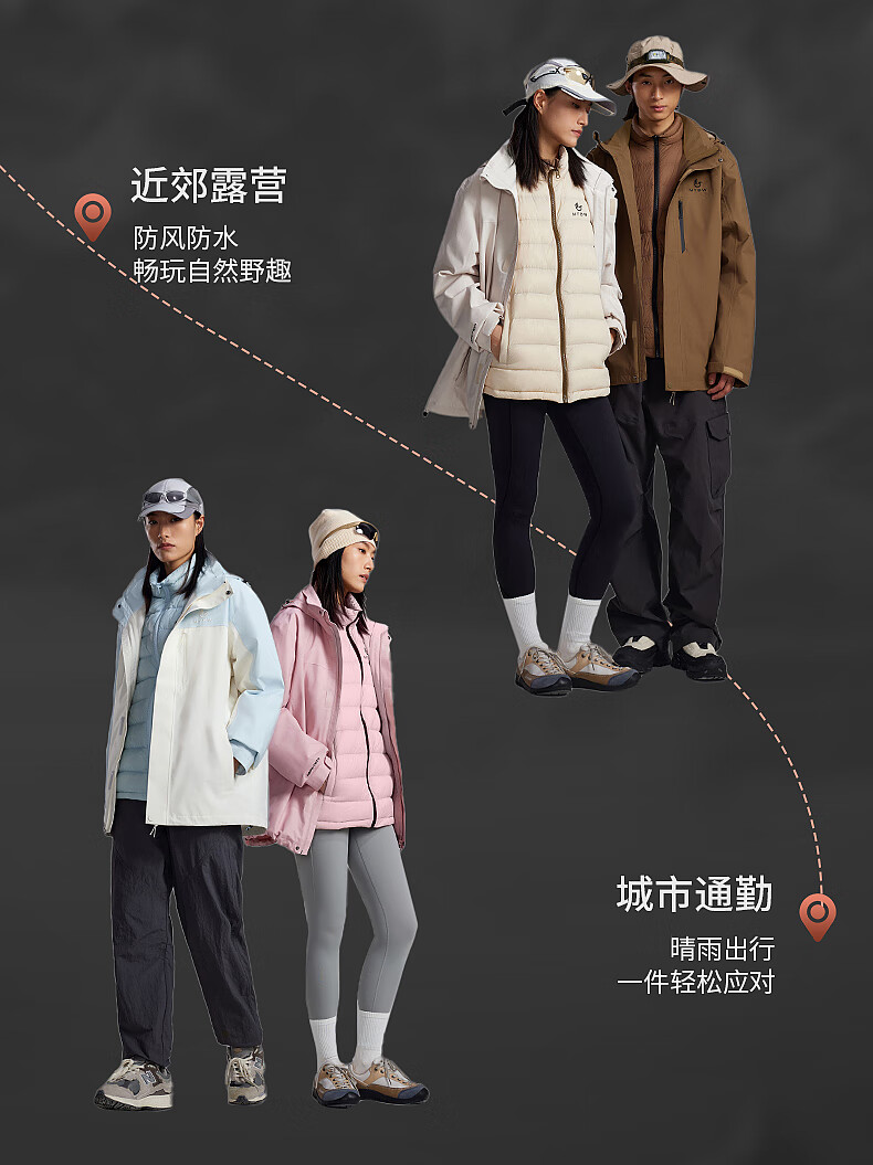 美特斯邦威男女同款三合一冲锋衣冬季新款羽绒内胆防水防风外套 鱼子酱黑 L 175 96A