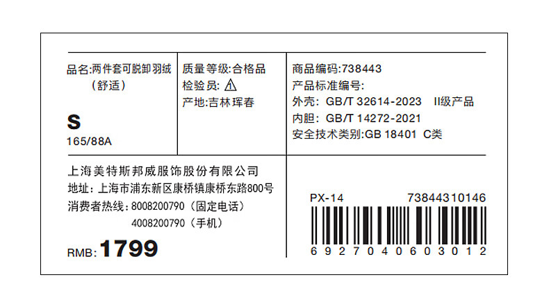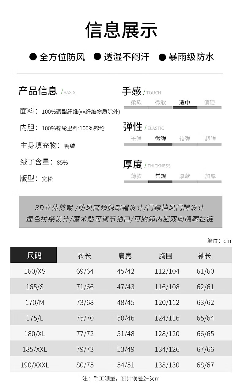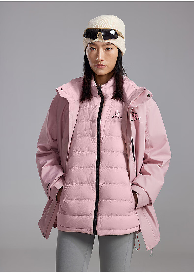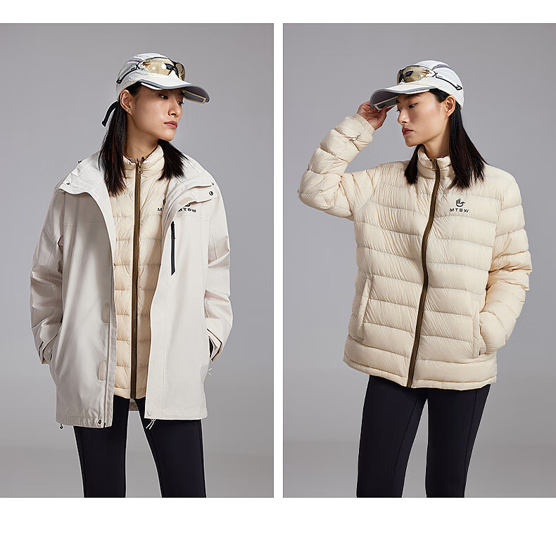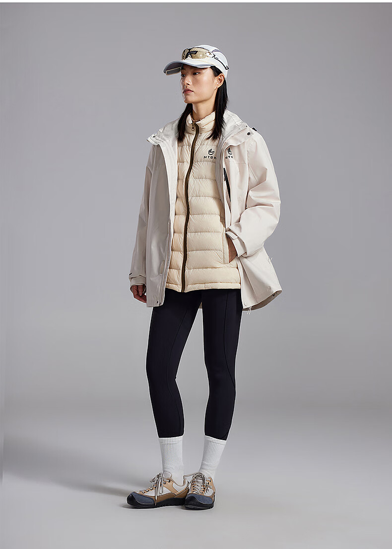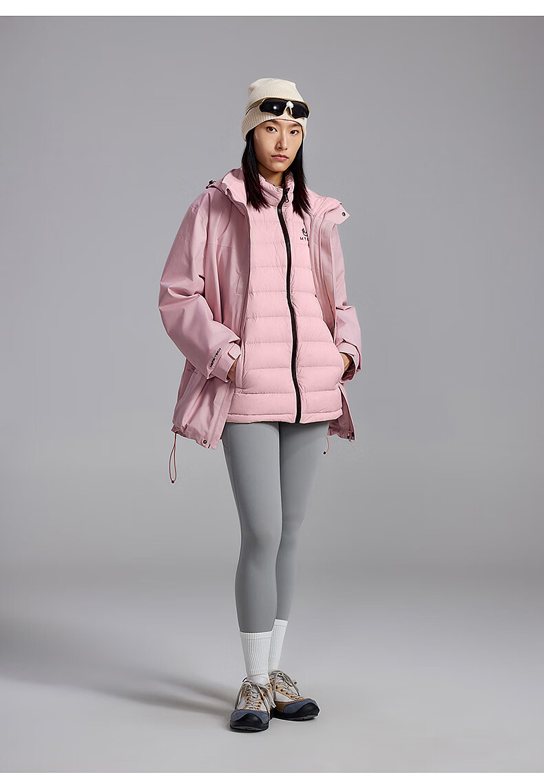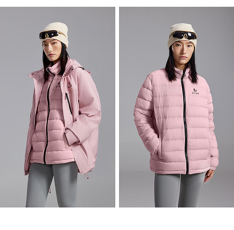 美特斯邦威男女同款三合一冲锋衣冬季新款羽绒内胆防水防风外套 鱼子酱黑 L 175 96A