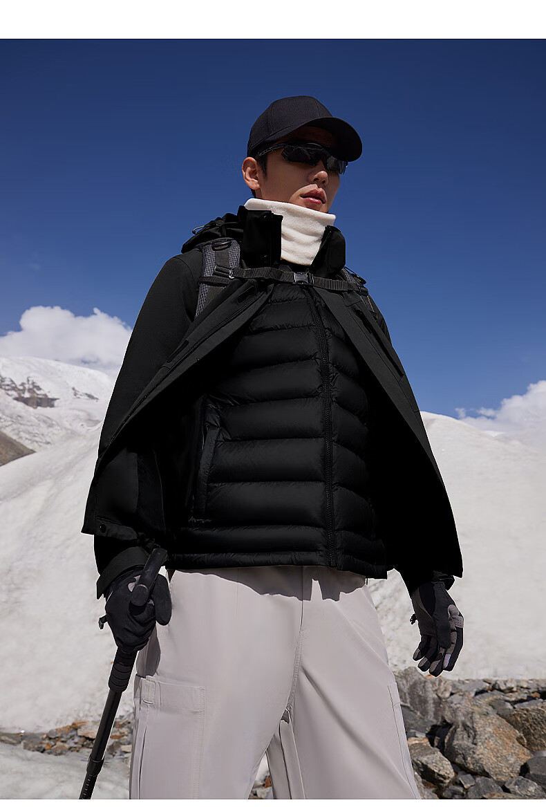 海澜之家(HLA)羽绒服男25新款运动SPORTSDAY抗静电外套男冬季 黑色3C L 175/92A 推荐140-160斤