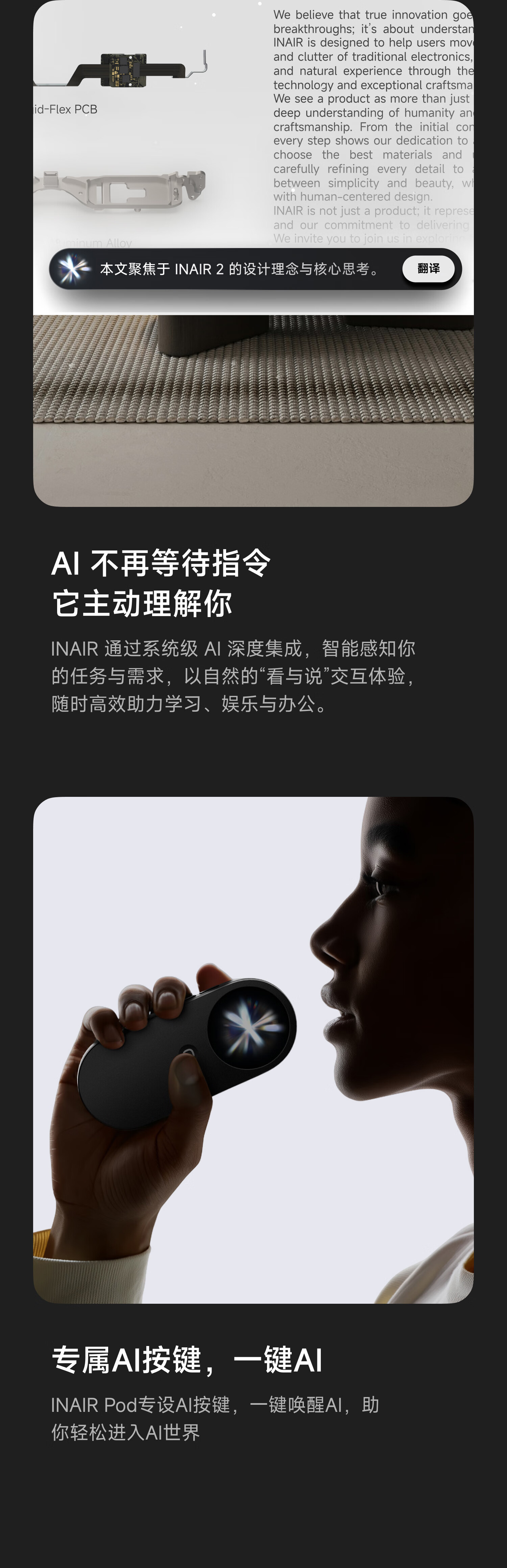 INAIR 空间魔盒 3D投影套装 AI 2D转3D 家庭客厅 3D 观影新入口 [AR眼镜伴侣]单Pod