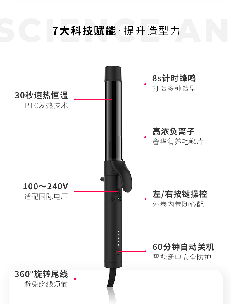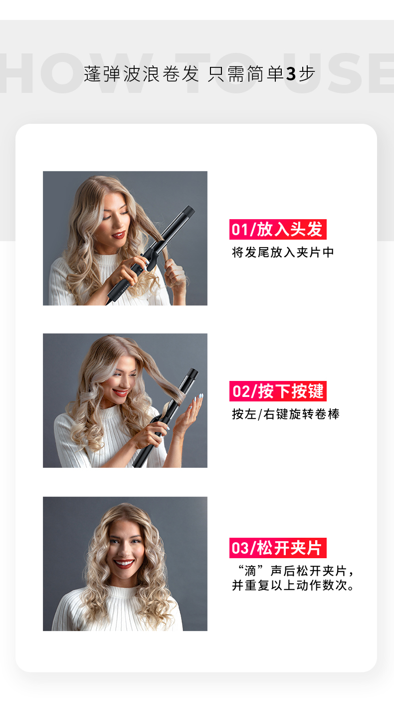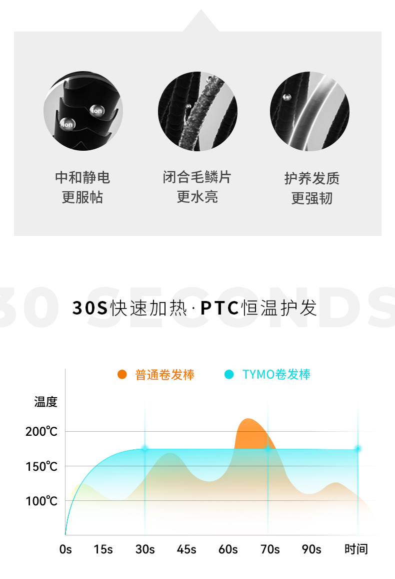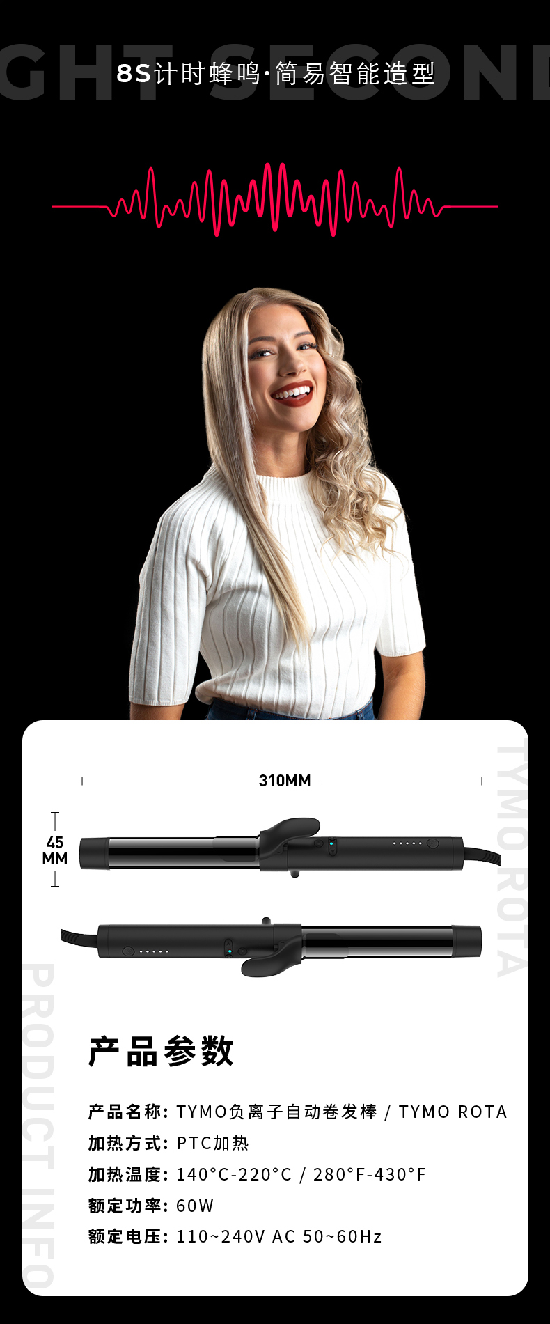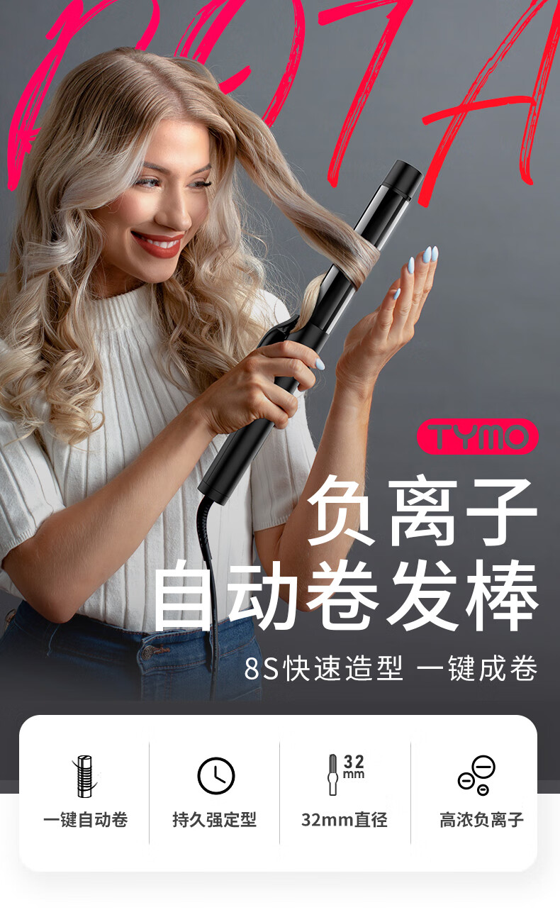 TYMO第3代自动卷发棒负离子护发 居家旅行便携懒人智能防烫大波浪造型 自动卷发棒(黑钛金)