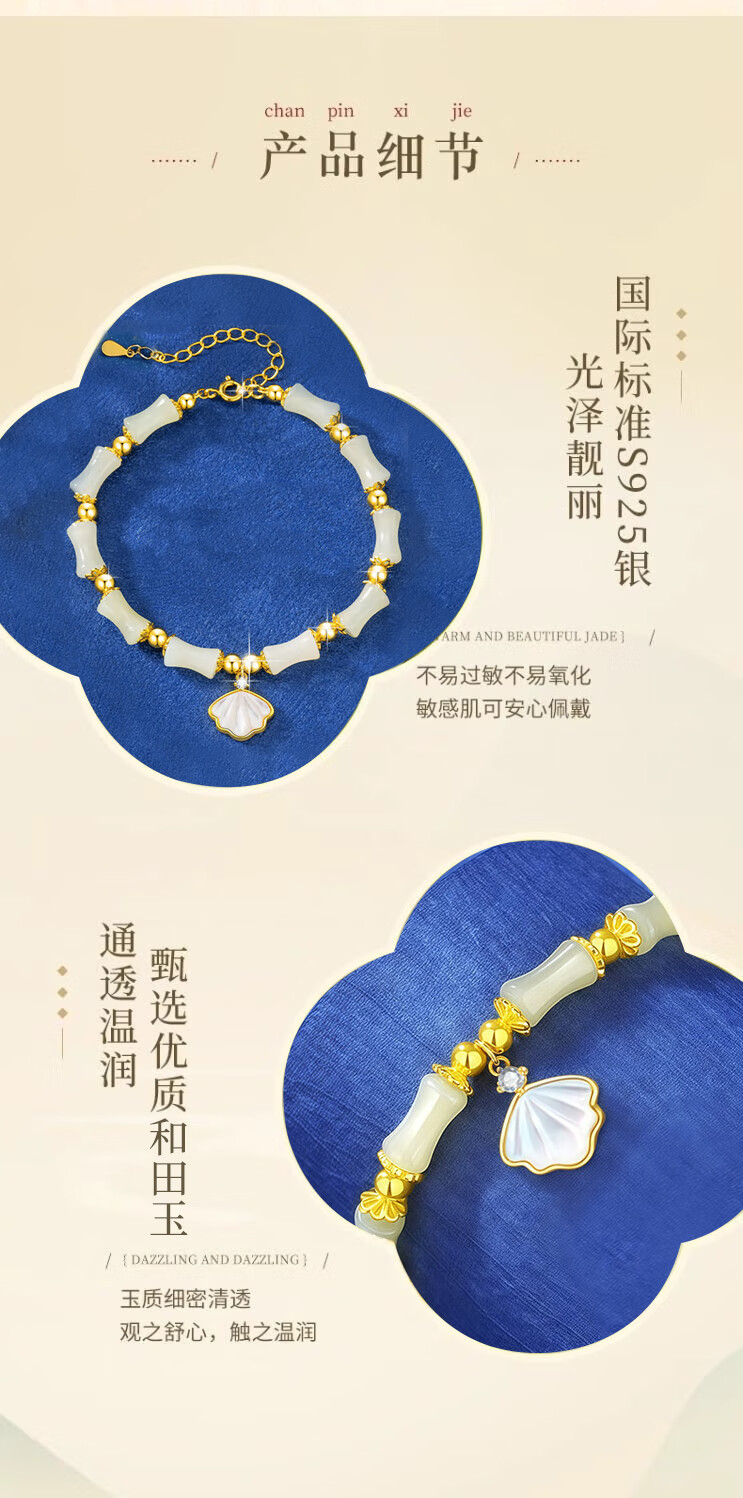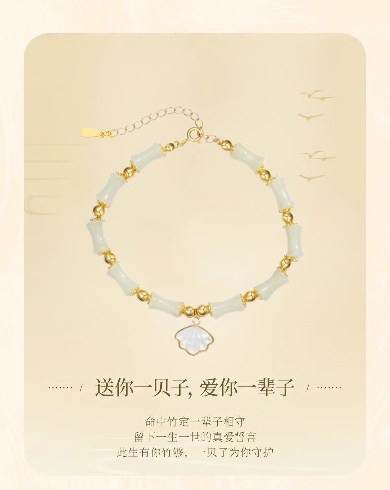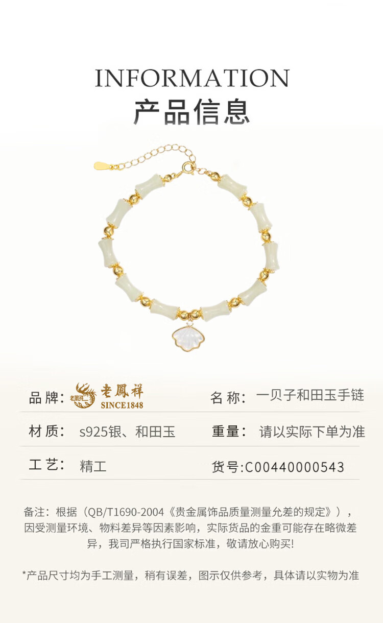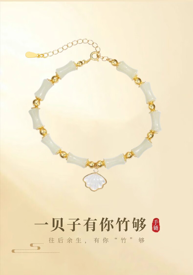 老凤祥轻奢竹节银手链女一贝子和田玉手串珠宝首饰生日礼物送女朋友老婆 今/明日达【和田美玉】竹愿一贝子手链