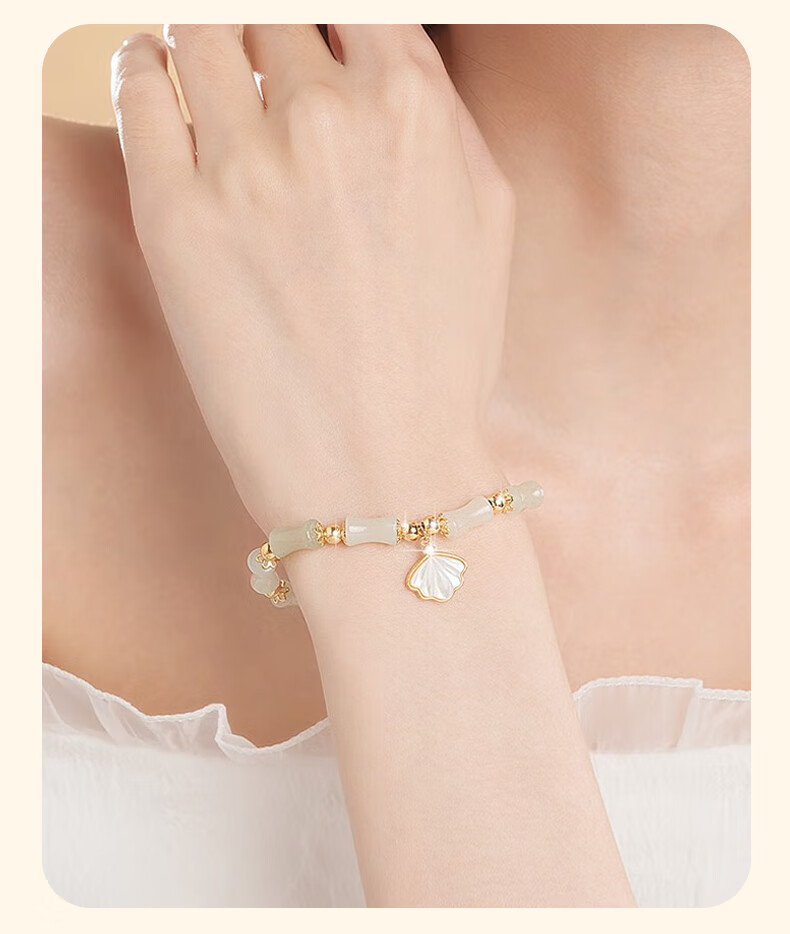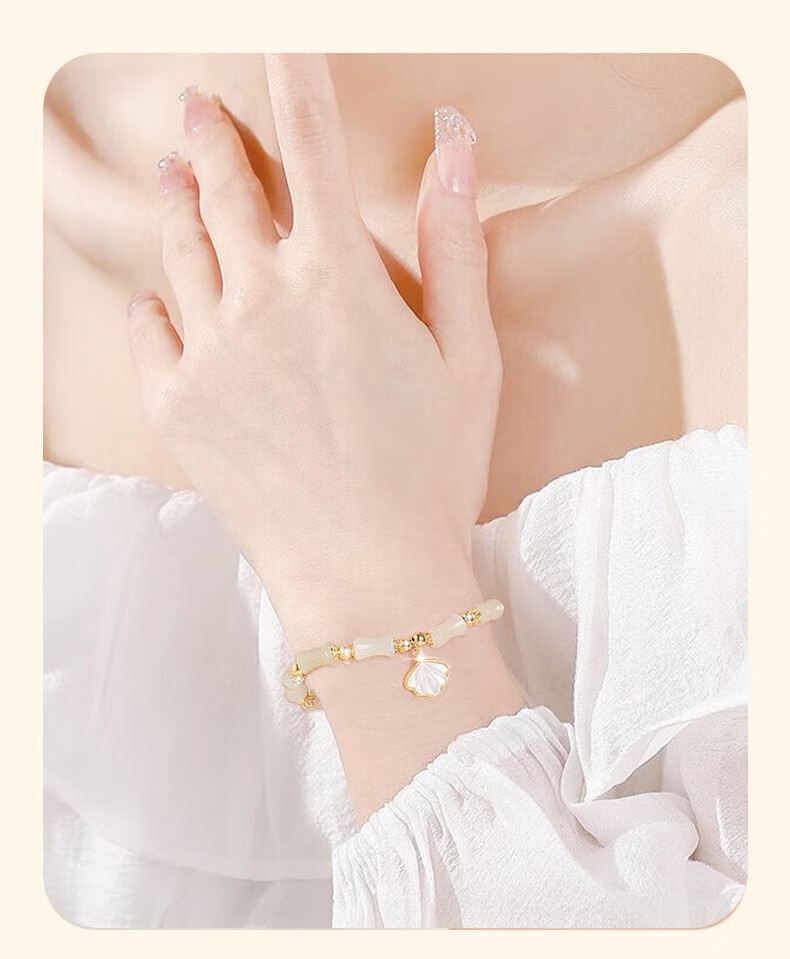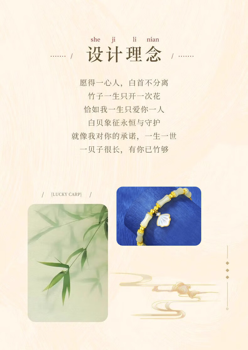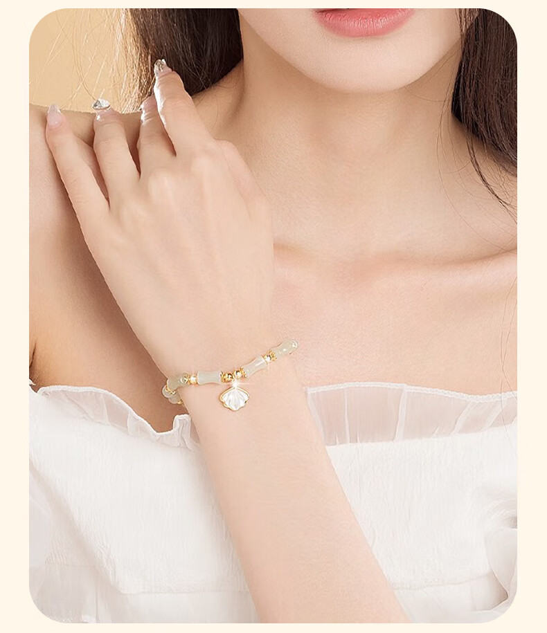 老凤祥轻奢竹节银手链女一贝子和田玉手串珠宝首饰生日礼物送女朋友老婆 今/明日达【和田美玉】竹愿一贝子手链