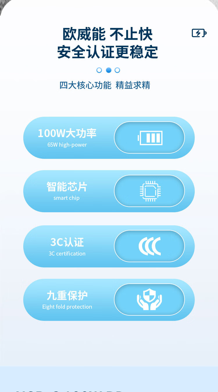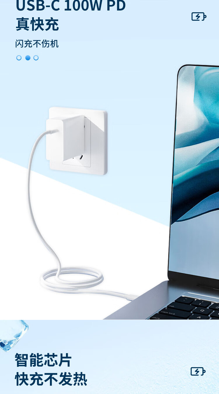 欧威能 适用机械革命Code 01 无界14pro 100W PD Type-C 笔记本充电器 电源适配器线 白色单口(配2米线) 无界15XA,无界15X