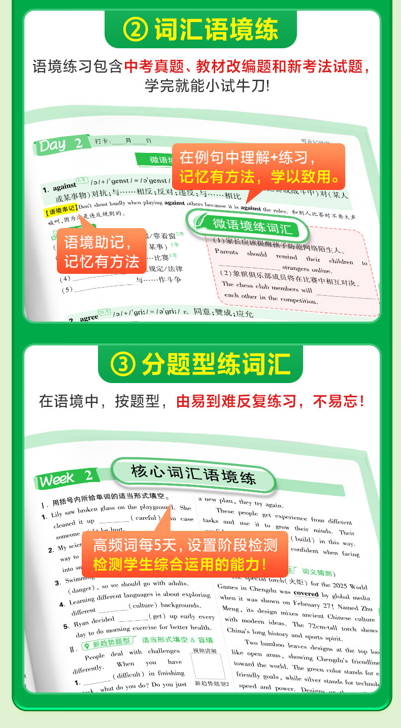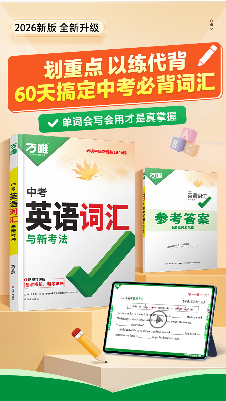 26新版万唯中考英语词汇第7版手册初中英语单词1500词千词百用全国版七八九年级单词书词典复习资料初中 词汇+语法