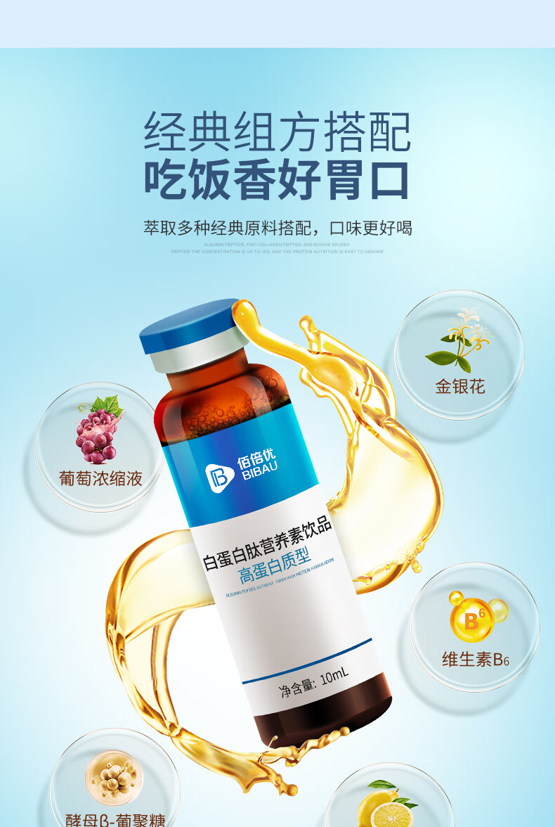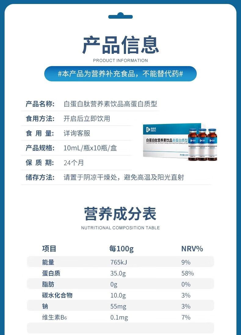 佰倍优白蛋白肽中老年术后放化疗营养品基速得口服液礼品 【35%快速补】 10瓶*5盒