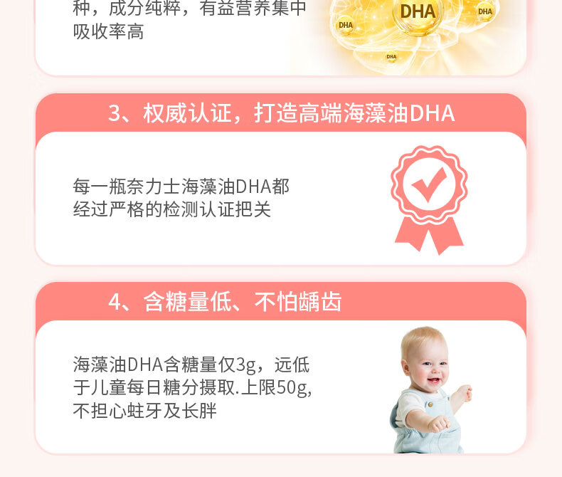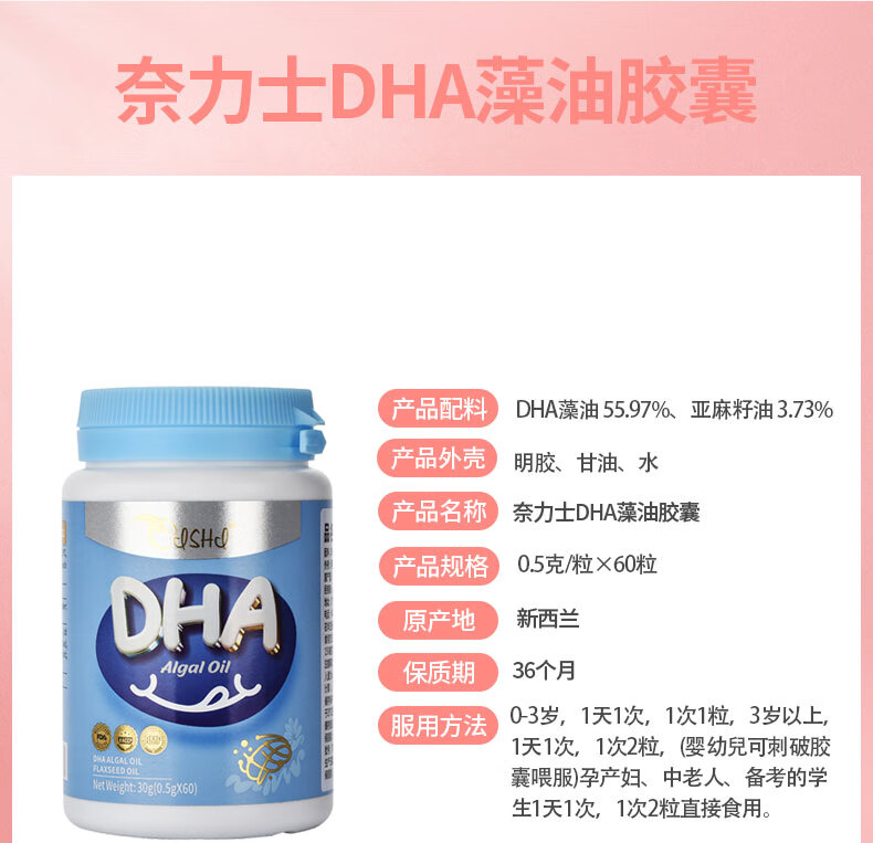 奈力士进口儿童dha青少年6-18岁3-12学生高中生补搭脑增强加记孕妇忆力 【1瓶基础装】儿童婴幼儿dha藻油关爱大脑发育 医院和药店同款新西兰原装进口儿童孕妇婴幼儿都可用