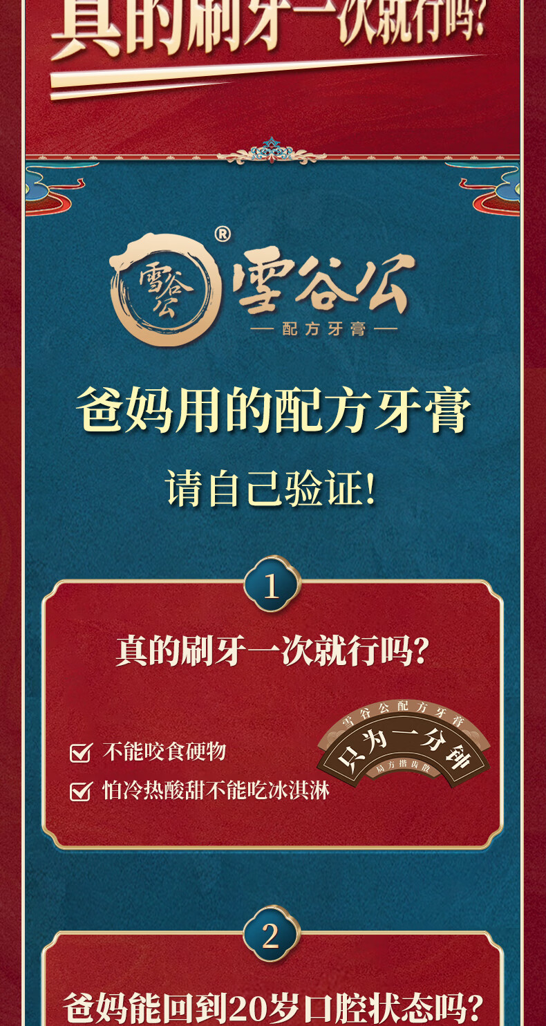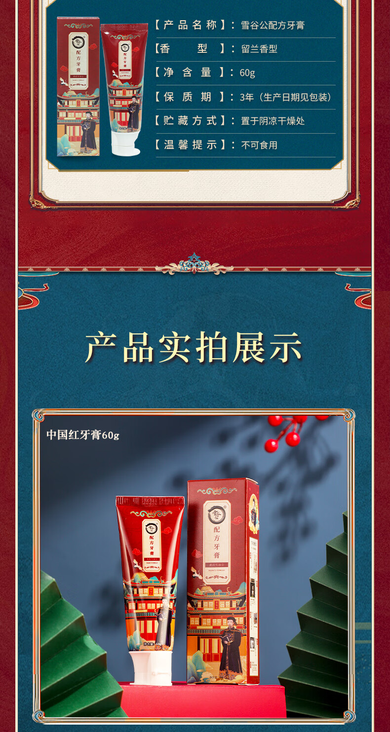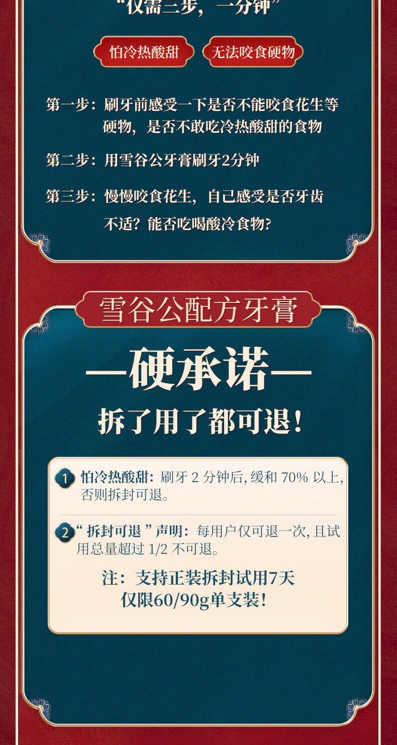 雪谷公配方牙膏清新口气防蛀洁齿减少软垢官方正品60g 中国红150g单支正装 不支持试用