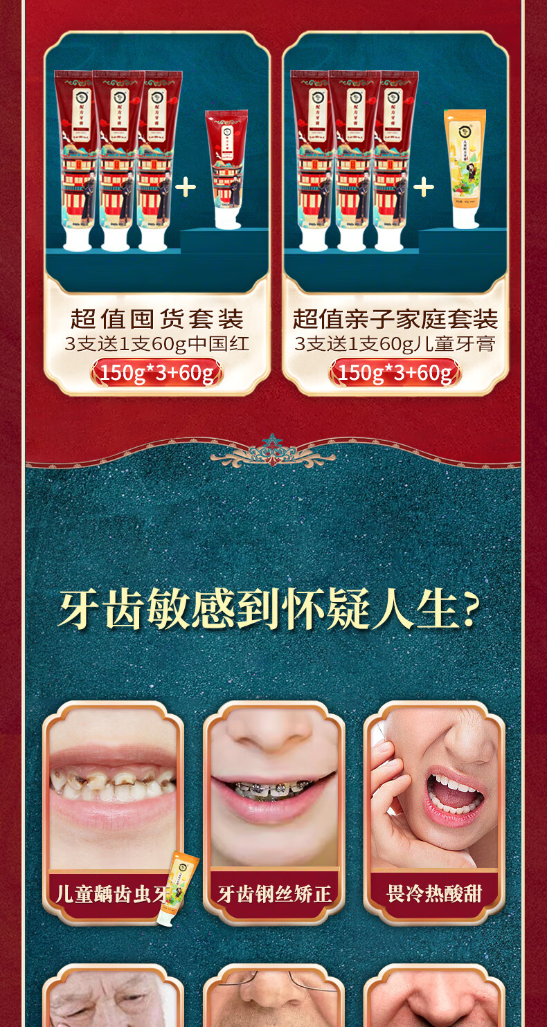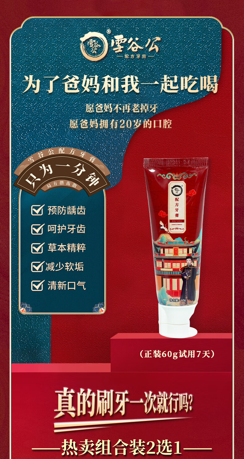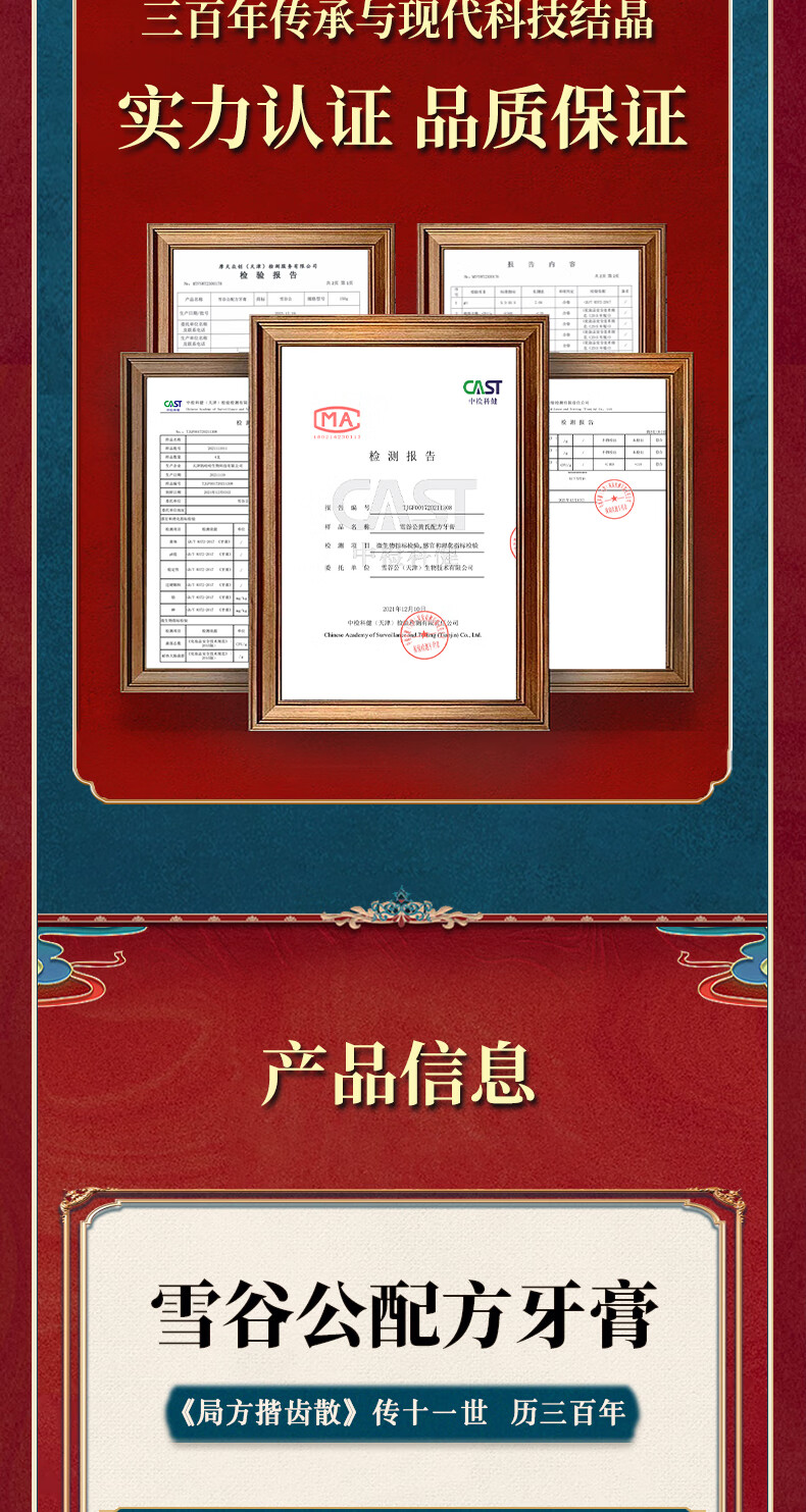 雪谷公配方牙膏清新口气防蛀洁齿减少软垢官方正品60g 中国红150g单支正装 不支持试用