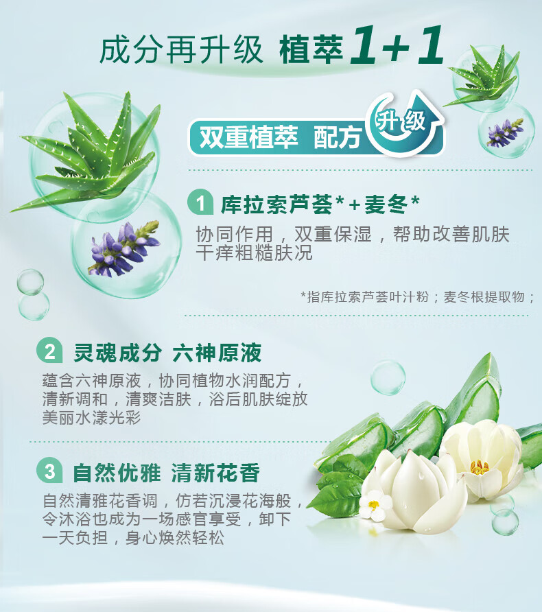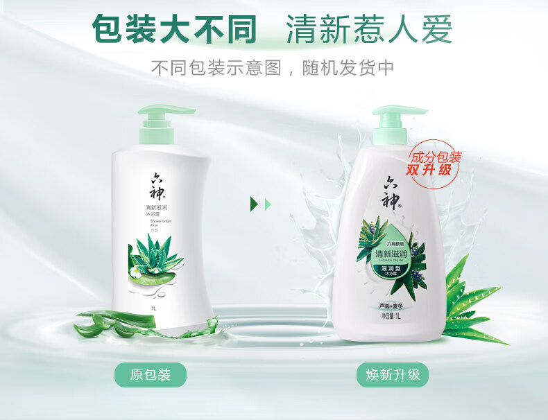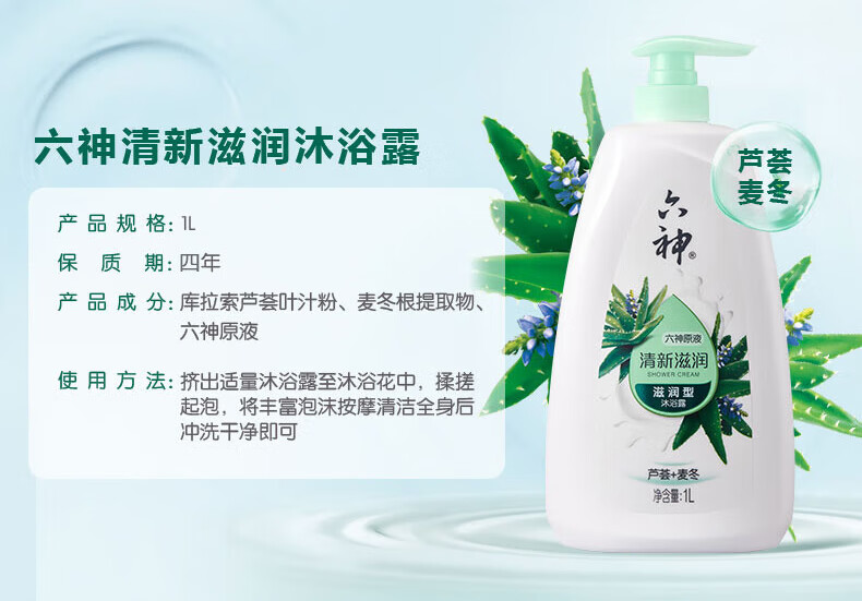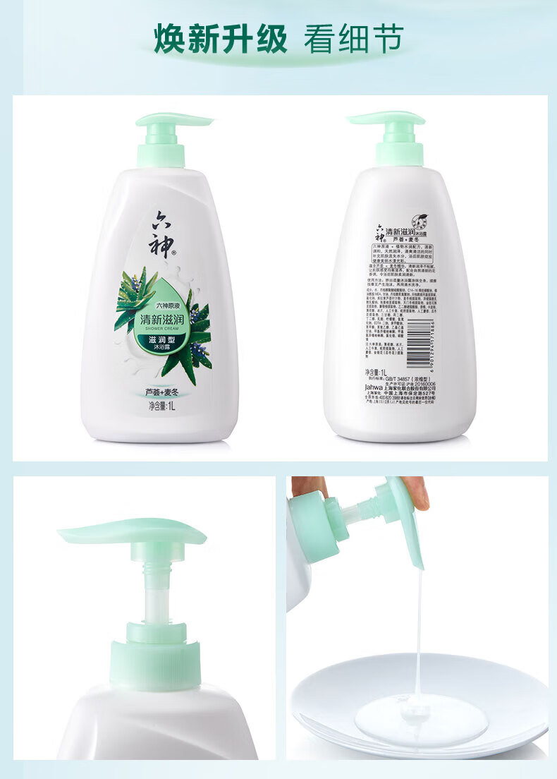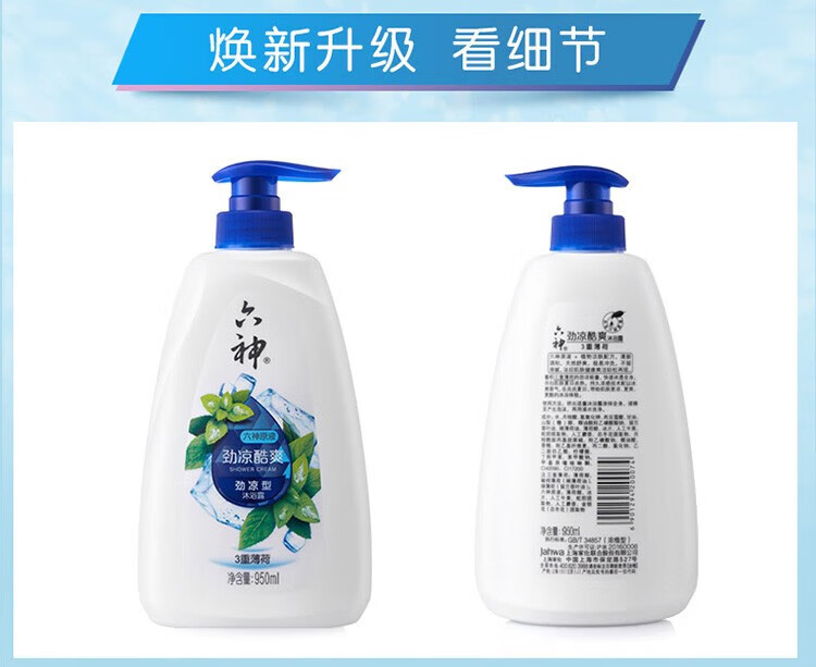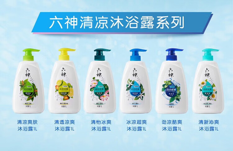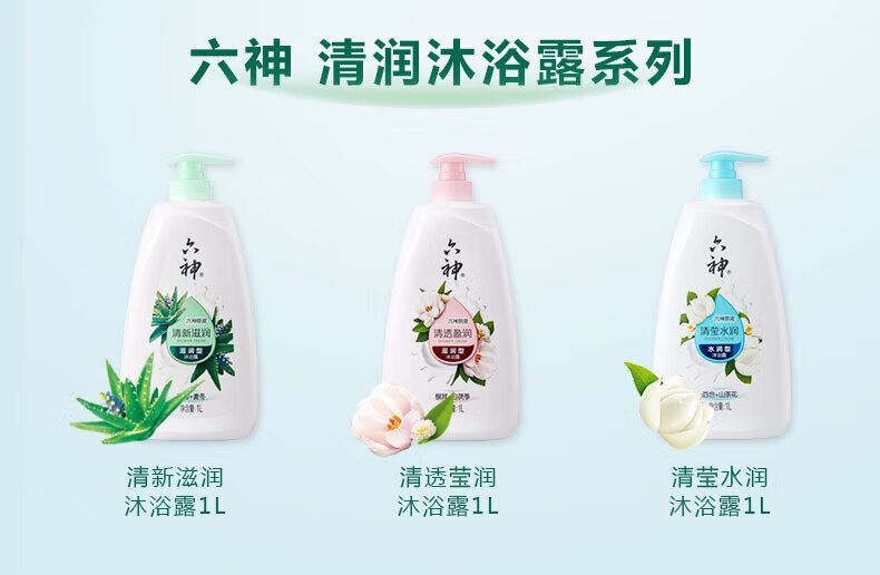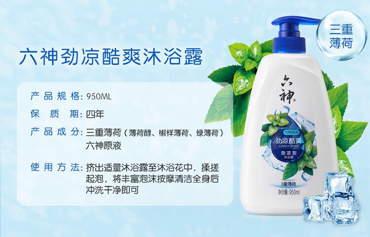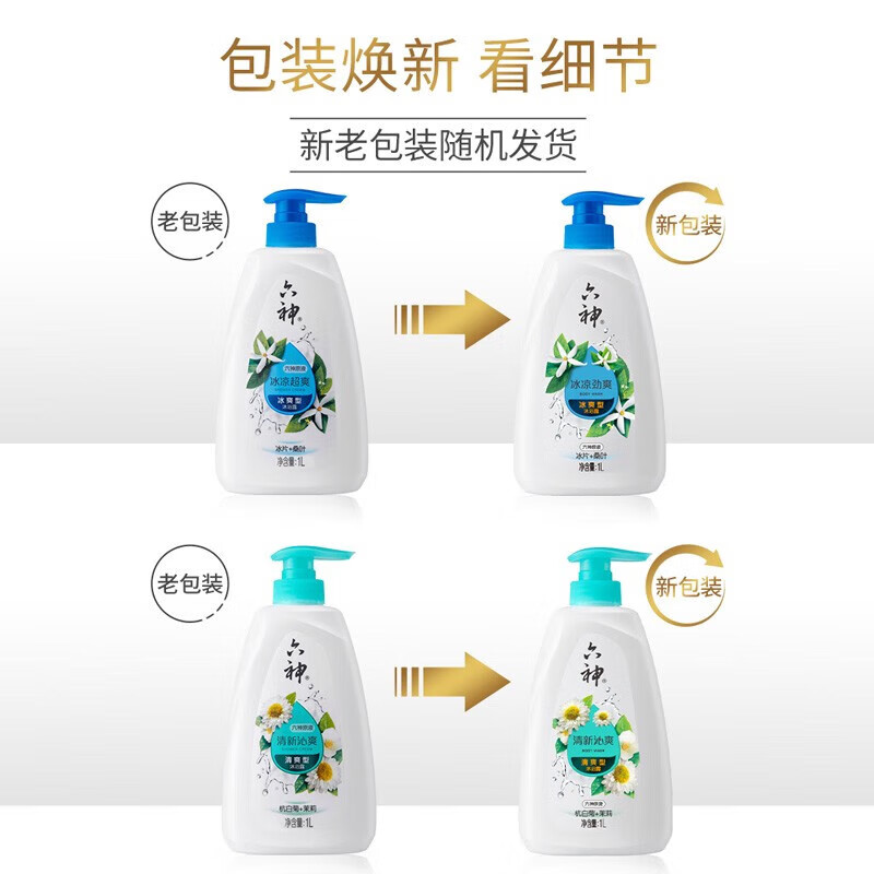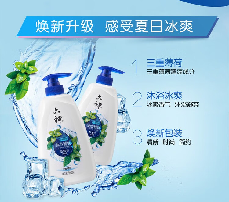 六神沐浴露组合装三重薄荷劲凉酷爽清新滋润浴后留香沐浴液家庭套装 清香爽肤750g+180g+浴球