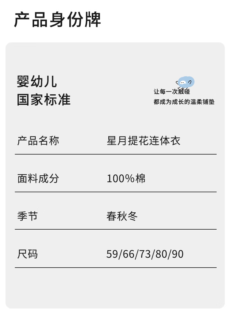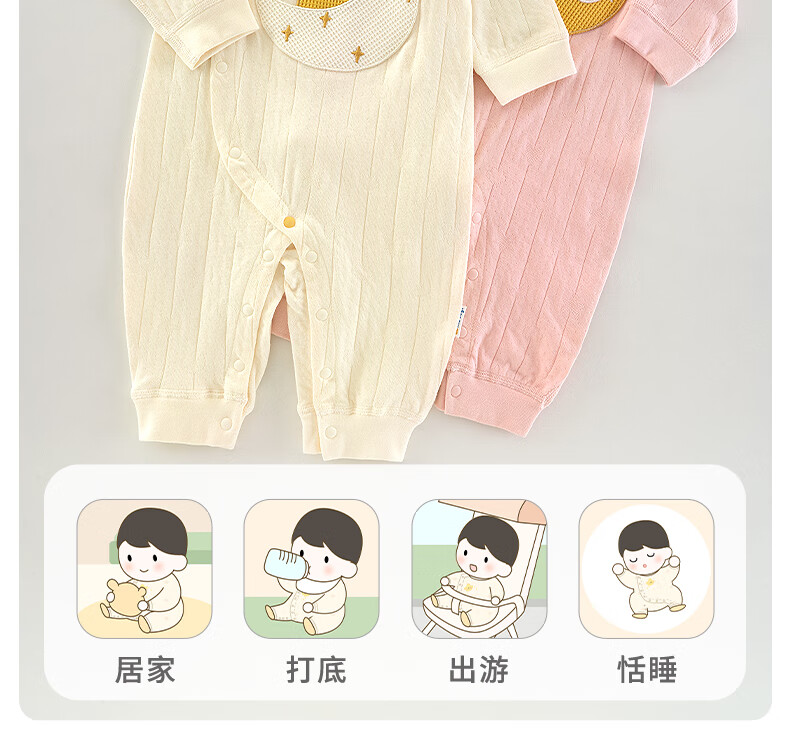 婴蓓依新生婴儿连体衣春秋冬款满月婴儿长袖纯棉哈衣爬爬服家居服睡衣 星星月亮 80cm