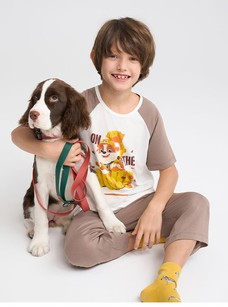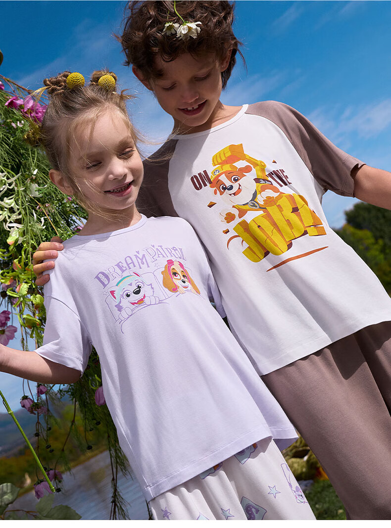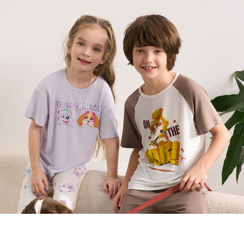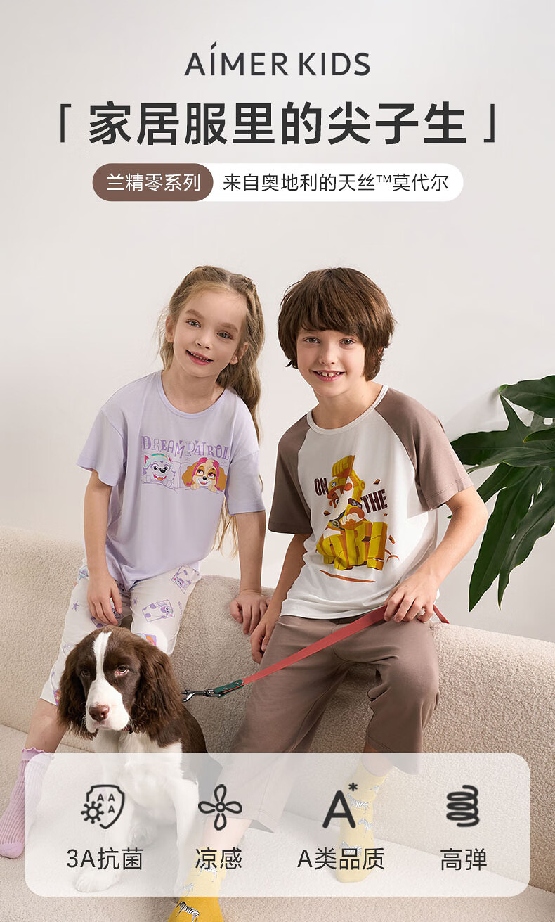 爱慕儿童莫代尔家居服套装男女童短袖上衣睡裤套装3A抗菌轻薄A类 女-美味甜甜圈 160 (85-100斤)