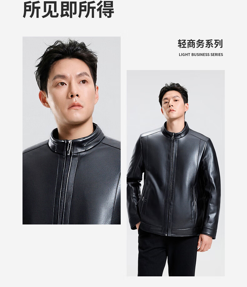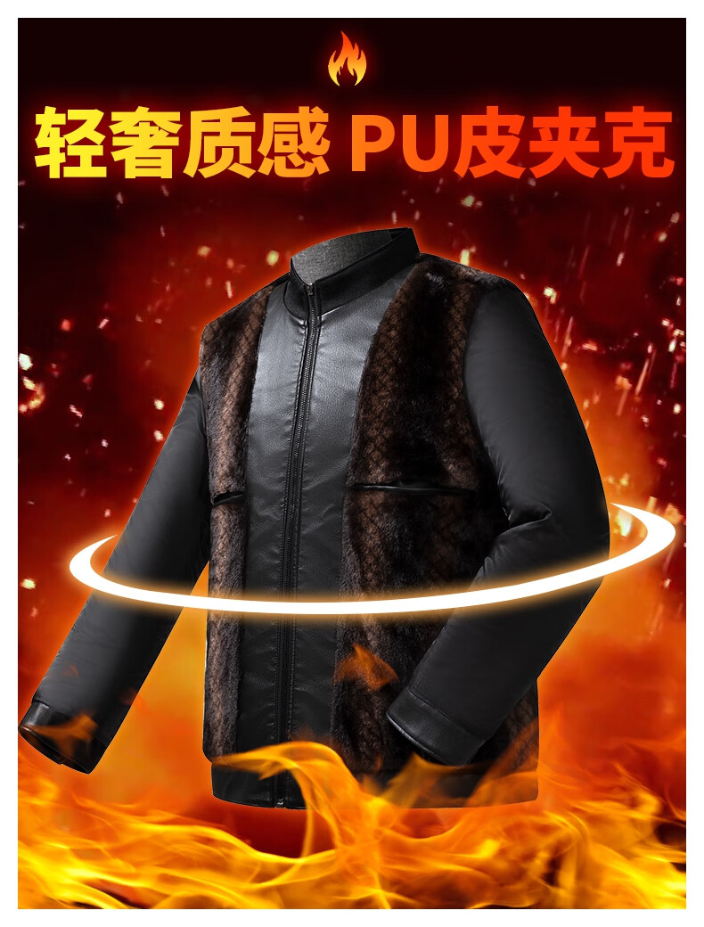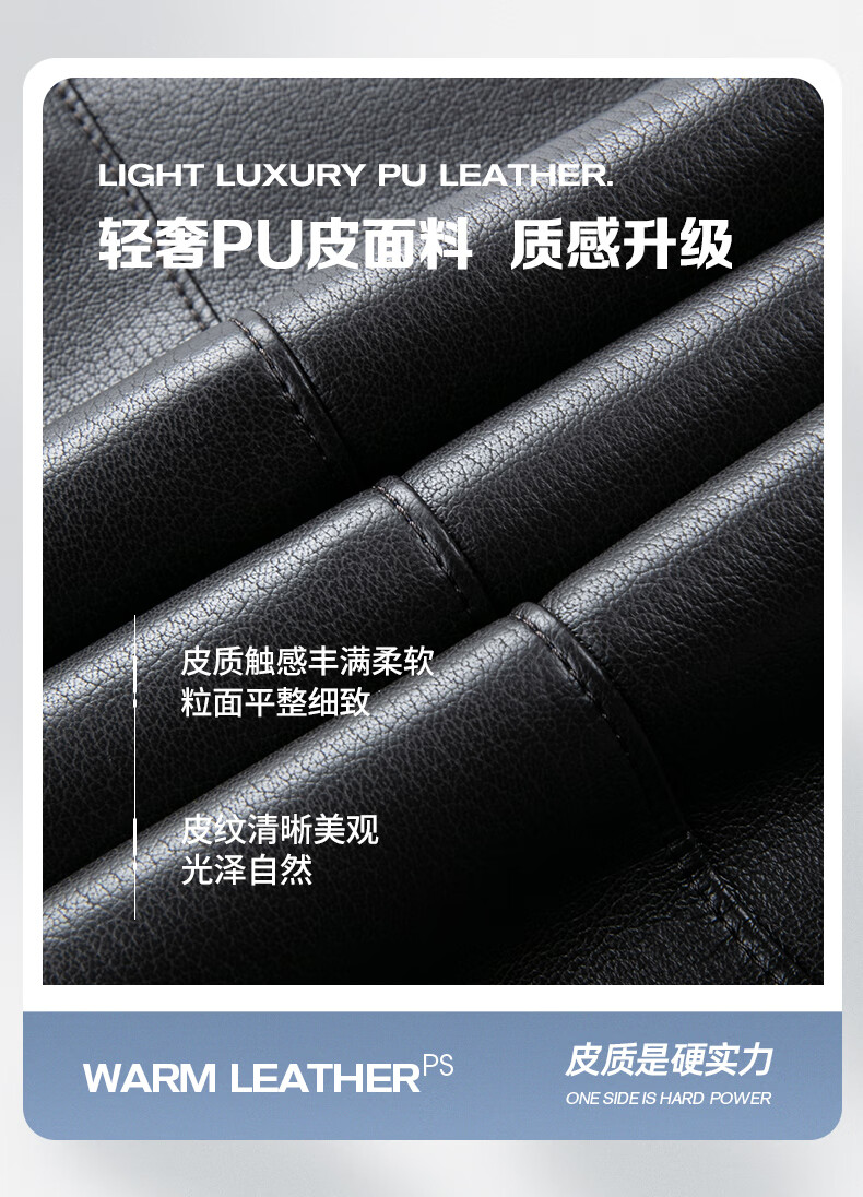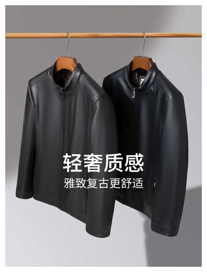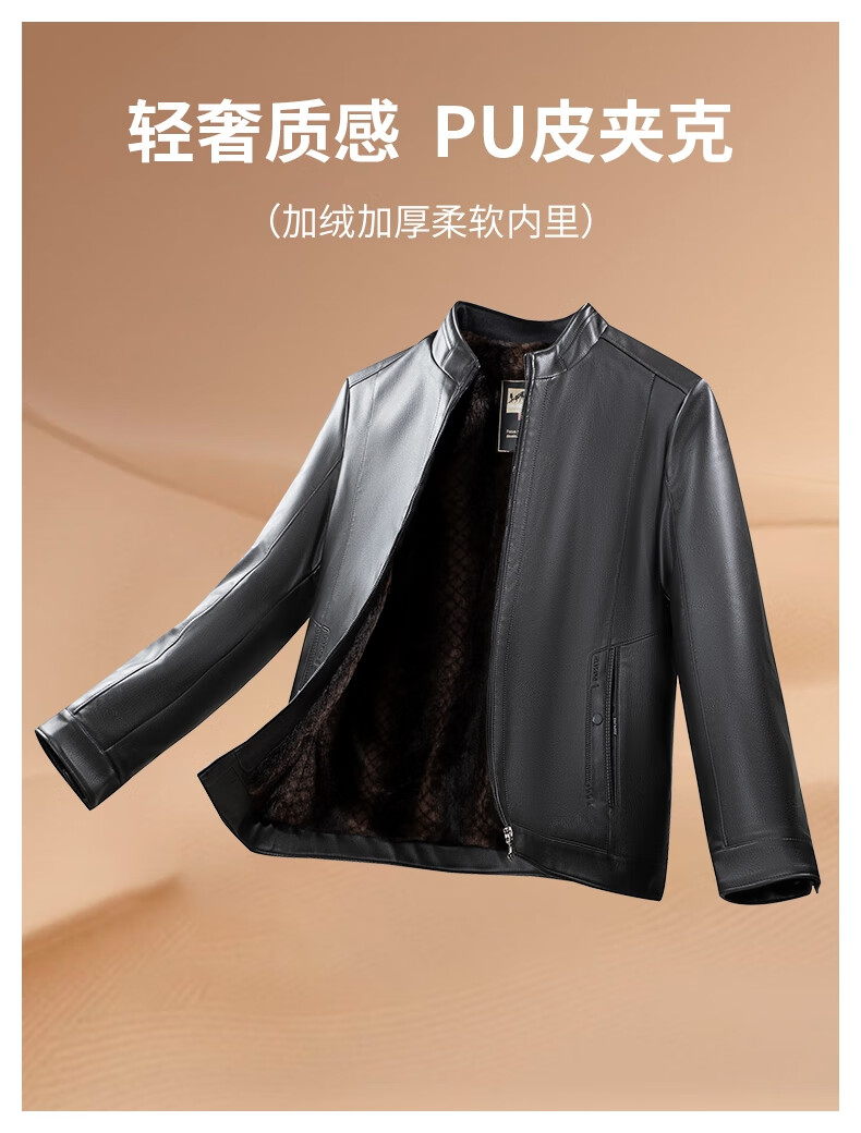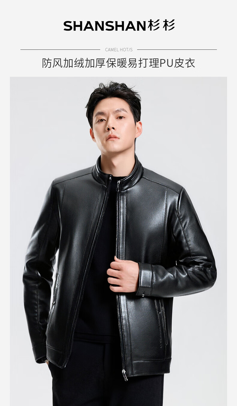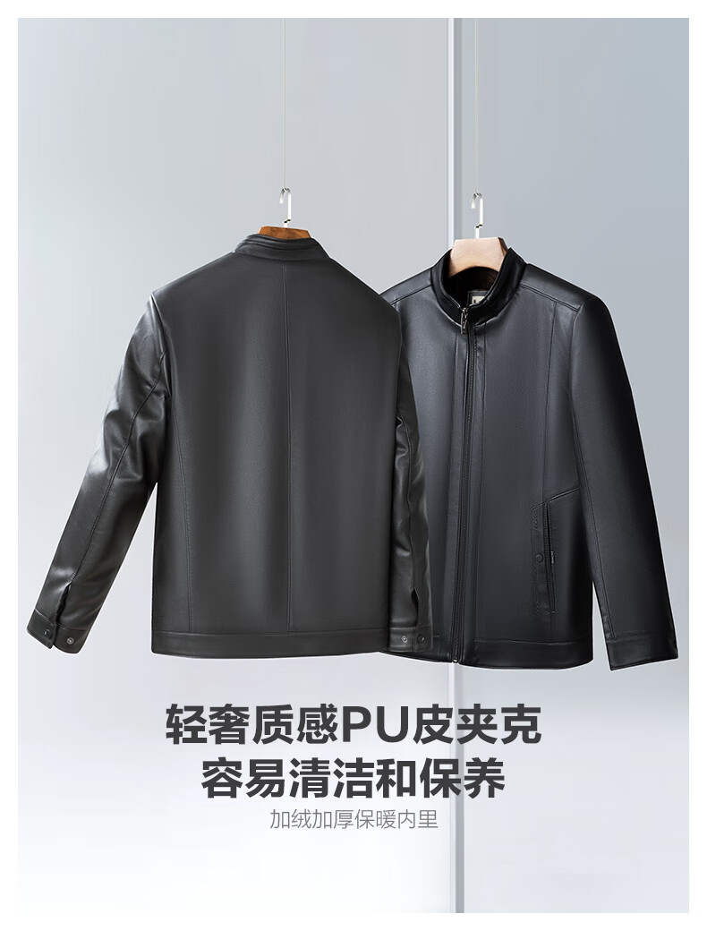 SHANSHAN杉杉PU皮衣男2025冬季保暖休闲内里加绒男士易打理耐磨长袖外套 黑色 XL /180