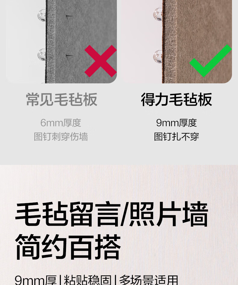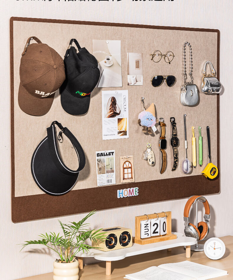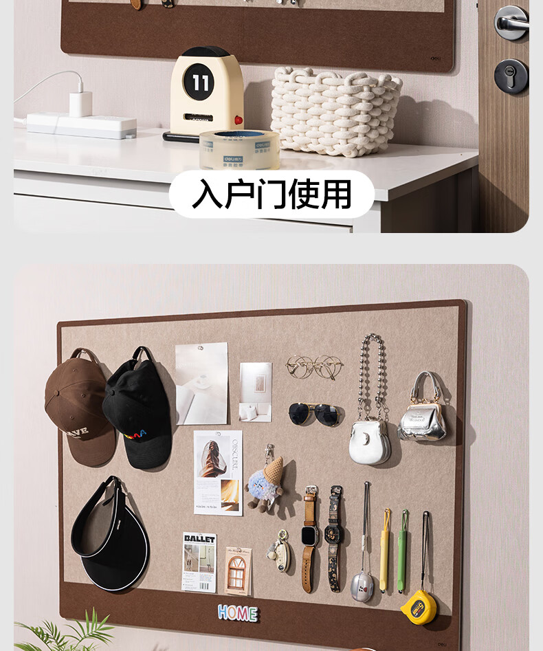 得力毛毡板墙贴免打孔照片墙背景板高级感客厅拍立得照片墙diy装饰家庭照片展示墙毛毡版背景墙 相月棕 80*180CM【免打孔+无异味+可移除】