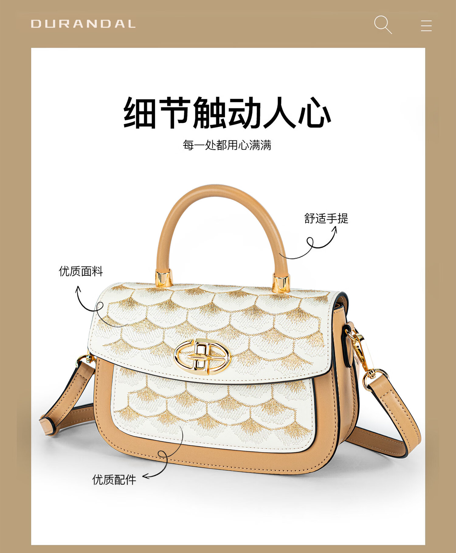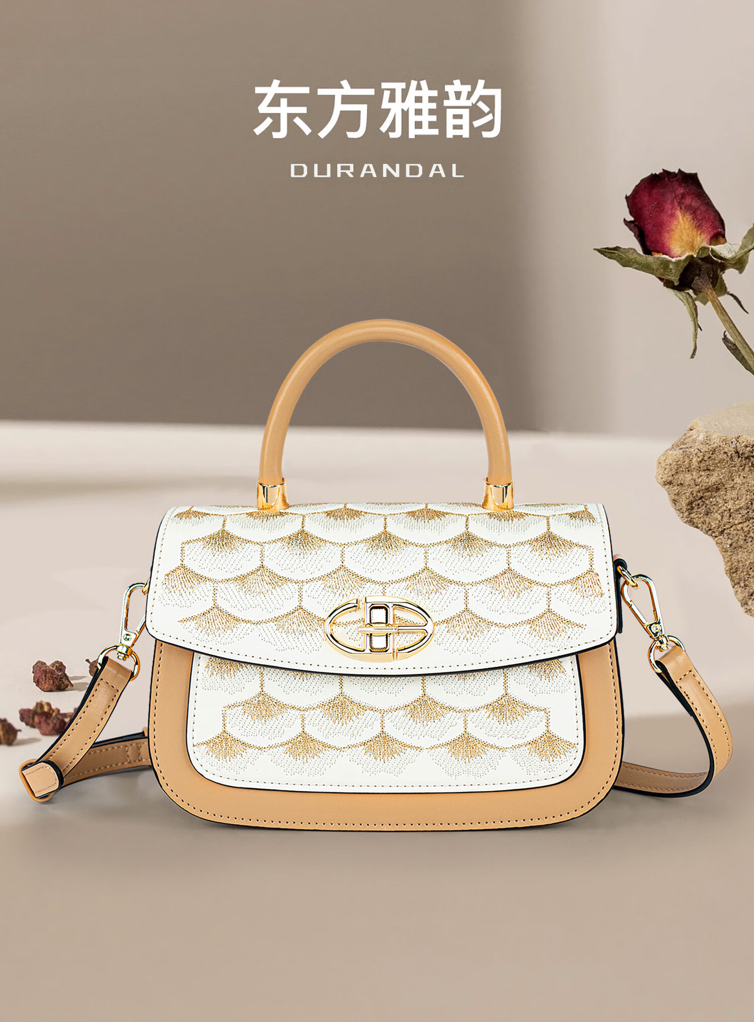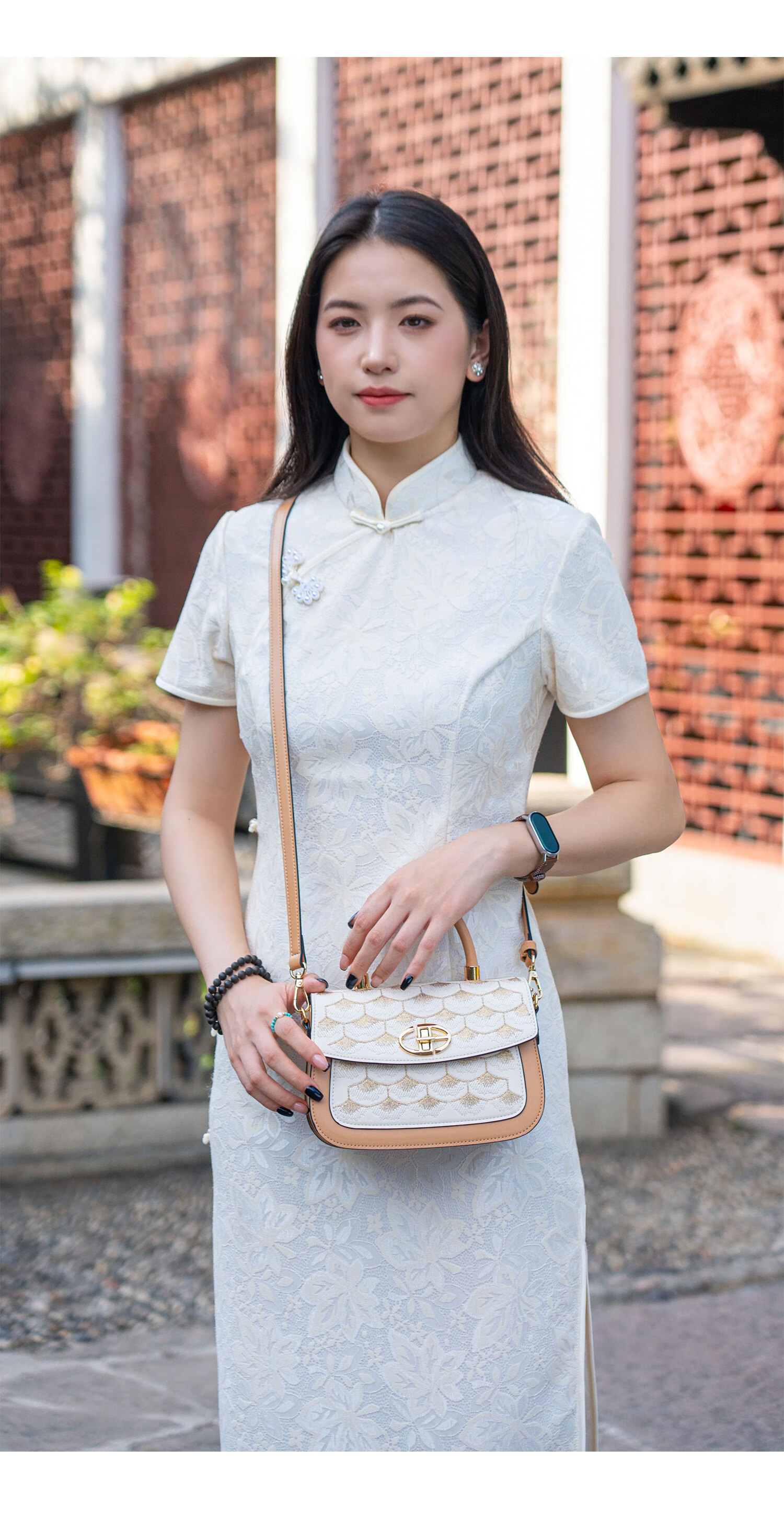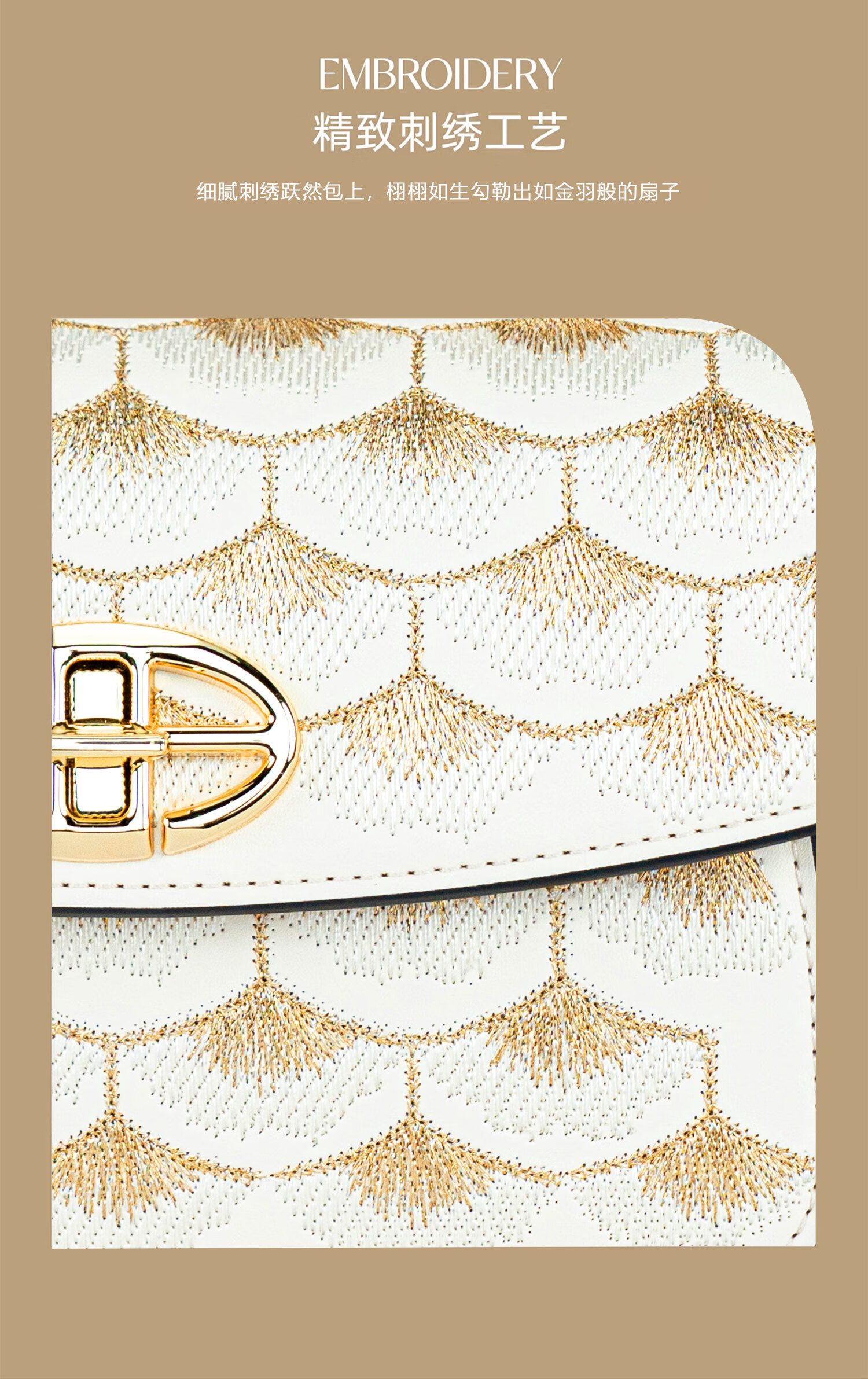 迪兰达尔【元旦好礼】轻奢中式龙鳞纹刺绣女包,原创单肩斜挎包 白色